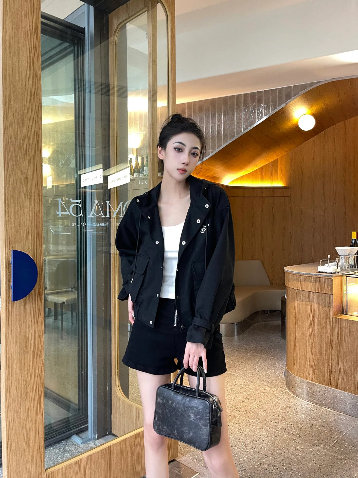 Основной особенностью изделия является застежка button-up, которая не только добавляет жакету стильный акцент, но и позволяет регулировать его посадку. Два больших кармана на груди предоставляют возможность хранить необходимые мелочи, сохраняя при этом изысканный внешний вид.