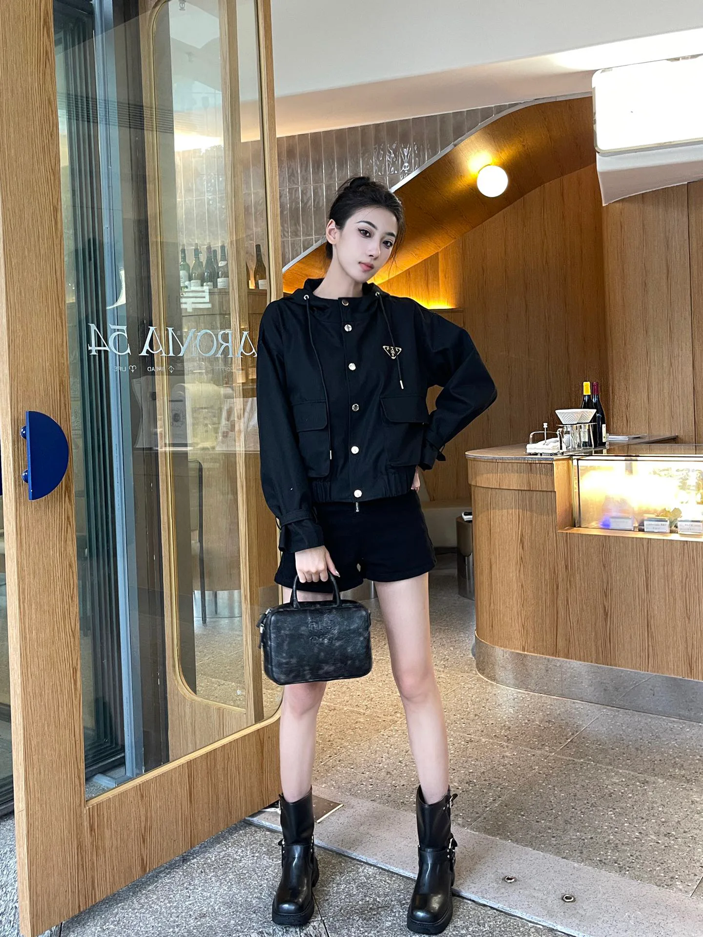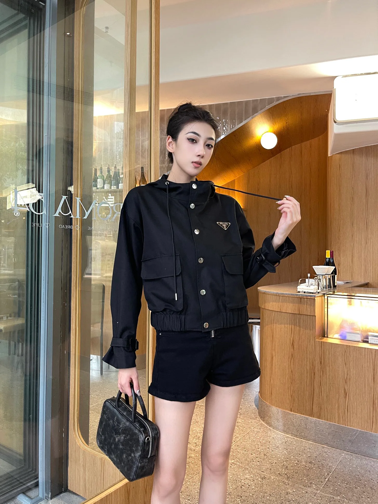 Эластичная резинка в области талии помогает создать идеальную посадку на фигуре, подчеркивая женственные линии и обеспечивая удобство в носке. Логотип известного бренда PRADA на груди служит дополнительным акцентом, подчеркивая статус и высокое качество данного изделия.