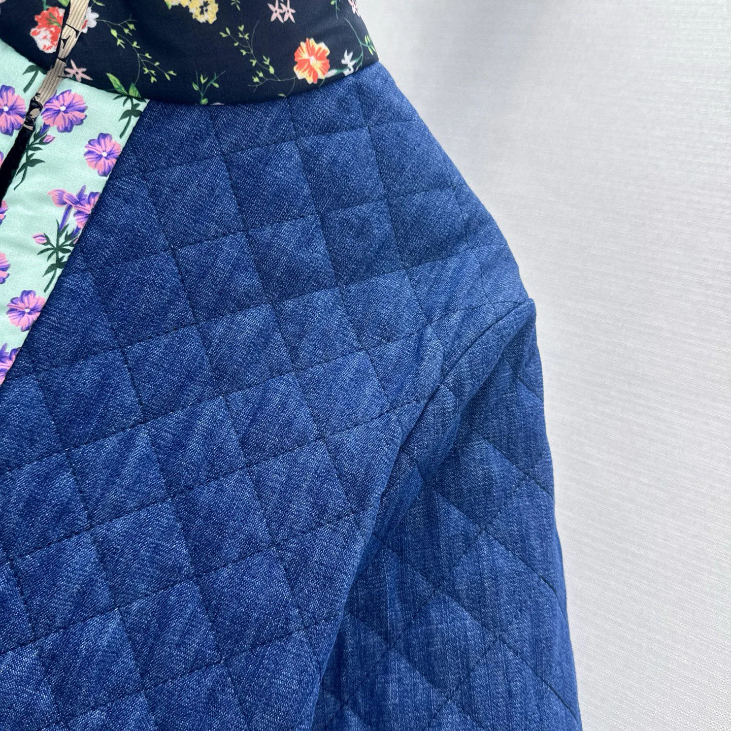 Куртка доступна в размерах S, M, L, а параметры для размера S: обхват груди около 94 см, общая длина около 50 см. Она рассчитана на стандартную посадку и хорошо сочетается с топами и брюками. Уход за изделием включает следование инструкциям на ярлыке для сохранения цветовой насыщенности и формы.