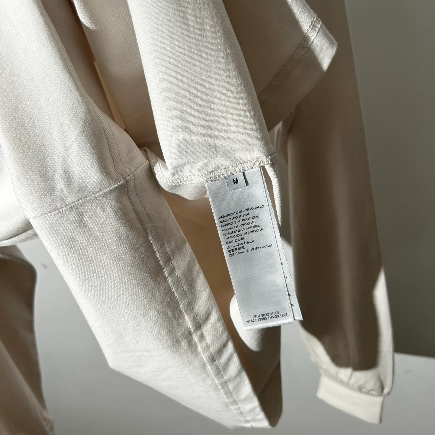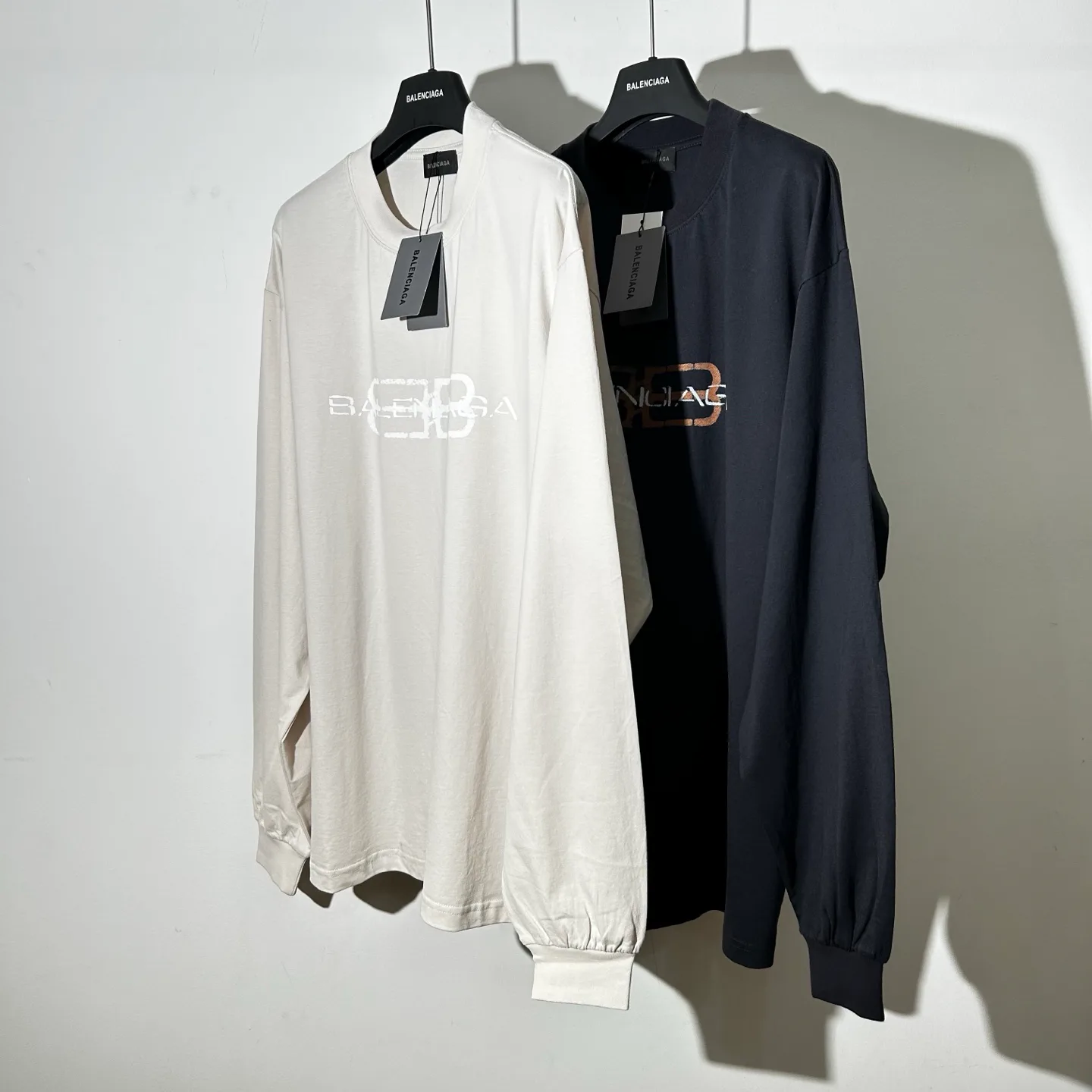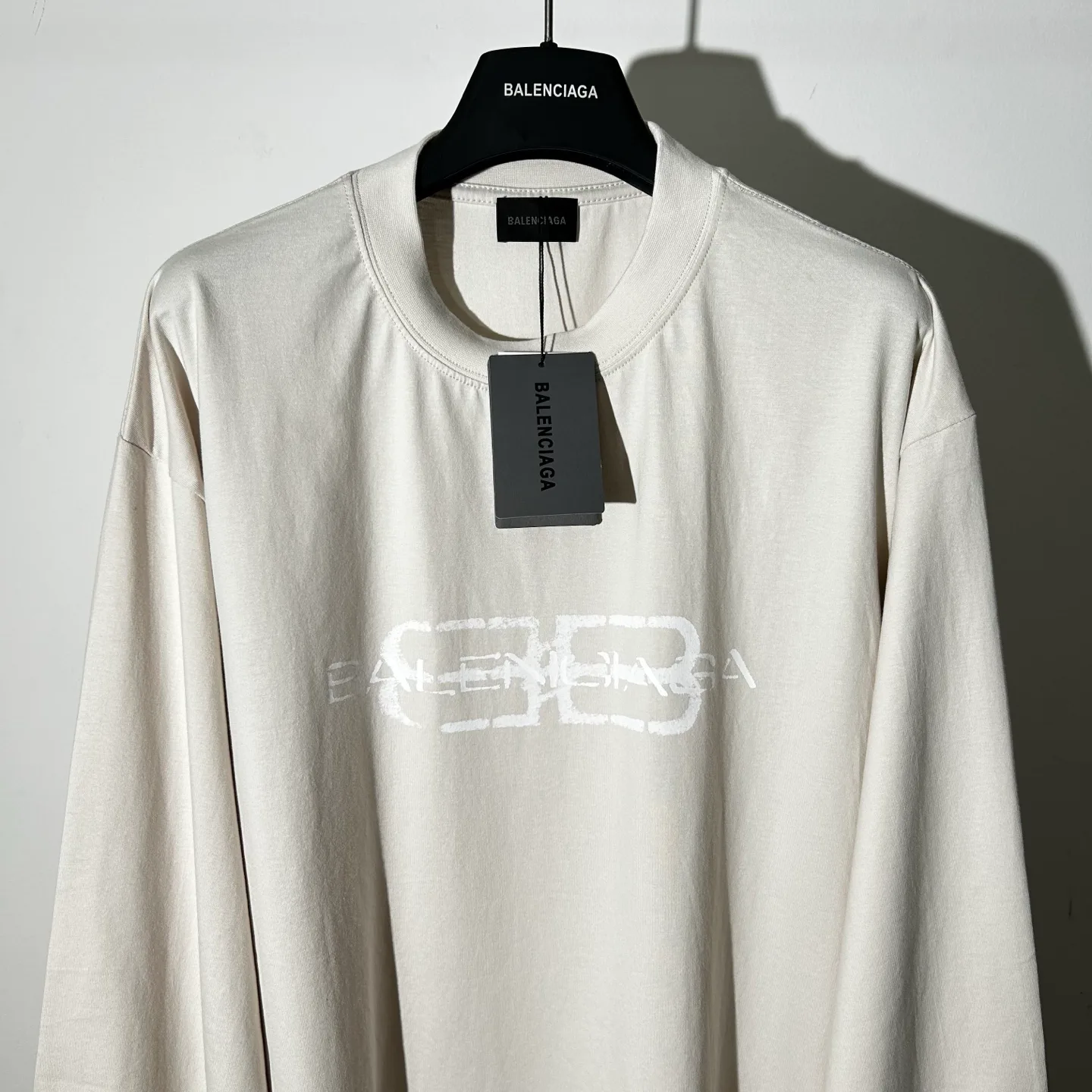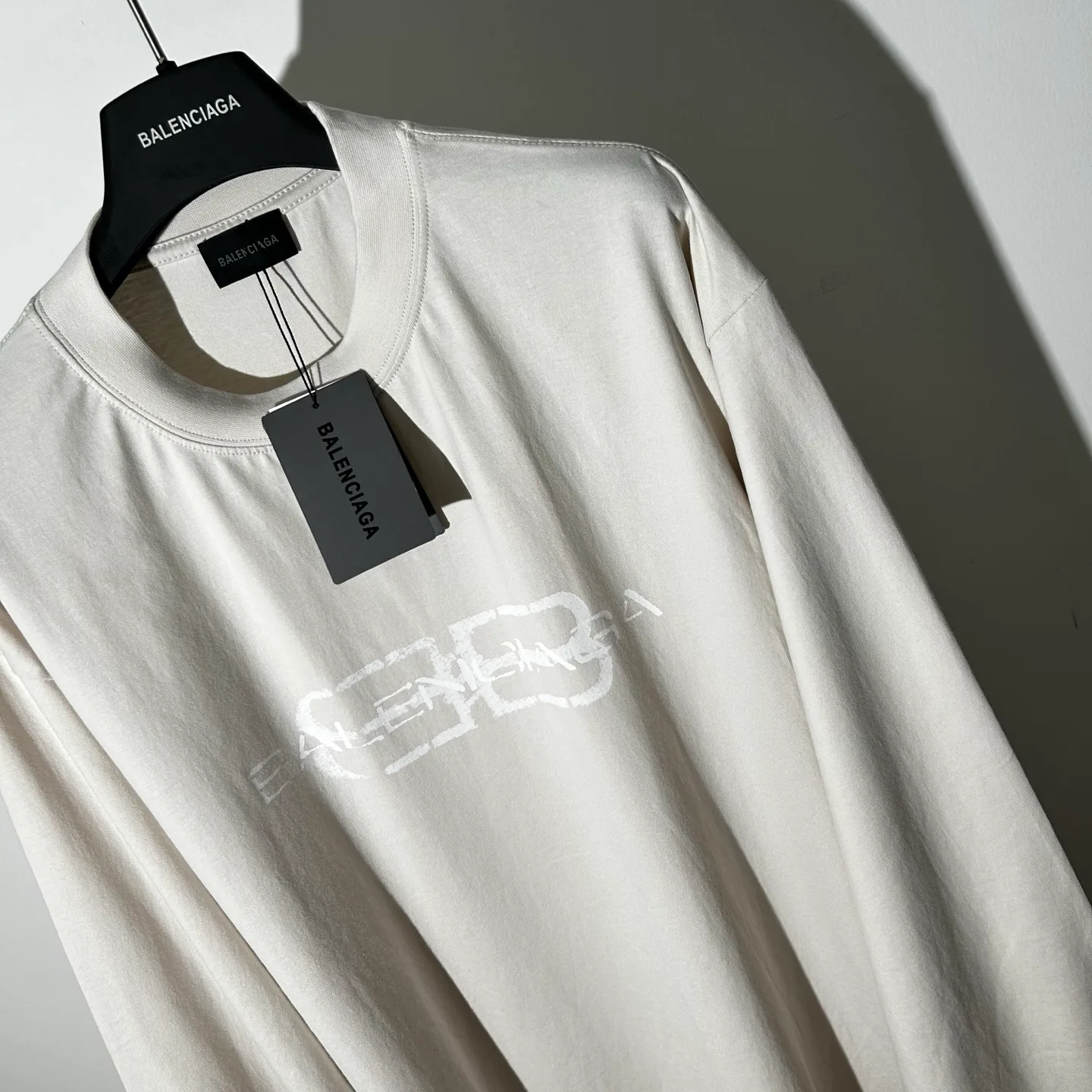 Цветовая гамма включает черный фон с ржавыми буквами, создающими контраст, а также светло-абрикосовый вариант, в котором белые пряжки выделяются на темном фоне. Доступны размеры S, M, L, XL. Лонгслив акцентирует внимание на детали, которые подрывают идеалы и чистоту линий.