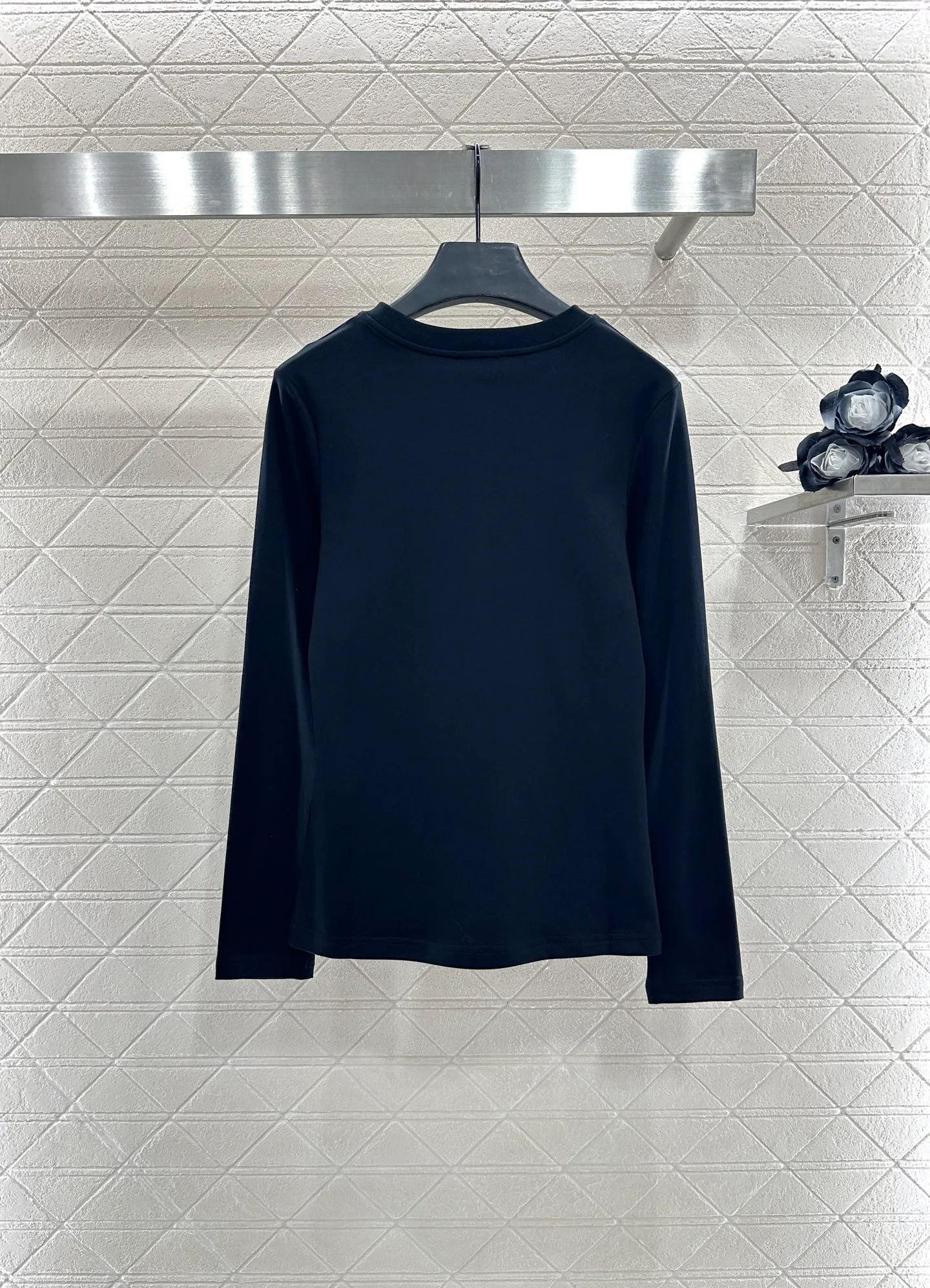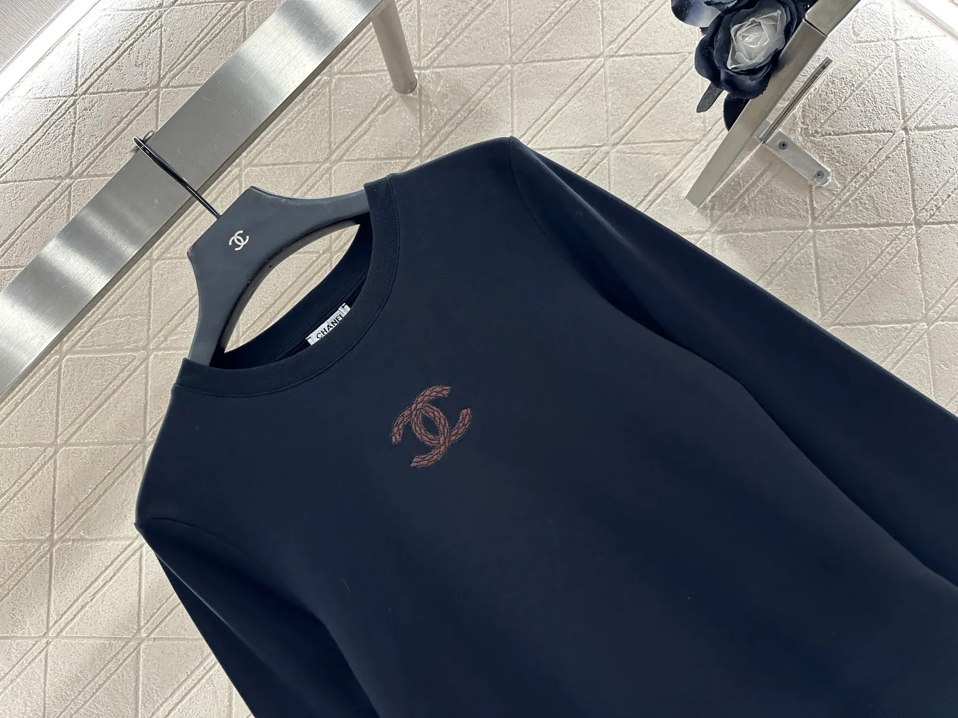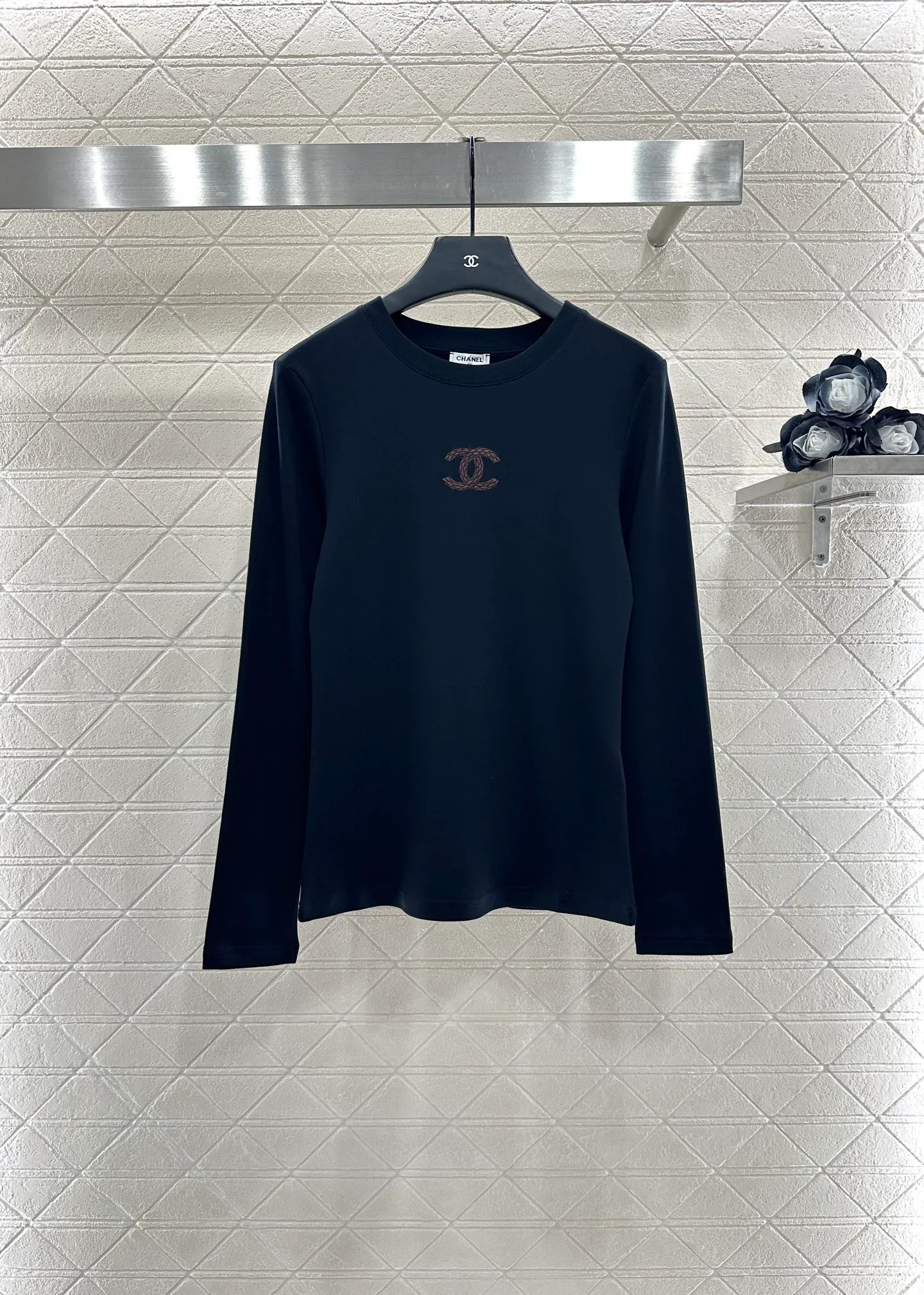 Классический круглый воротник и продуманный крой подчеркивают стиль бренда. Логотип двойной C на груди выполнен с использованием техники, напоминающей вязку, что выделяет изделие. Дизайн предполагает универсальное использование: лонгслив можно носить как самостоятельно, так и в многослойных образах.