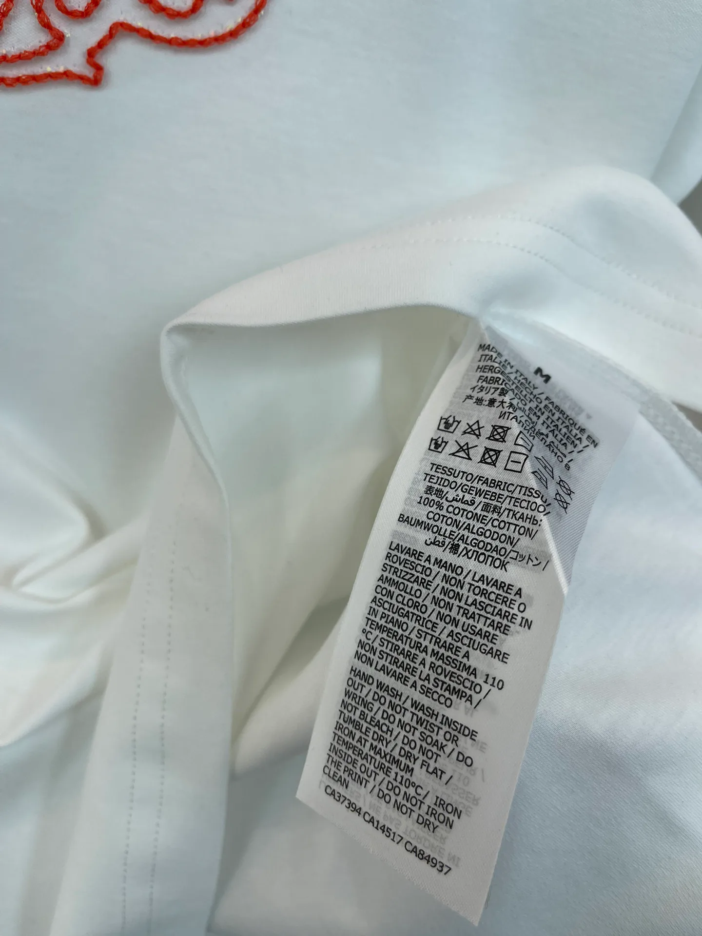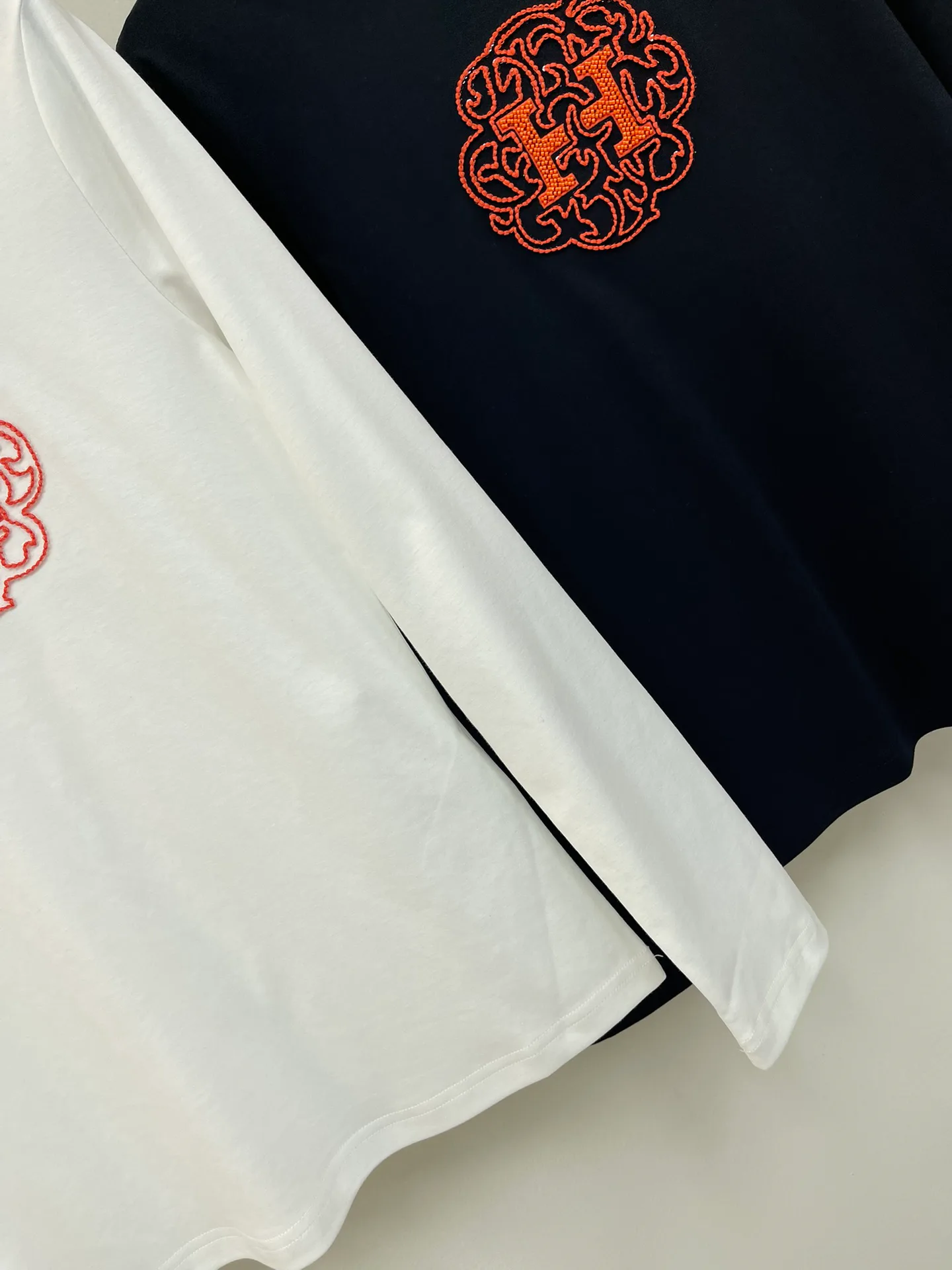Декоративный логотип, нашитый вручную из бусин, создает эффект благородной вышивки и дополняется мотивом пламени. Ткань обладает заметной эластичностью, подчеркивающей форму. Лонгслив можно носить как самостоятельный топ или в комплектах. Рекомендуется деликатная стирка при низких температурах, чтобы сохранить декоративную отделку. Размеры S, M, L.