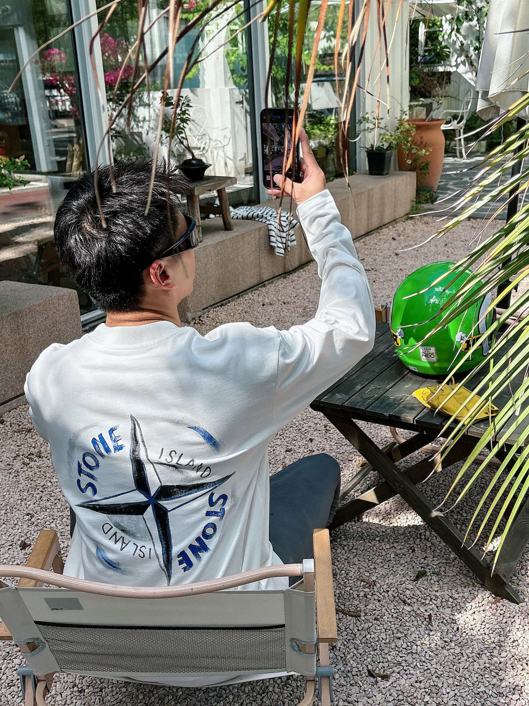 Имейте в виду, что состав ткани и конкретный цвет изделия могут варьироваться в зависимости от партии и техники нанесения росписи. Рекомендуется учитывать стандартную посадку изделия в линейке STONE ISLAND при выборе размера.