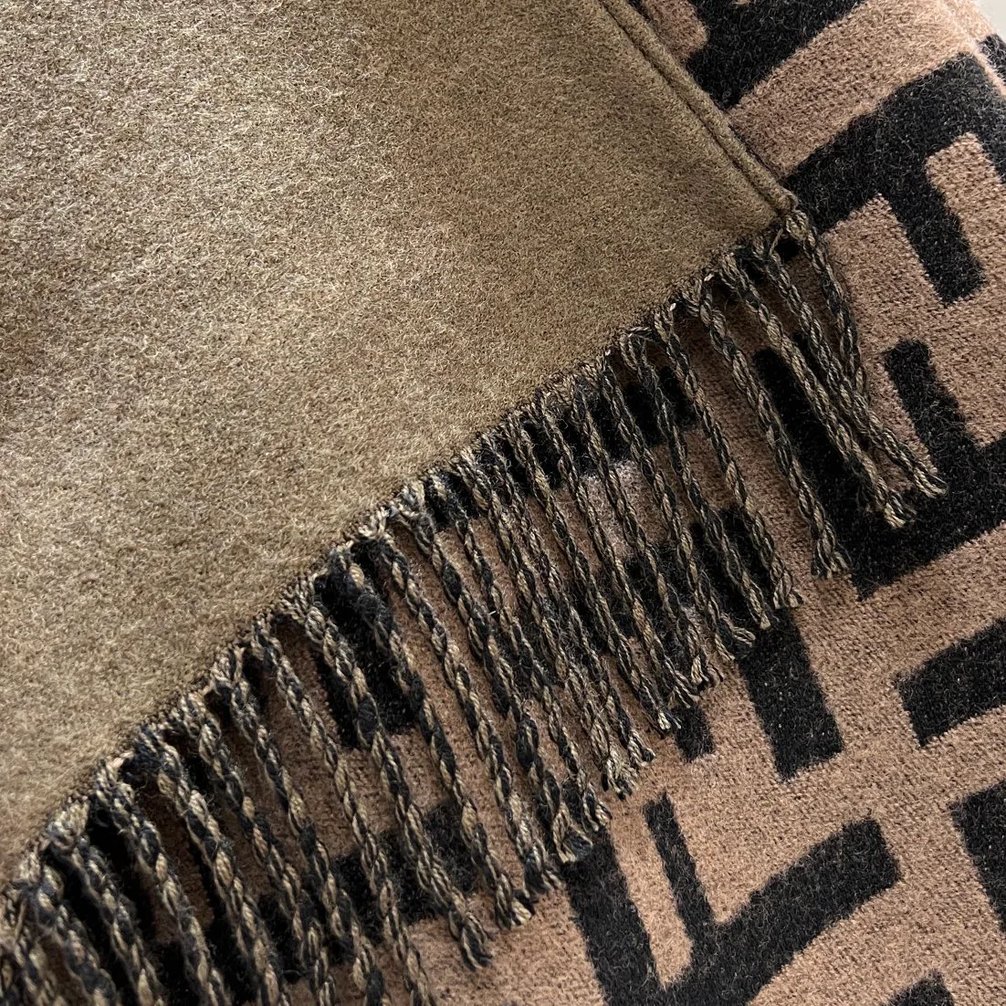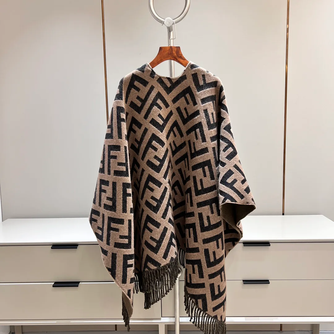 Состав: 51% шерсть и 49% кашемир, что придаёт тепло и мягкость. Двусторонняя конструкция позволяет носить пелерину с одной стороны в спокойных тонах или с другой — с ярким кофейным акцентом. Уход требует бережного обращения, рекомендуется деликатная стирка вручную или профессиональная чистка.