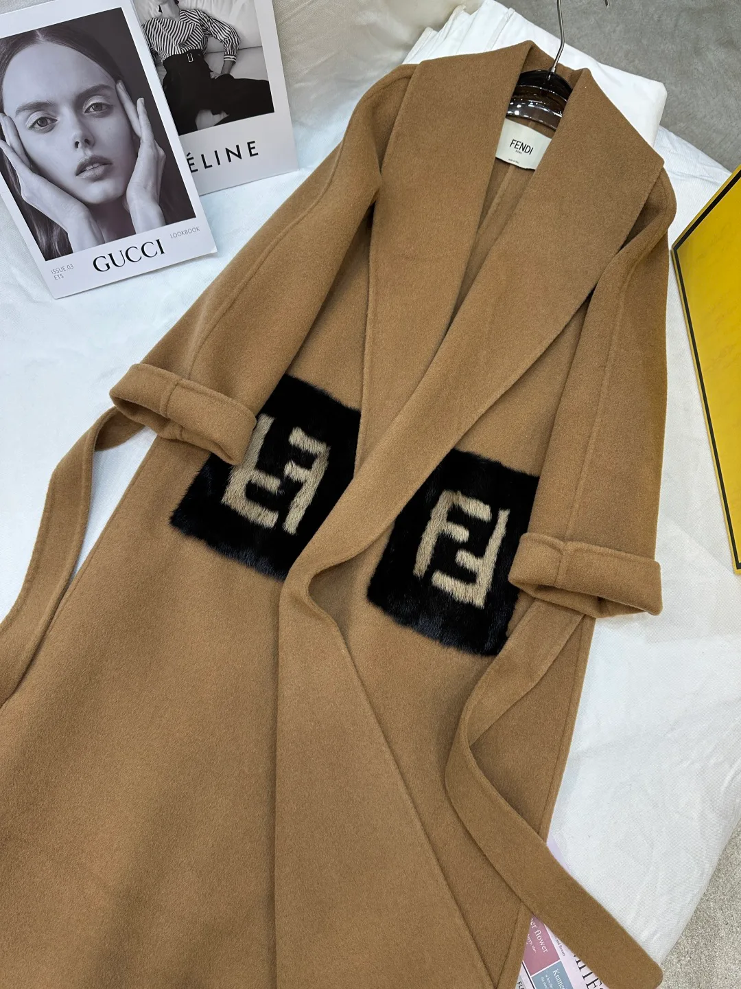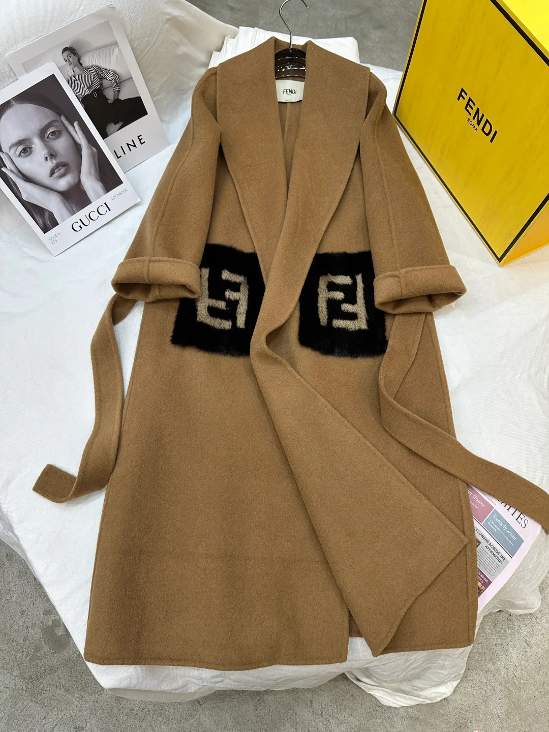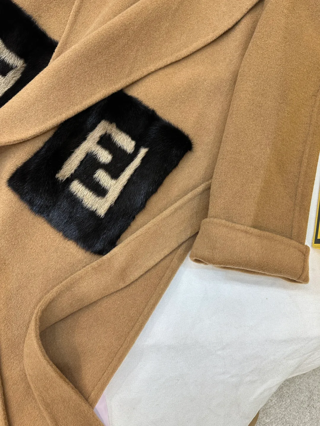 Пальто оборудовано карманами с отделкой из черного меха норки и украшено фирменным двойным логотипом FF на груди. Доступно в размерах S, M, L, что позволяет выбрать подходящий вариант.