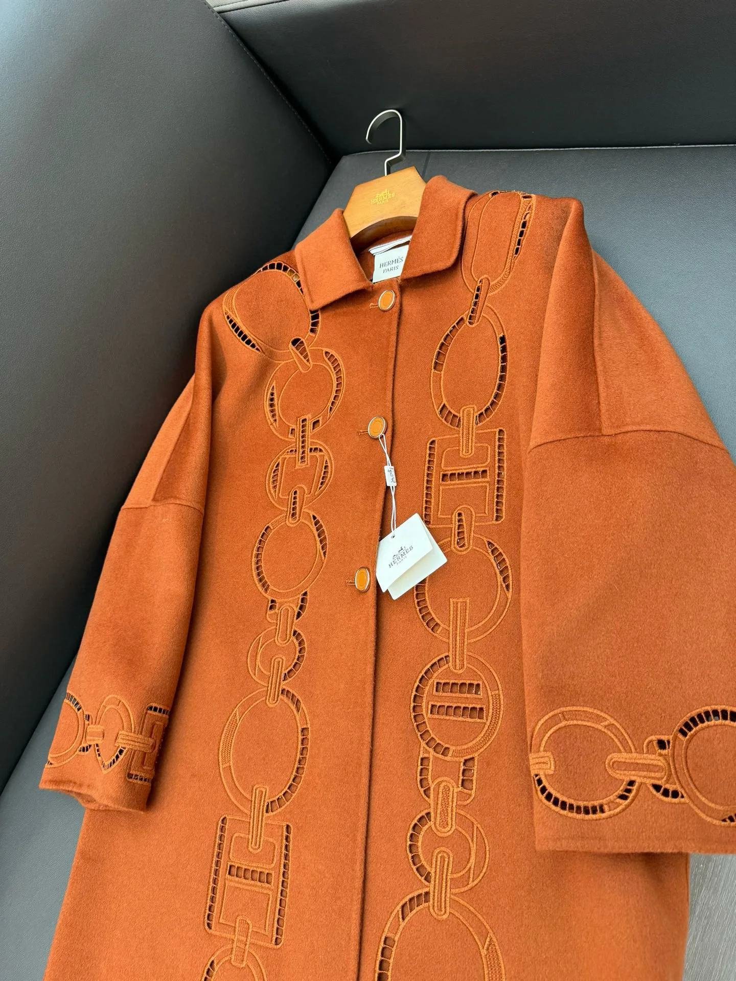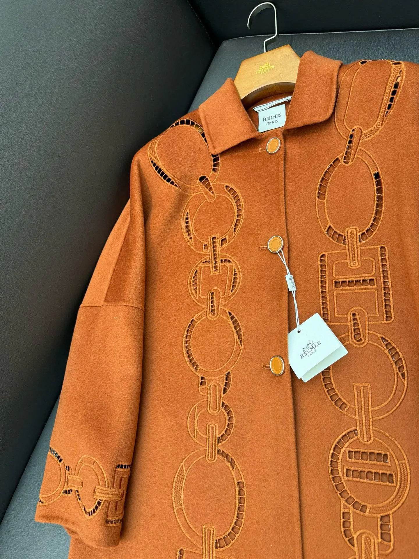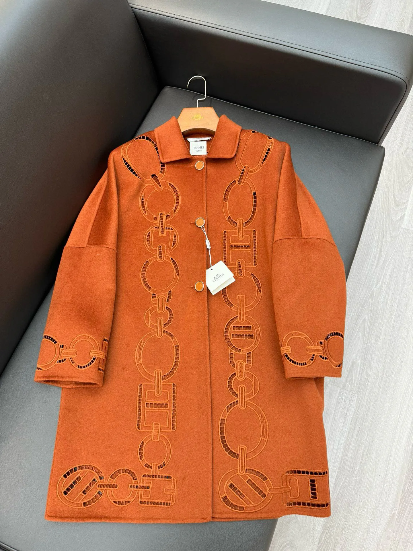 Доступно в размерах 36, 38 и 40, пальто представлено в цветах: оранжево-тыквенный, черный и белый. Кашемировое пальто идеально сочетается с нейтральной одеждой, например, черными или белыми брюками и аккуратными ботинками для создания утонченного образа. Цвет pumpkin color добавляет выразительности в темной палитре сезона.