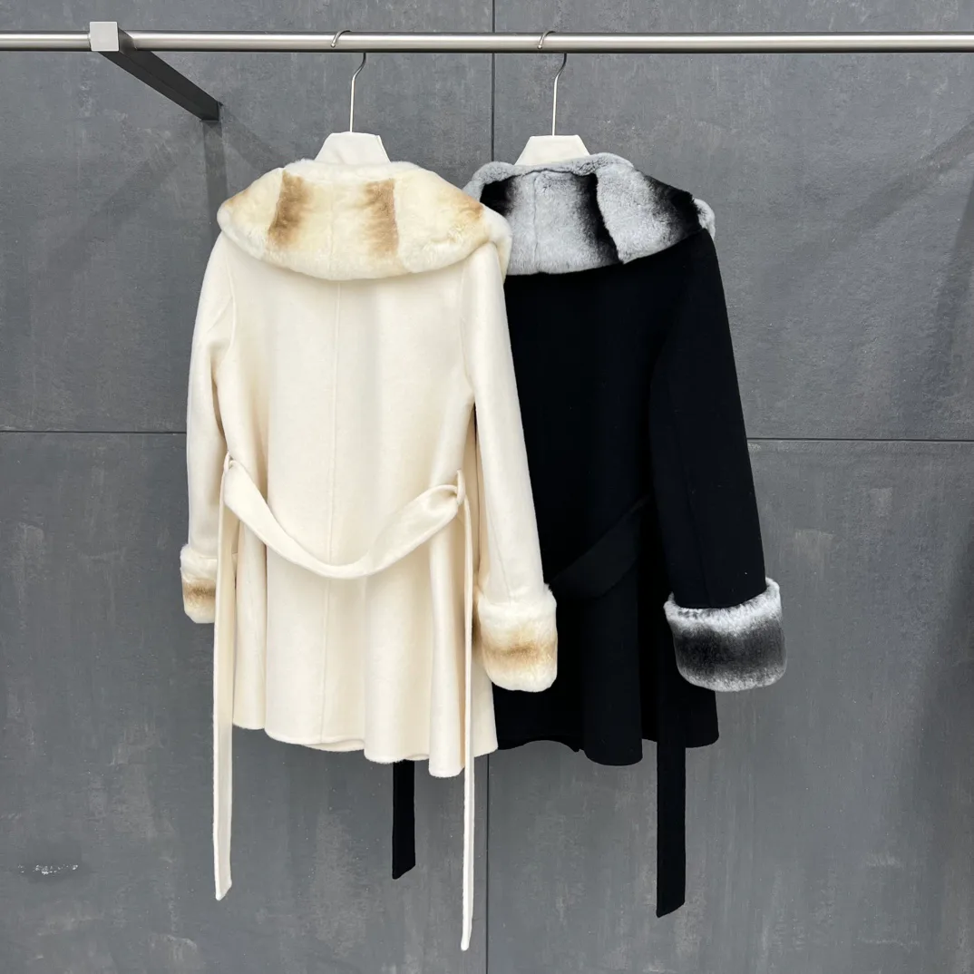 Основной материал: 10% кашемир/альпака и 90% шерсть; отделка — целая кроличья шкура, натуральный мех, добавляющий роскошь.