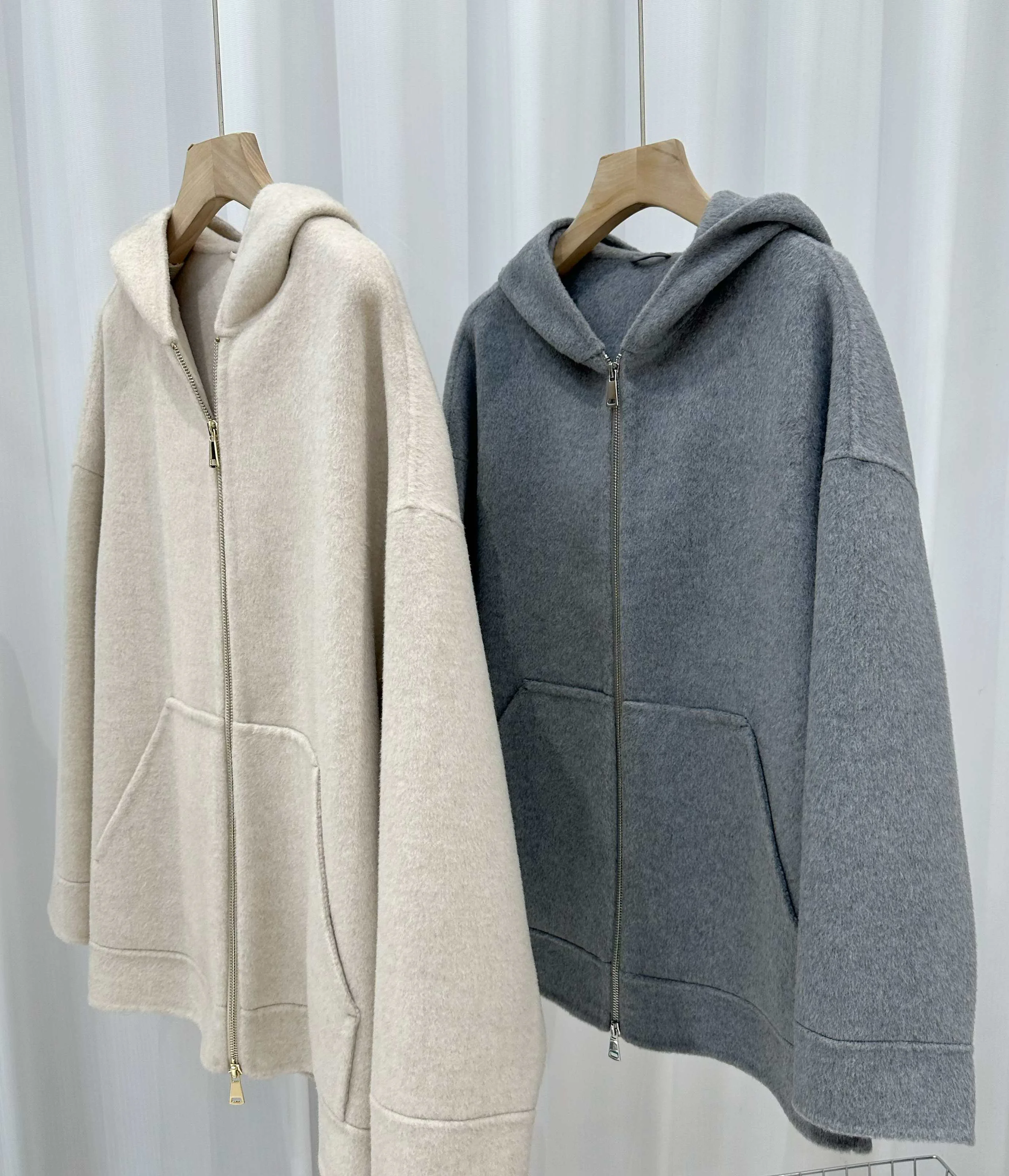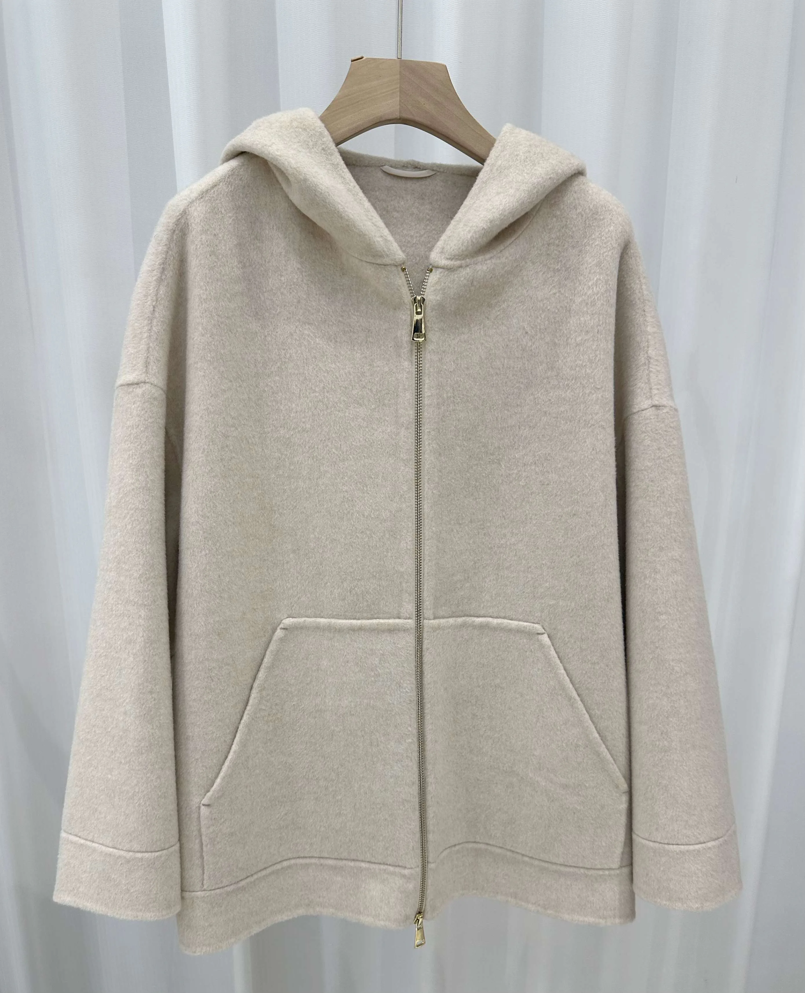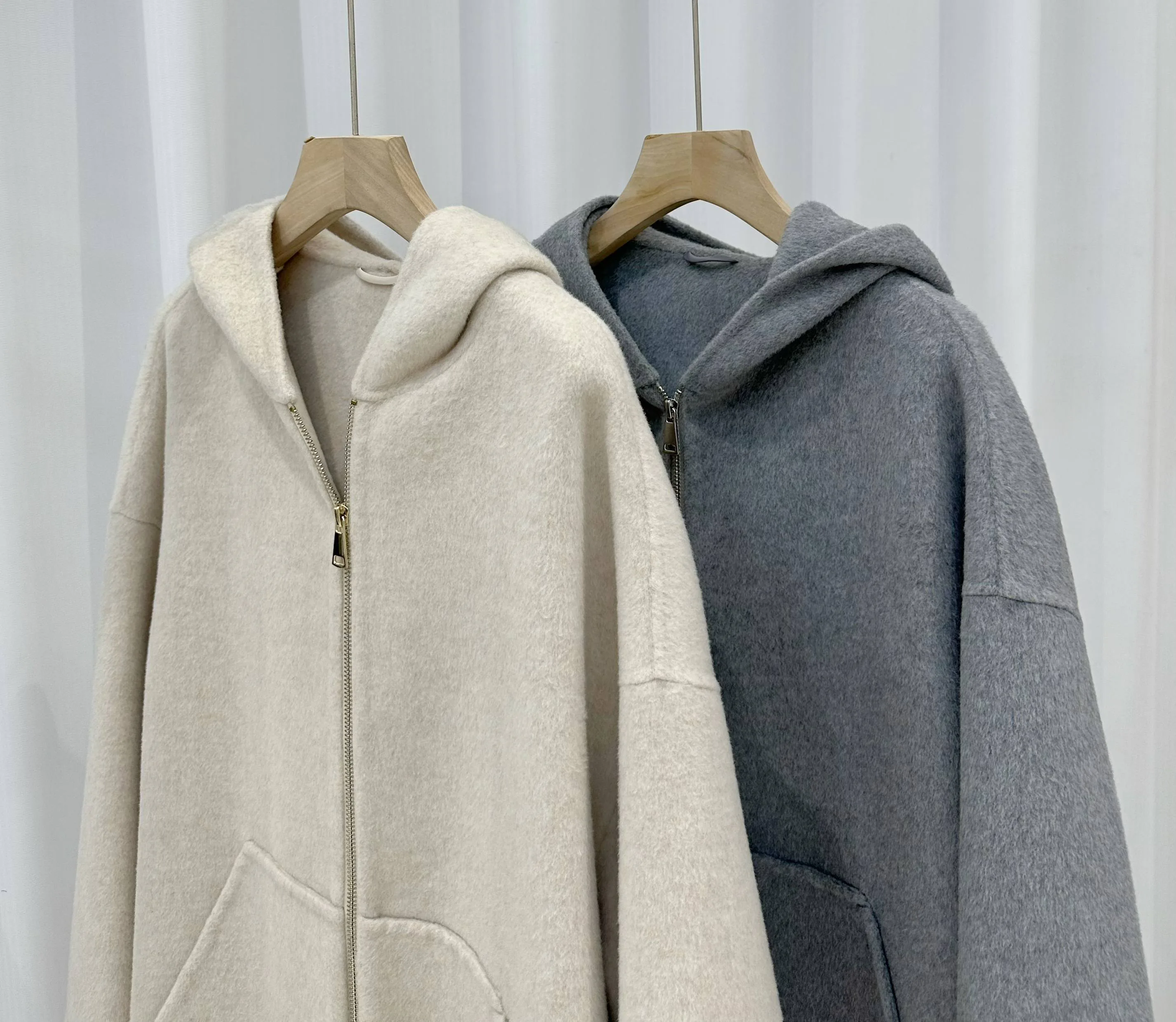 Пальто имеет свободный крой H-формы, позволяющий носить под ним плотные свитера и куртки без потери формы. Капюшон добавляет практичности и современности. Длина и пропорции подчеркивают элегантность и визуально стройнят силуэт. Чтобы сохранить внешний вид и теплоизоляцию, рекомендуется бережное обслуживание и профессиональная чистка.