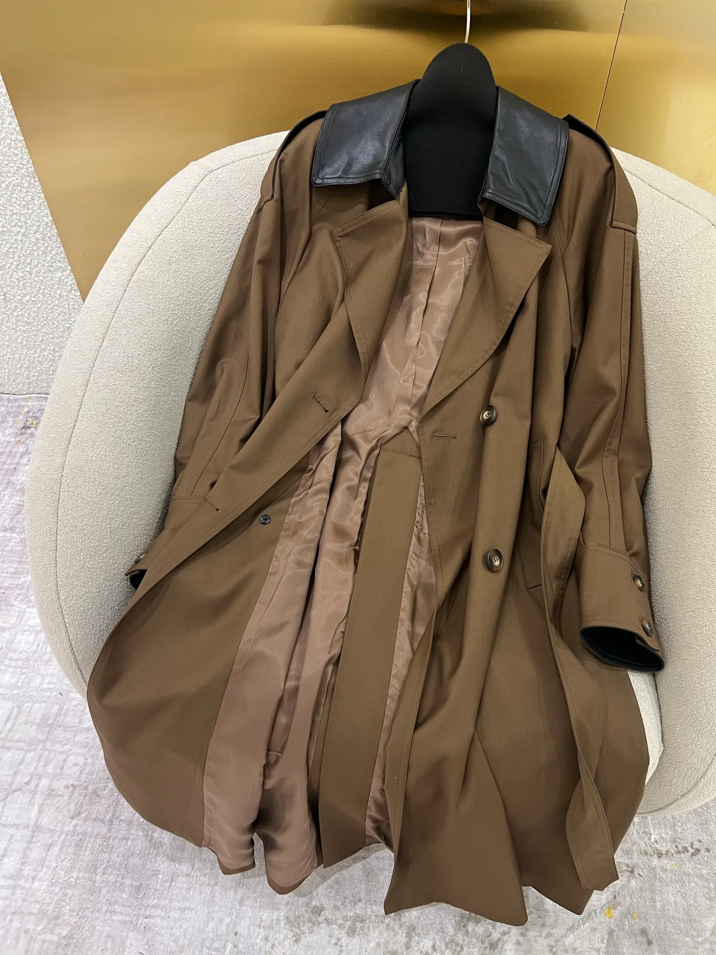 Пальто имеет свободную, но утончённую посадку, что обеспечивает комфортную подвижность. На задней части изделия расположен сдержанный декоративный элемент, добавляющий уникальный акцент. Доступные размеры: S, M, L.