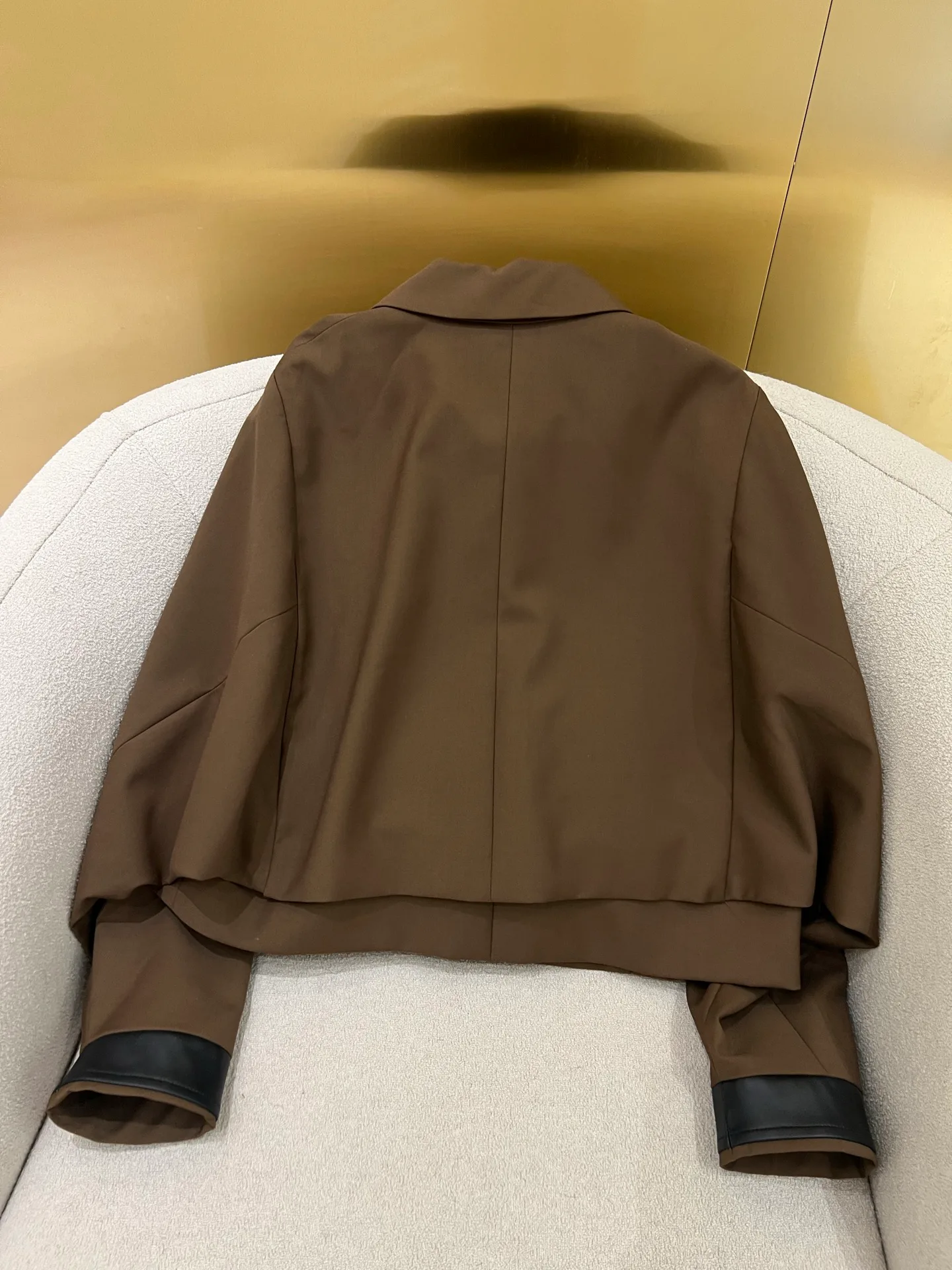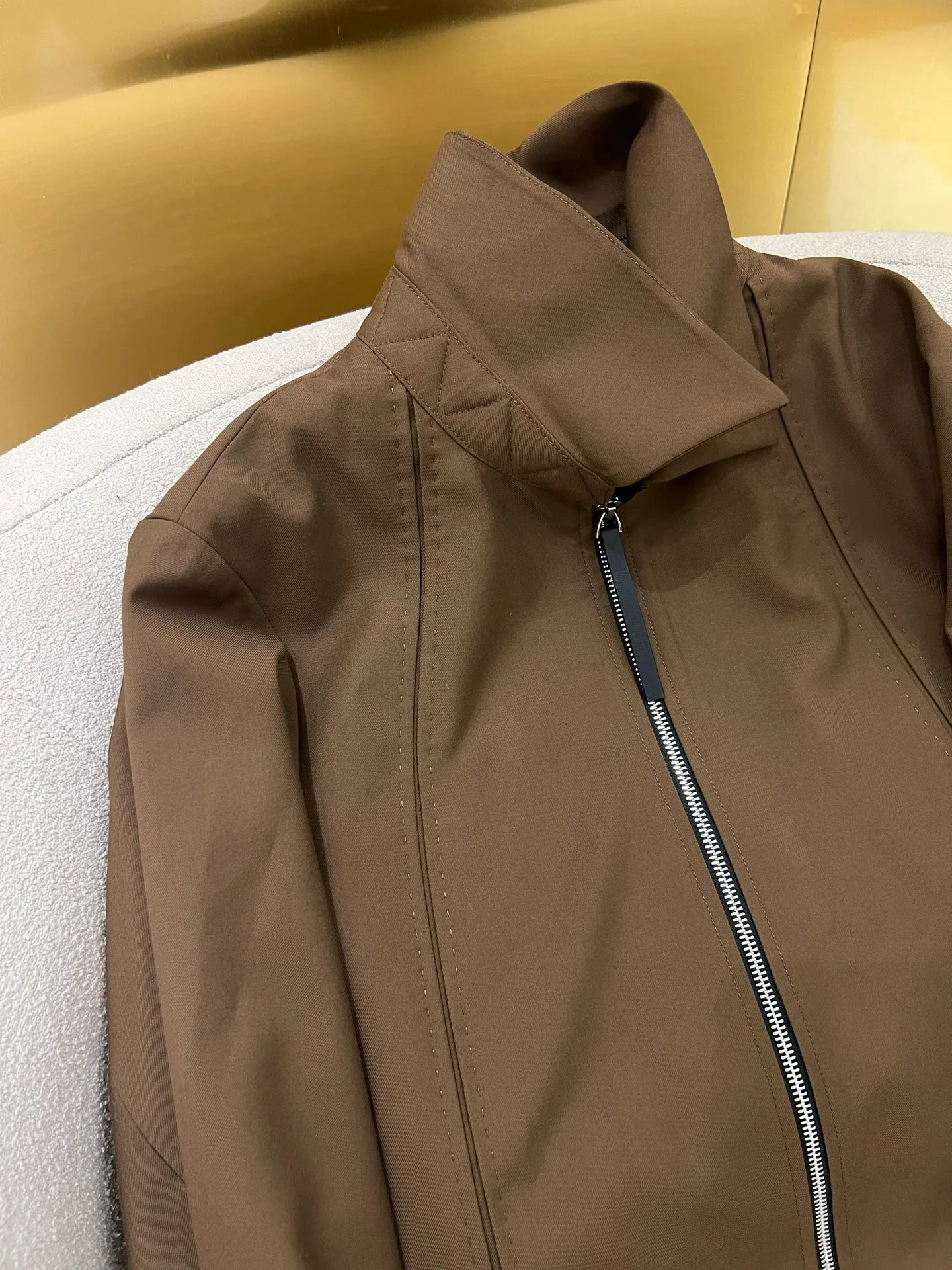 Свободный крой с естественной драпировкой подчеркивает движение и гибкость образа. Короткая длина тренча подходит для многосезонного использования с различными нарядами. Задняя часть изделия содержит декоративный элемент, напоминающий перо, добавляя утончённости.