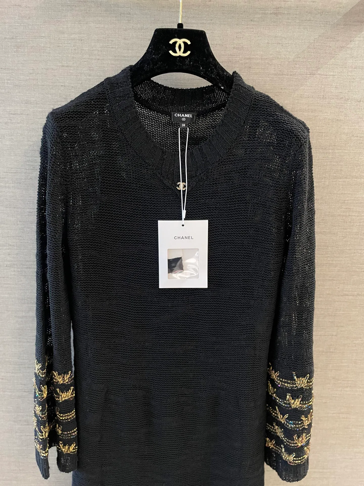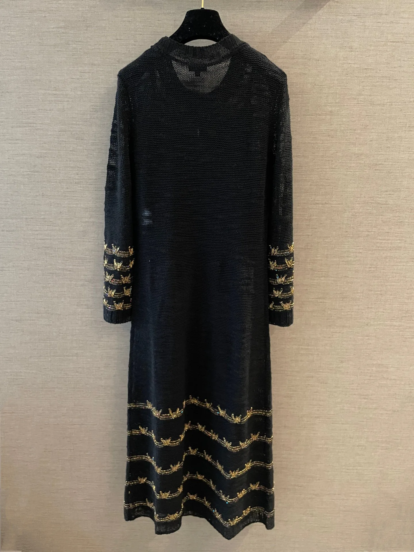 Модель доступна в черном и белом цветах, каждый из которых украшен золотистой ниткой для дополнительного блеска. Размеры представлены 36, 38 и 40. Платье подходит для повседневной носки и торжественных мероприятий благодаря элегантному дизайну, сочетающему базовые оттенки и декоративные элементы.