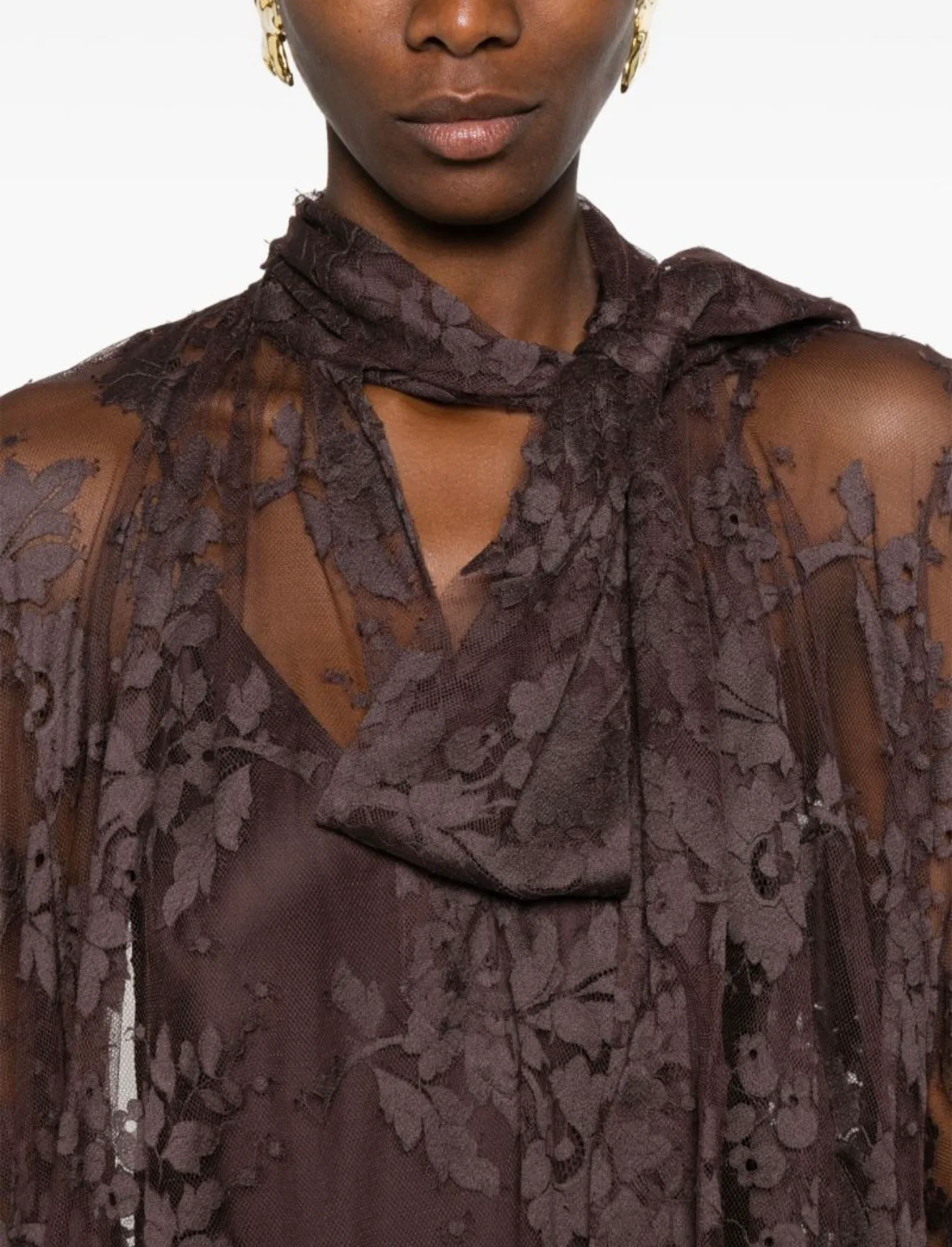 Модель "Illustration" с лампашными рукавами, шнуровкой и кружевом — это платье с шнуровкой в длине миди.