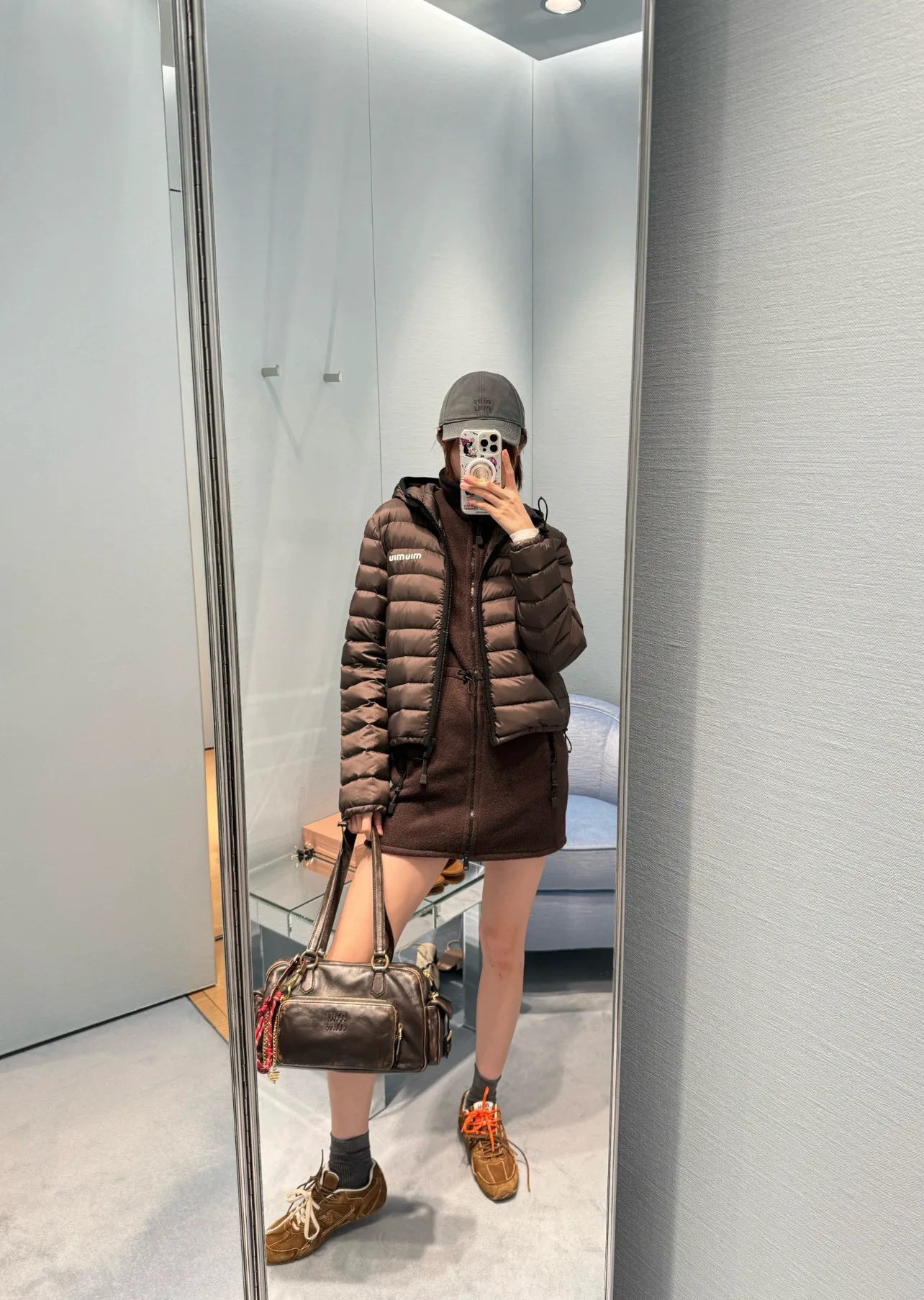 Пуховик имеет прямоугольную рельефную фактуру на передней панели, что создает текстурный акцент. Два кармана на молниях обеспечивают функциональность. Гладкая поверхность и аккуратный крой делают пуховик уникальным. Он отлично сочетается с джинсами и спортивными брюками, добавляя изящности в городской стиль. Доступные размеры: S, M, L.
