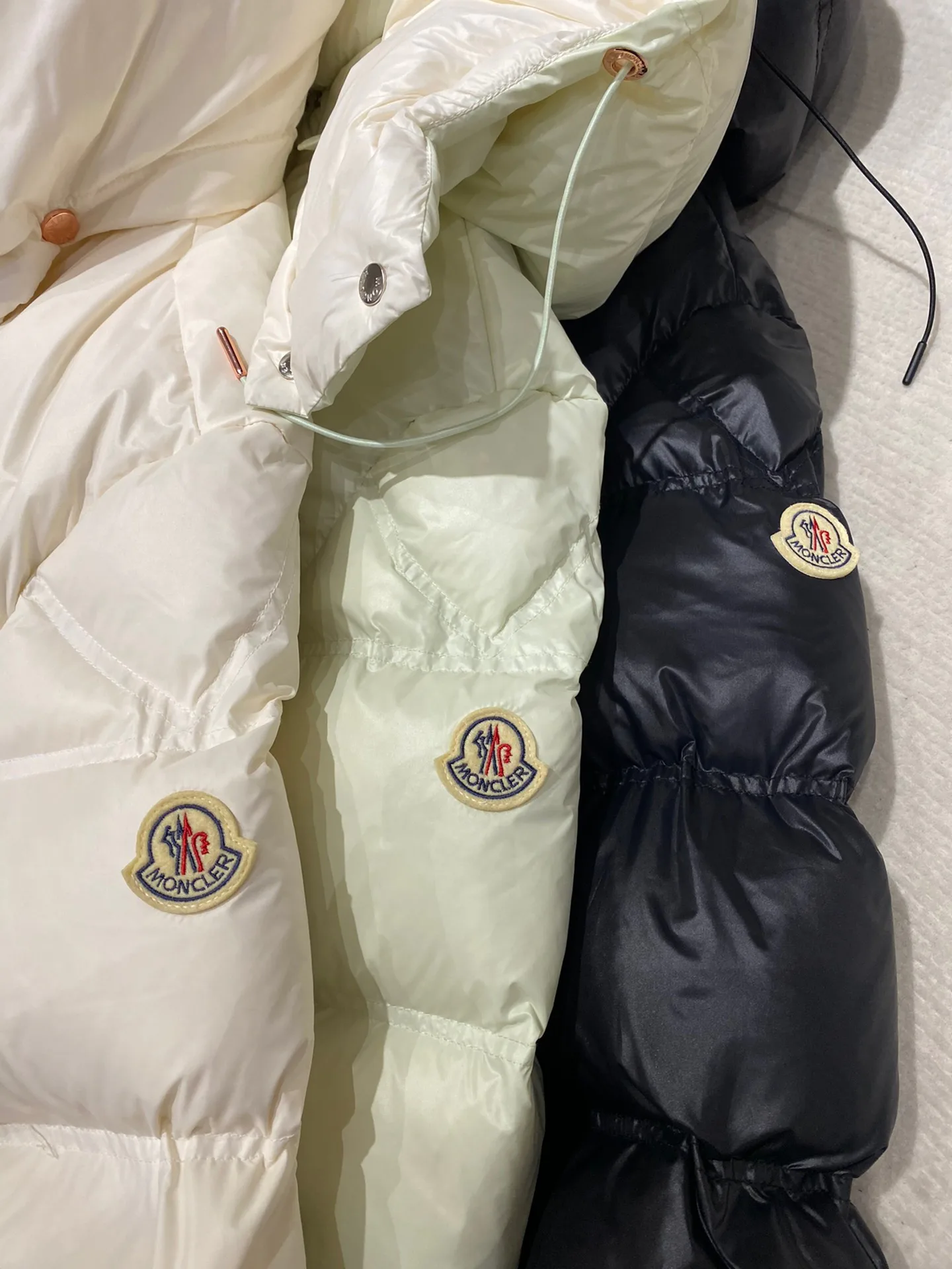 Куртка имеет контрастную геометрическую стёжку, подчеркивающую линии изделия. Передняя застёжка на двойные кнопки. Доступна в черном, молочно-белом и яблочно-зелёном цветах, а размеры варьируются от 0 до 2.