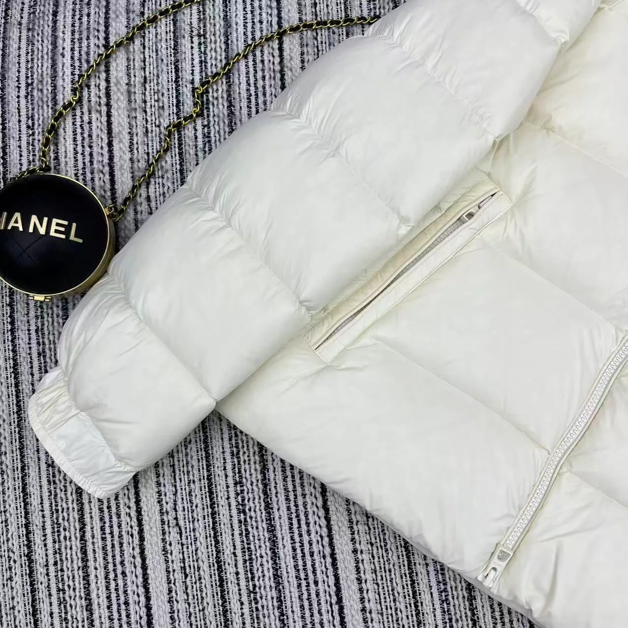 Mon* представляет пуховик из серии 25-й год для ранней осени и зимы: высокий воротник, классический крой, стильные детали на рукавах и карманах, наполненный 90% белым гусиным пухом. Предлагается в четырех цветах (коды 0–3). Это надёжный выбор для тёплого и стильного утепления в холодное время года.