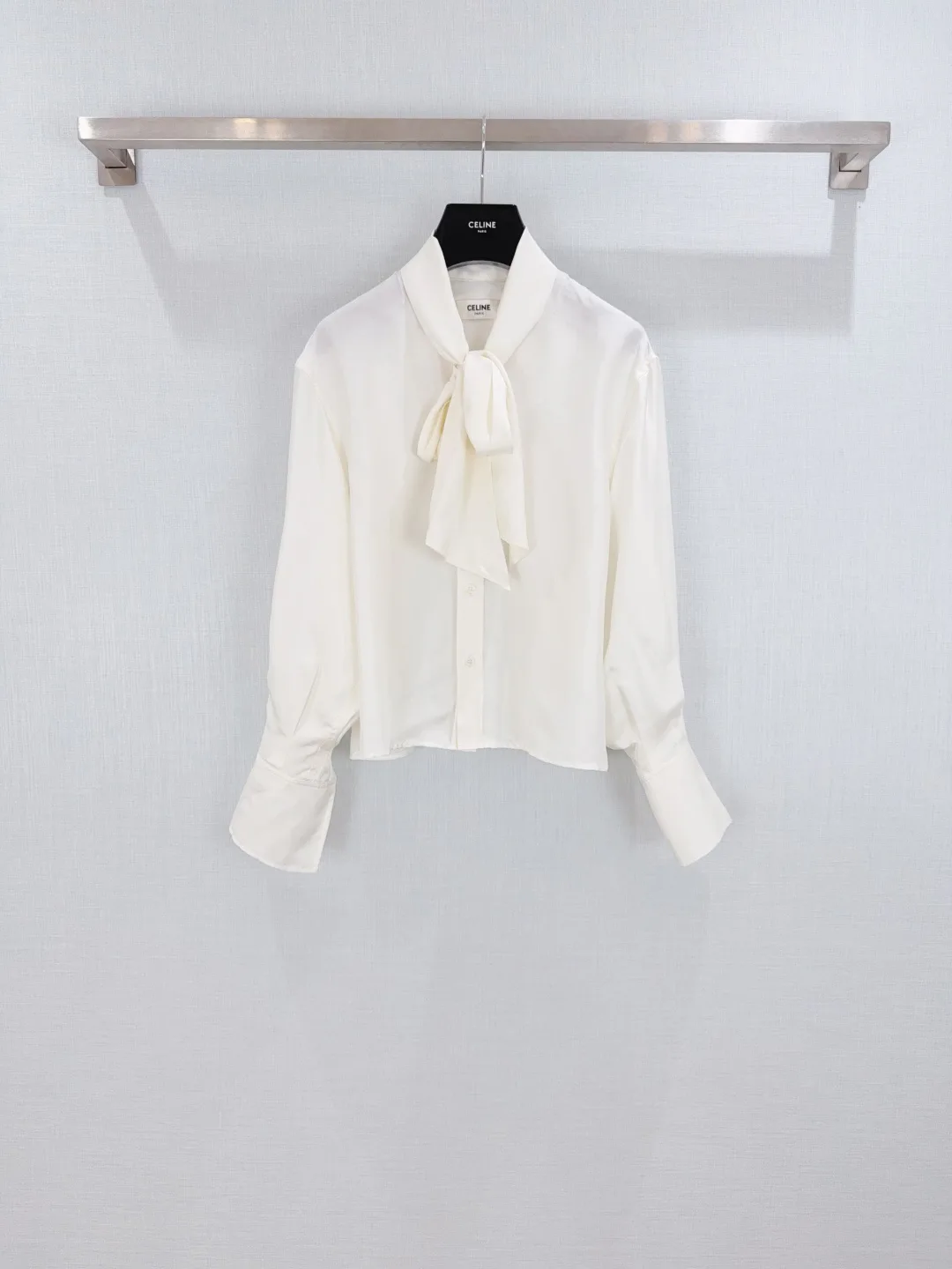 Рубашки женские CELINE — белая рубашка из натурального шёлка с французским бантом. Материя — натуральный шёлк, который обеспечивает приятную драпировку. Доступны размеры S, M и L. Особенность изделия — декоративный французский бант. Рубашка предназначена для женского гардероба и может сочетаться с различными образами.