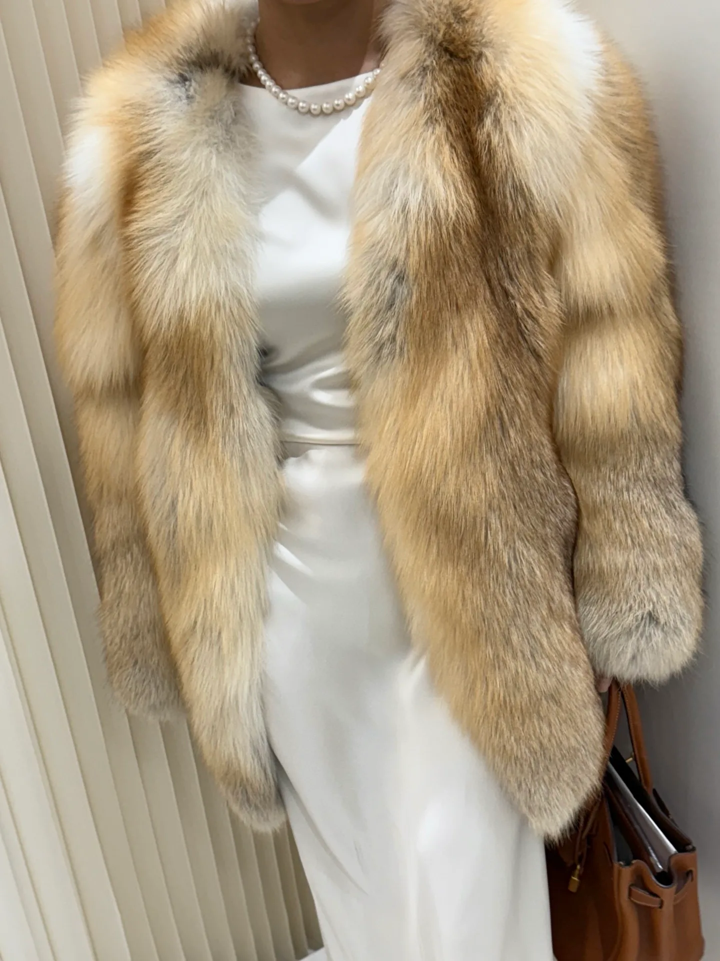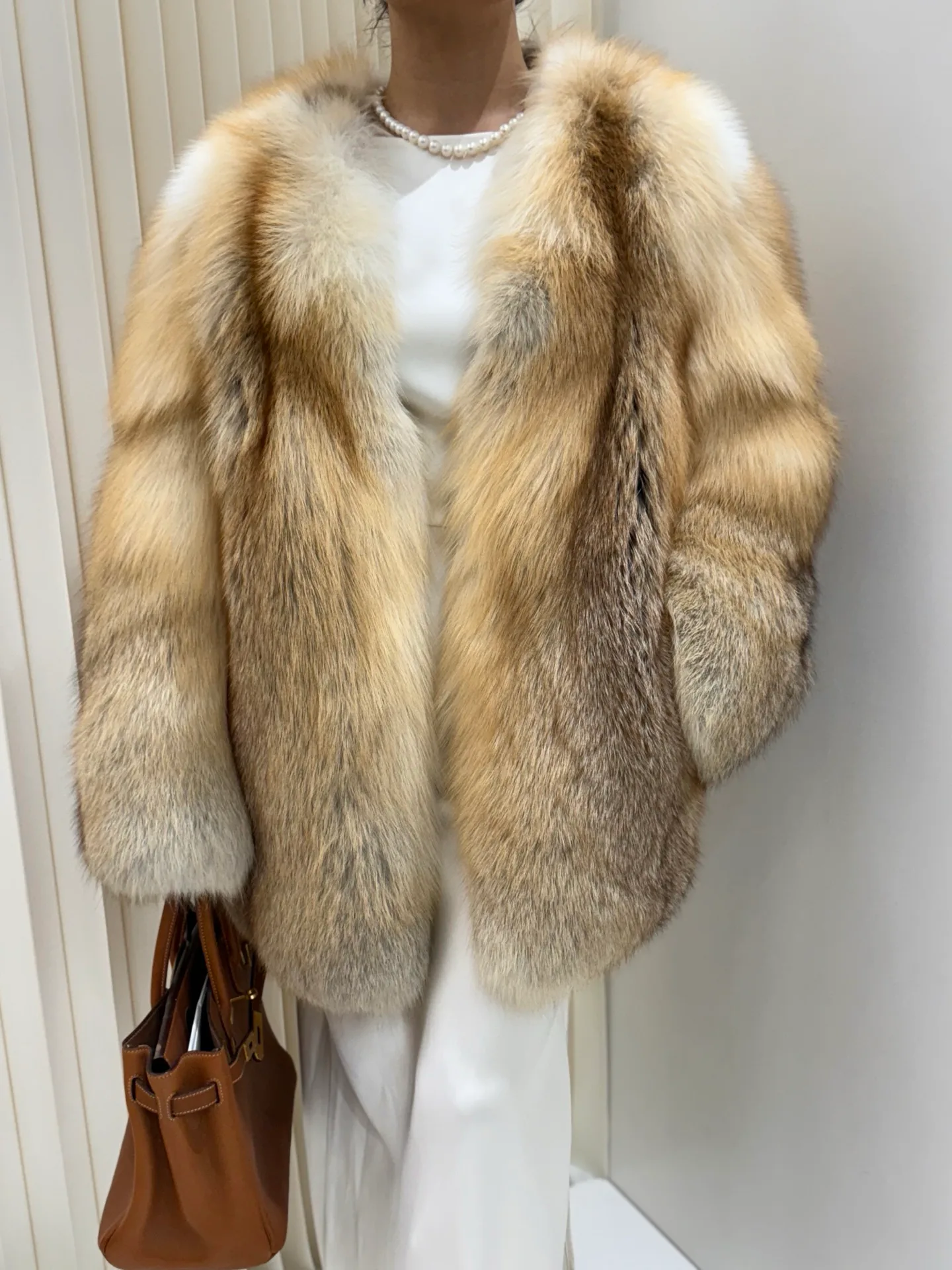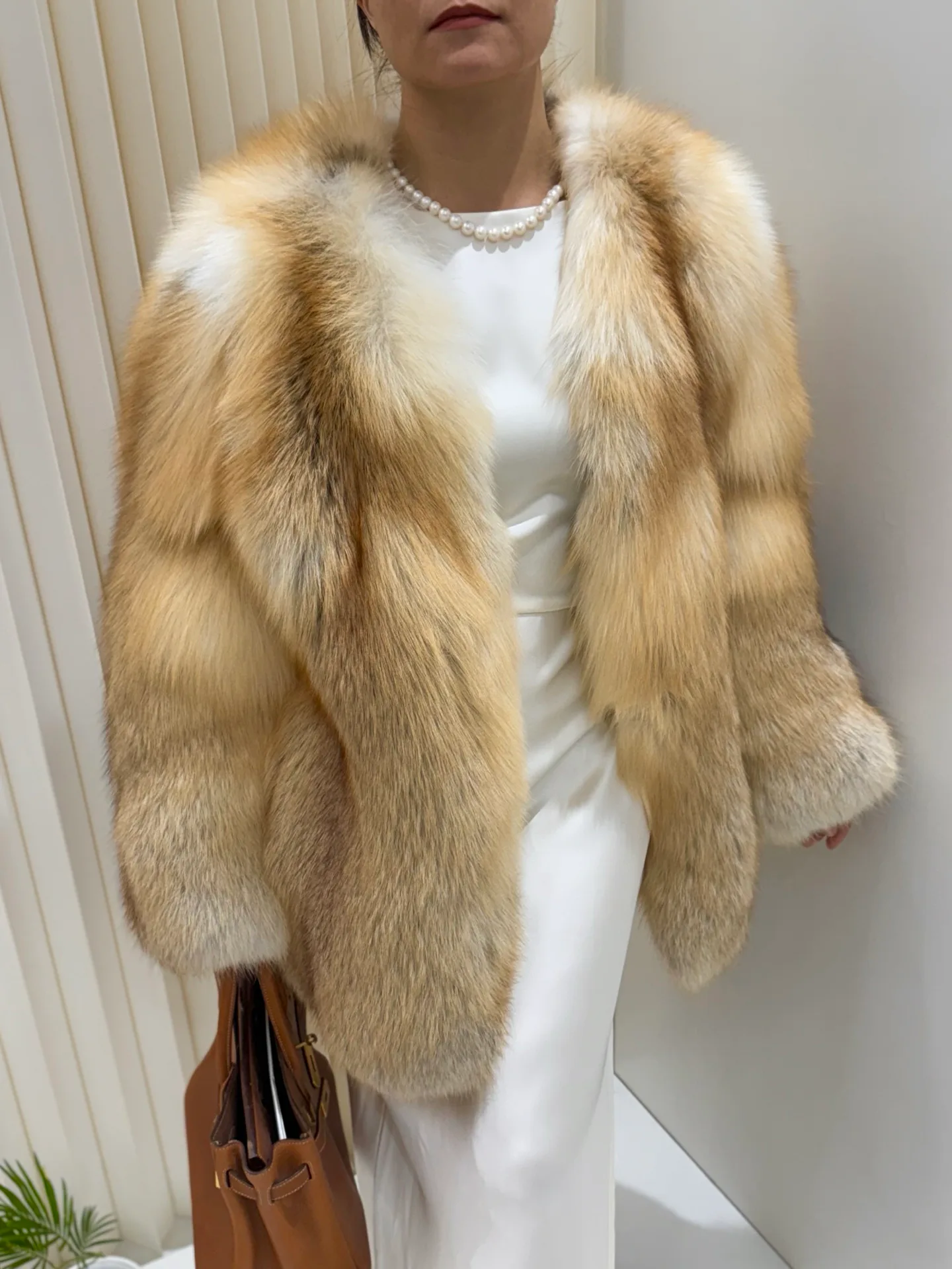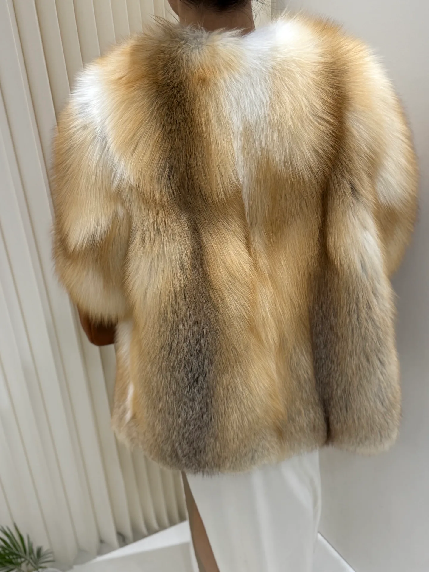 Основной акцент дизайна лежит на цельности мехового покрытия, что отражает концепцию объединения меха и кожи. Шуба подходит для сочетания с нейтральной цветовой гаммой и отлично смотрится с однотонными вещами в бежевых, серых или черных тонах. Мех требует профессиональной очистки и бережного обращения.