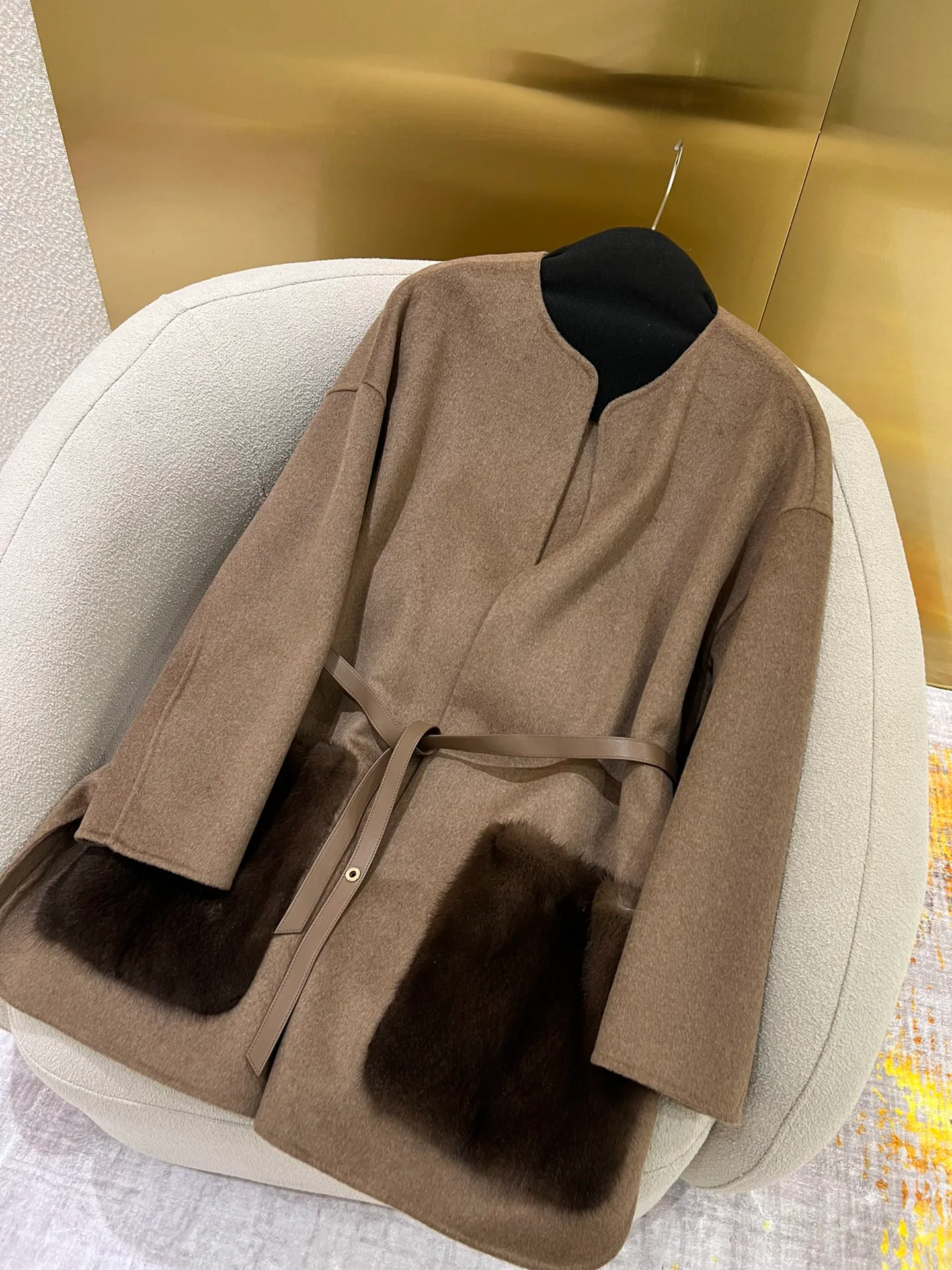 Материалы: мех норки высокого качества; подкладка — смесь кашемира и шелка; детали — пояс из кожи ягнёнка.