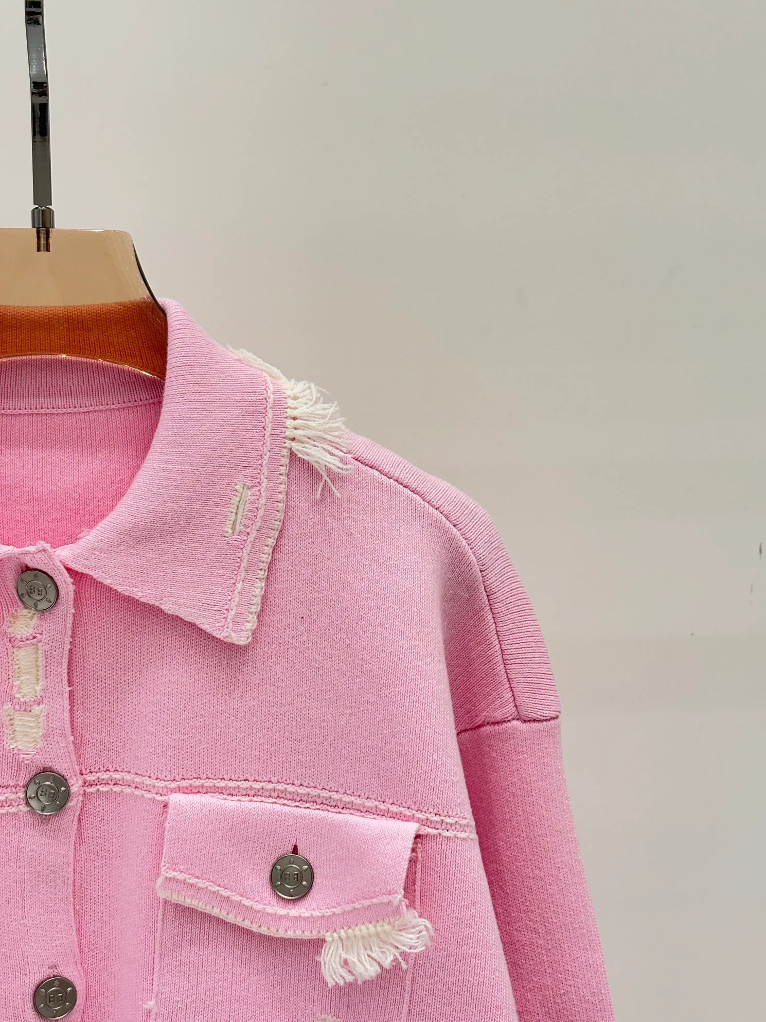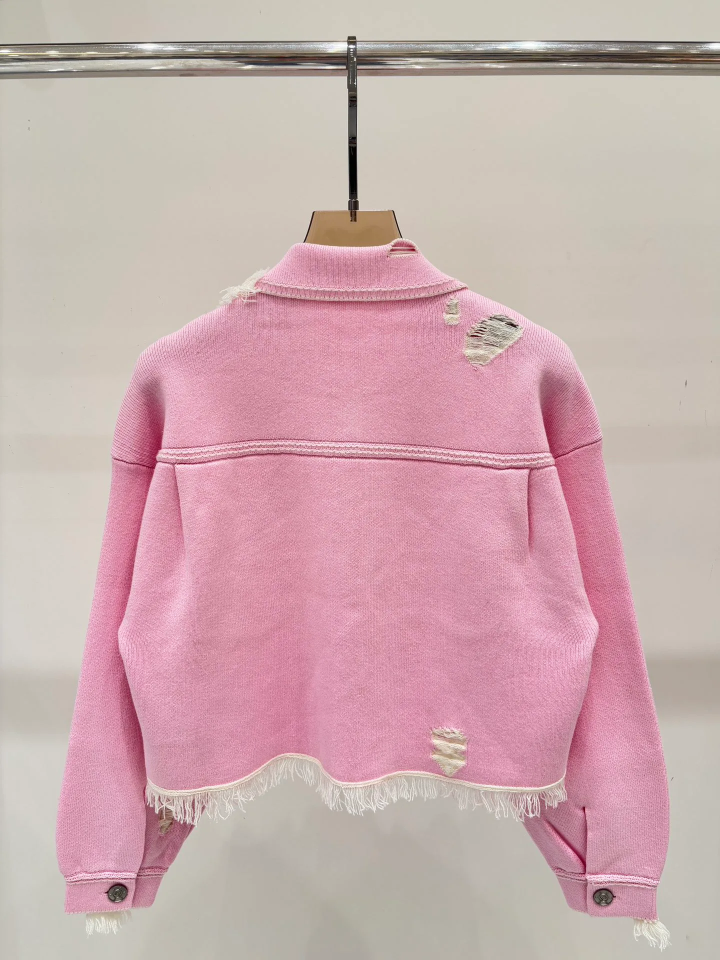 Изготовлен из вязного трикотажа с небольшими декоративными прорезями, которые добавляют урбанистический акцент. Бахрома придаёт образу оригинальность. Удобный открытый тип ношения обеспечивает комфорт в демисезонный период. В наличии размеры S, M, L.