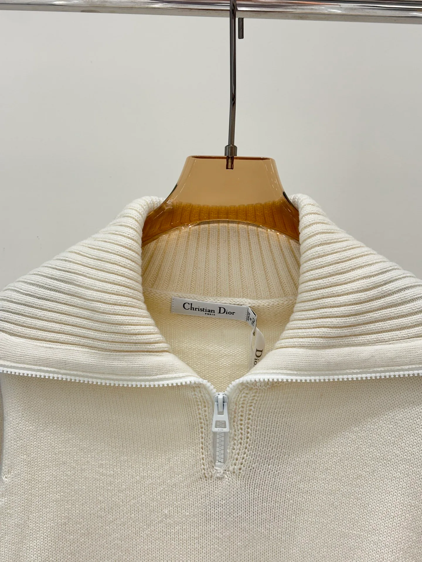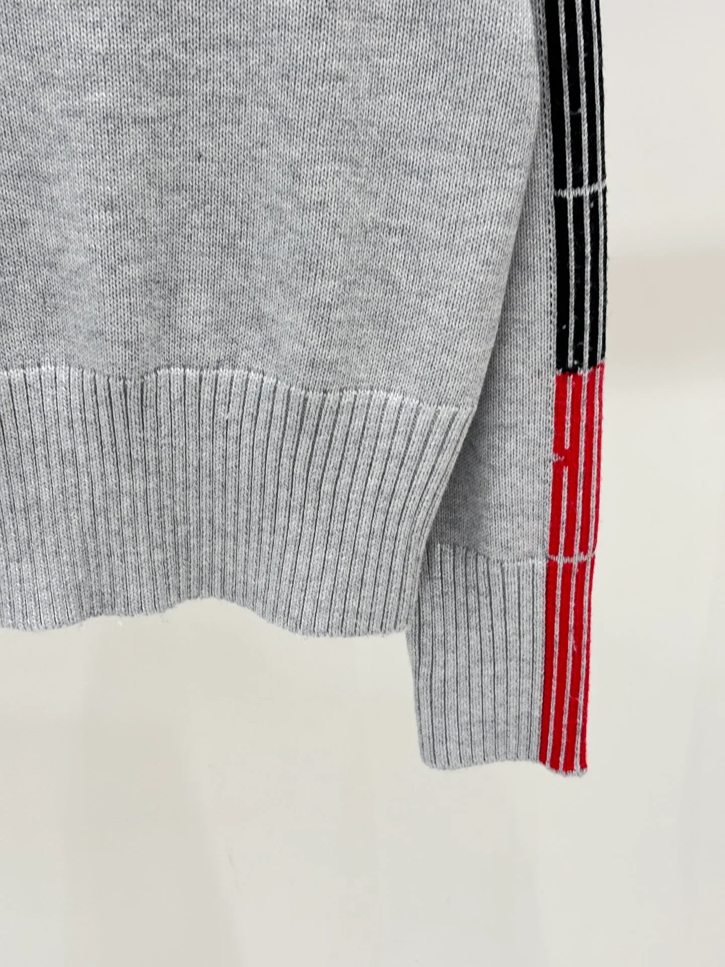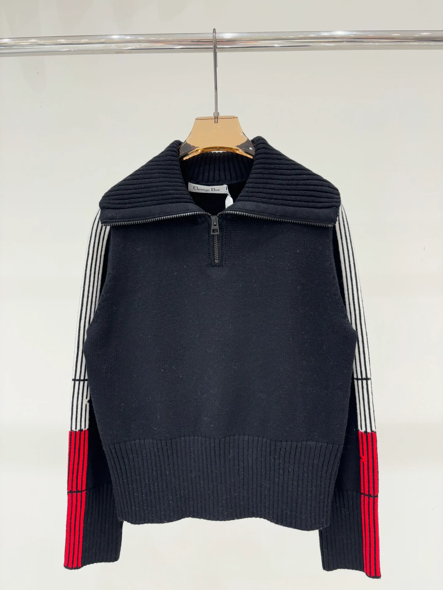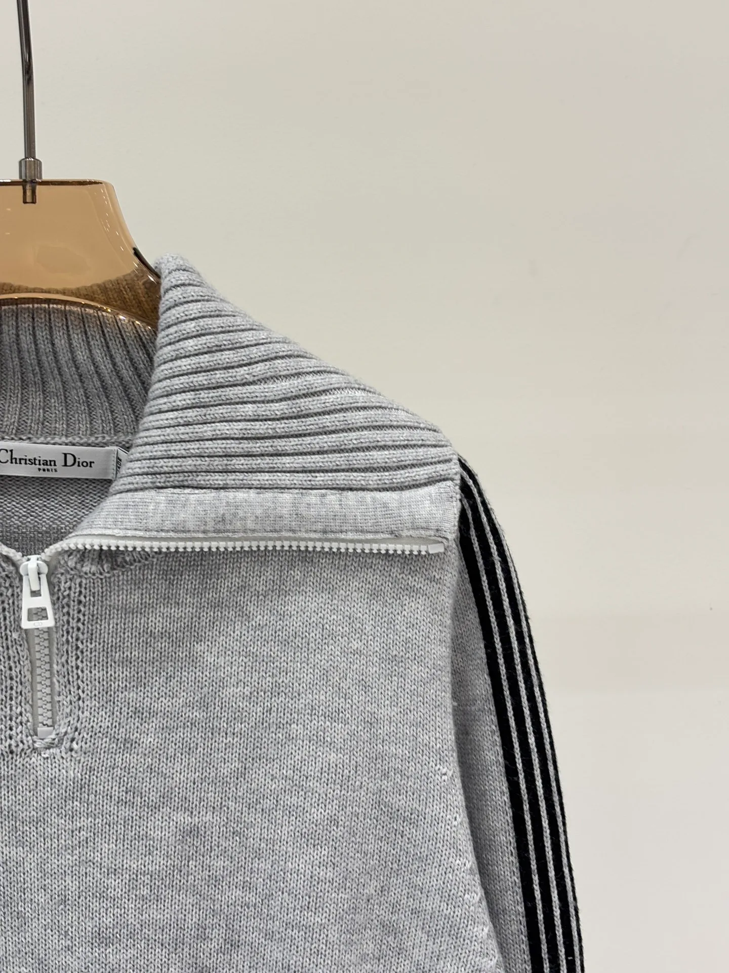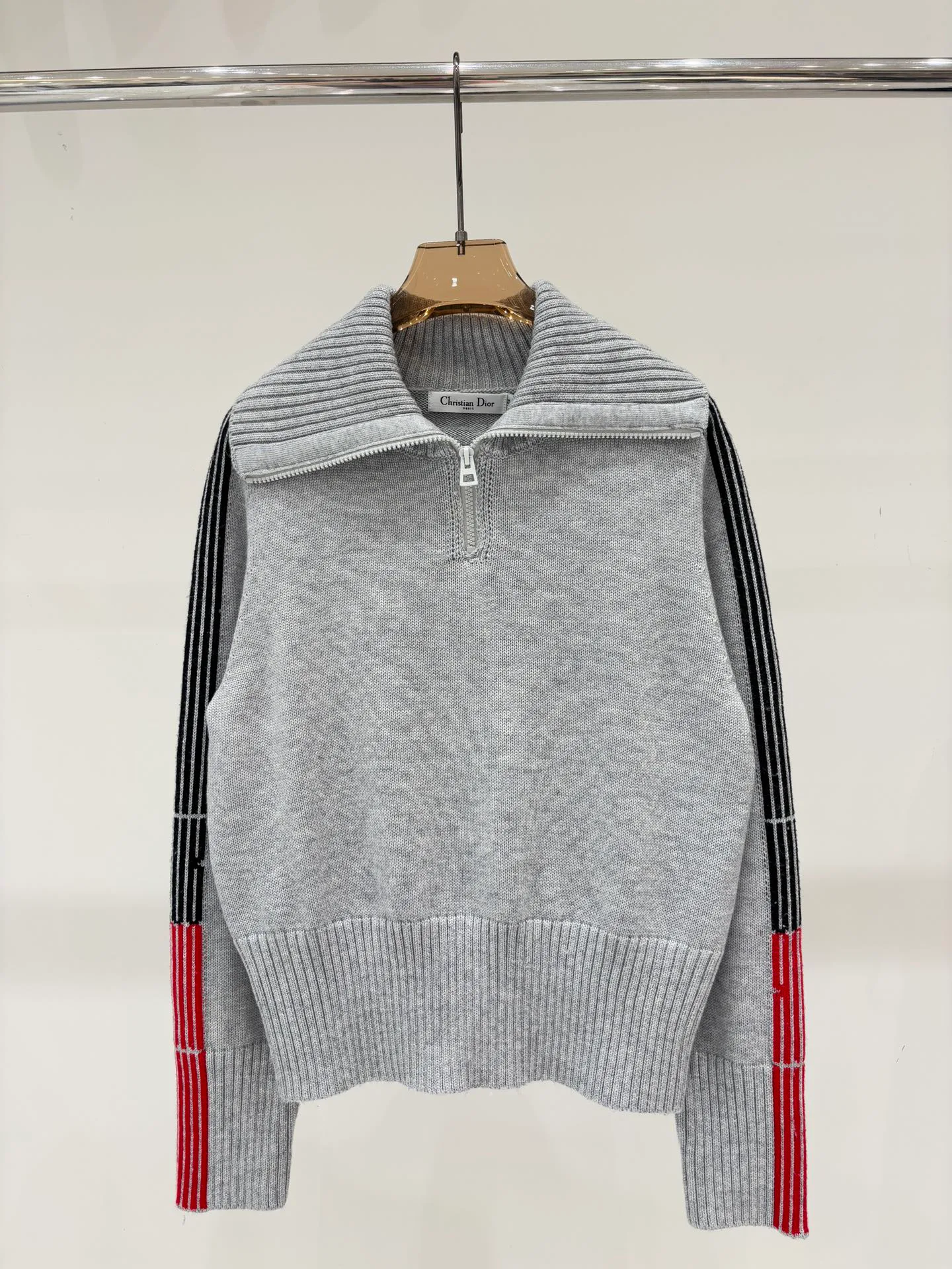 Основные характеристики: цвета белый, серый, черный. Размеры S, M, L. Воротник отложной. Застежка полузип на груди, удобная при надевании. Дизайн цветной контрастный блок в виде полос и полосатый нижний край. Силуэт свободный, крой регулярный, комфортный для повседневной носки. Материал вязанный трикотаж, мягкость и тепло, подходит для ранней осени. Уход бережная стирка по ярлыку, рекомендации по уходу зависят от состава ткани.