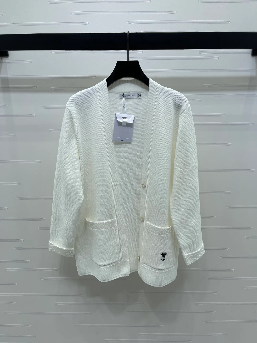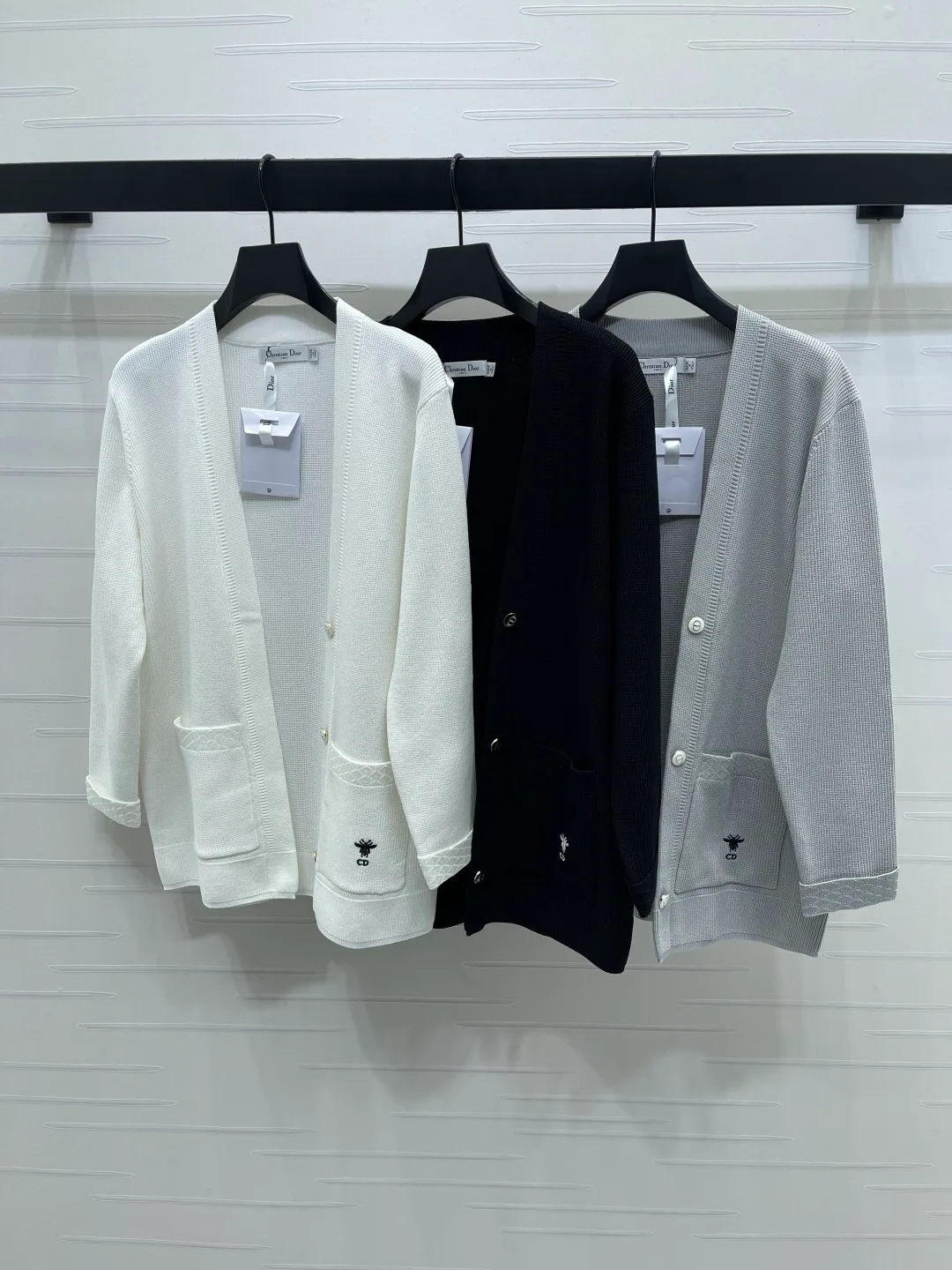 Изделие представлено в светло-сером цвете, что подчеркивает литературную атмосферу образа. Декоративная планка с гравированной детализацией пуговиц добавляет текстуру и ощущение качества. Рукава оформлены манжетами с эластичной вязкой для удобства. Вышивка с изображением пчелы и логотипа CD на карманах придает оригинальности. Доступны размеры S, M, L. Подходит для использования в прохладные дни или поверх рубашки.