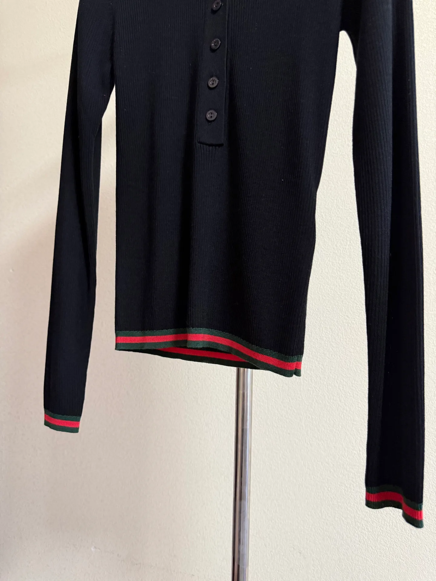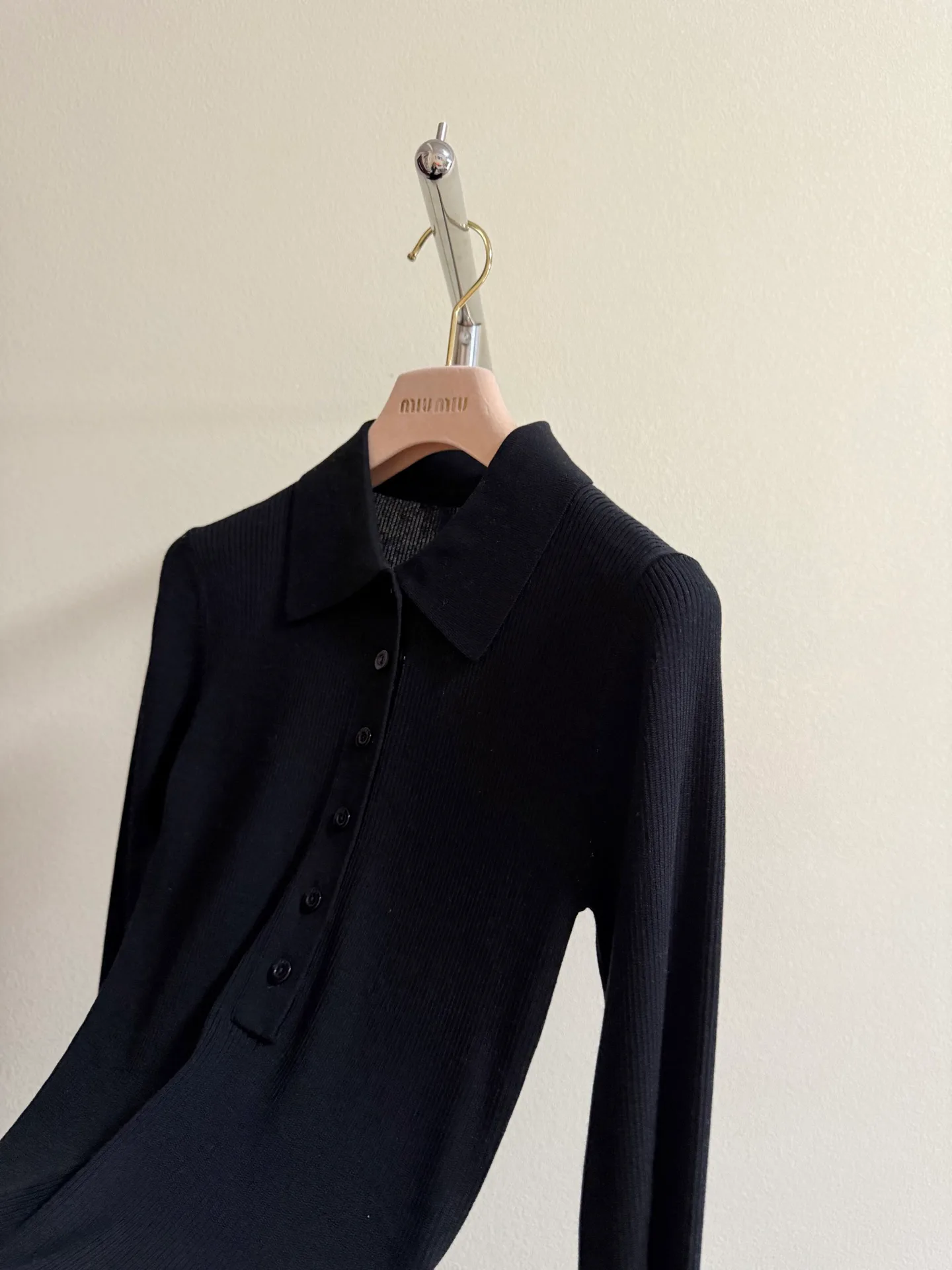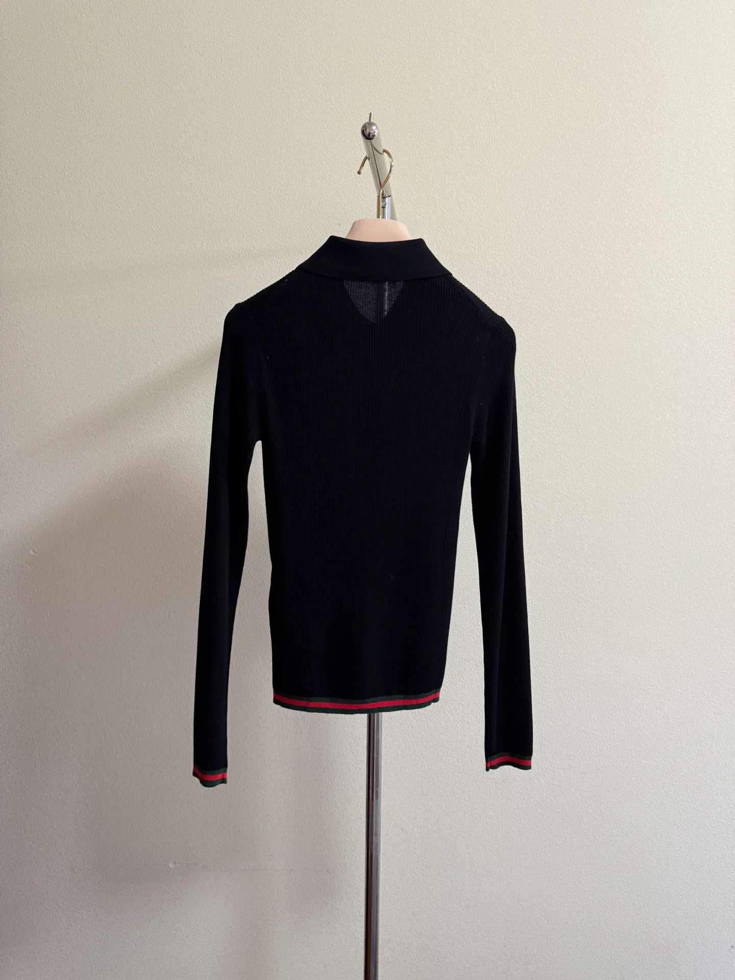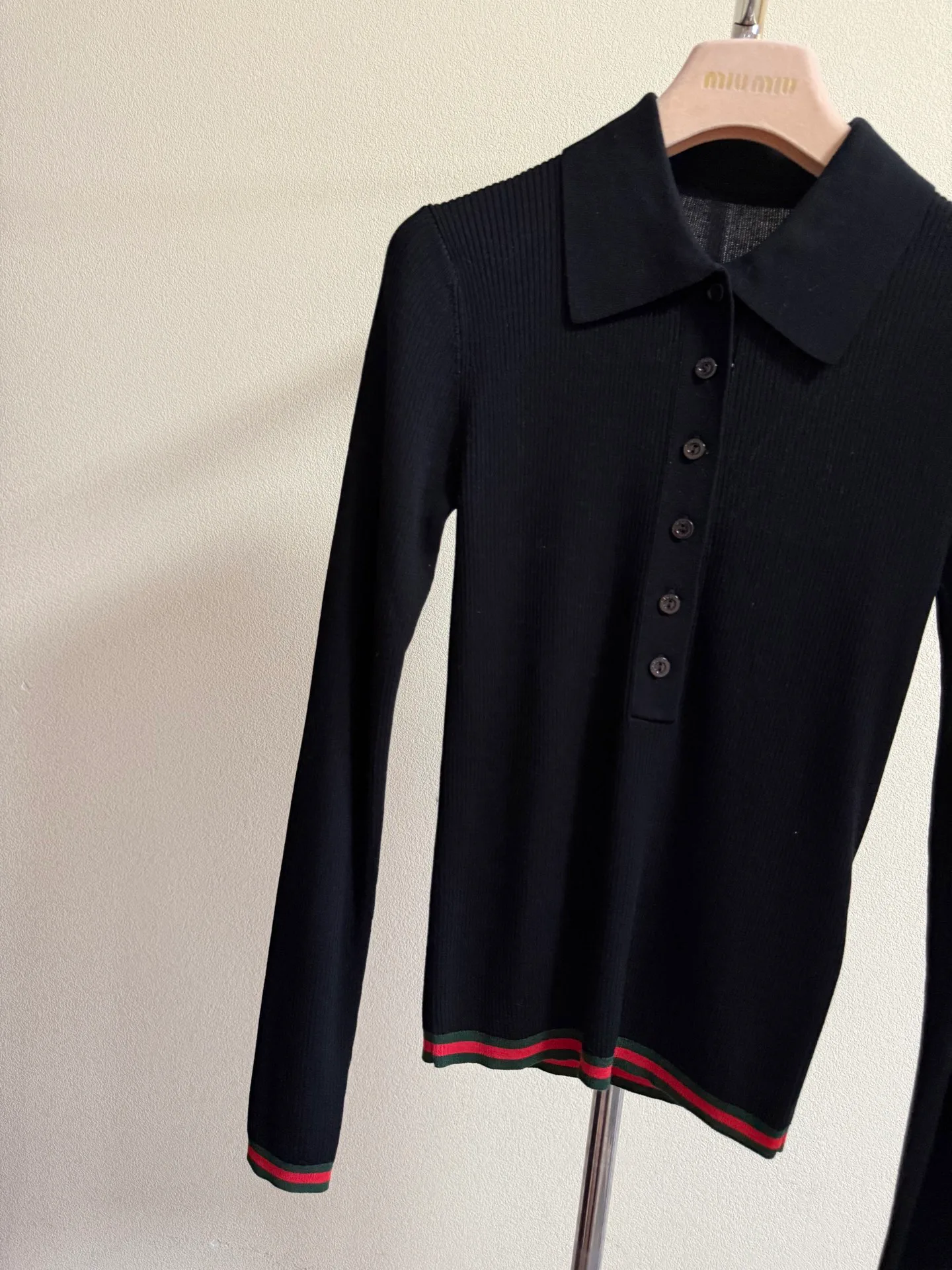 Модель имеет приталенный крой, который создает аккуратную посадку. Ребристая фактура и контрастный нижний край подчеркивают стильный дизайн. Отложной воротник добавляет элегантности, позволяя легко сочетать пуловер как с костюмом, так и с повседневной одеждой.