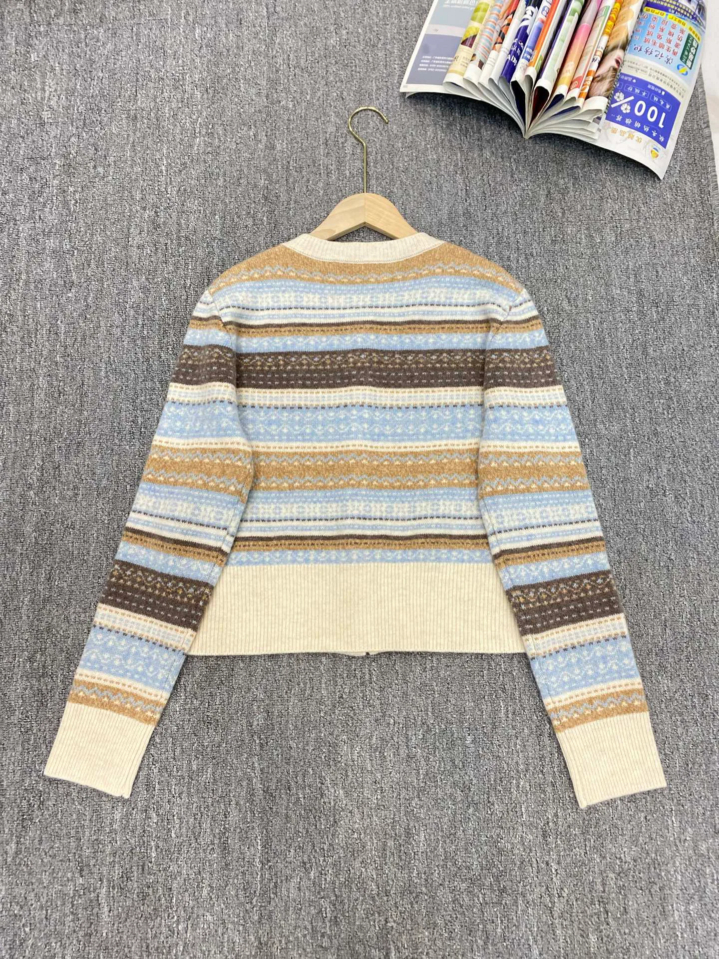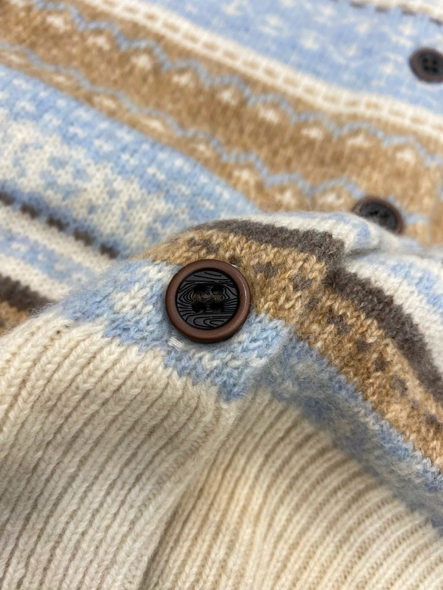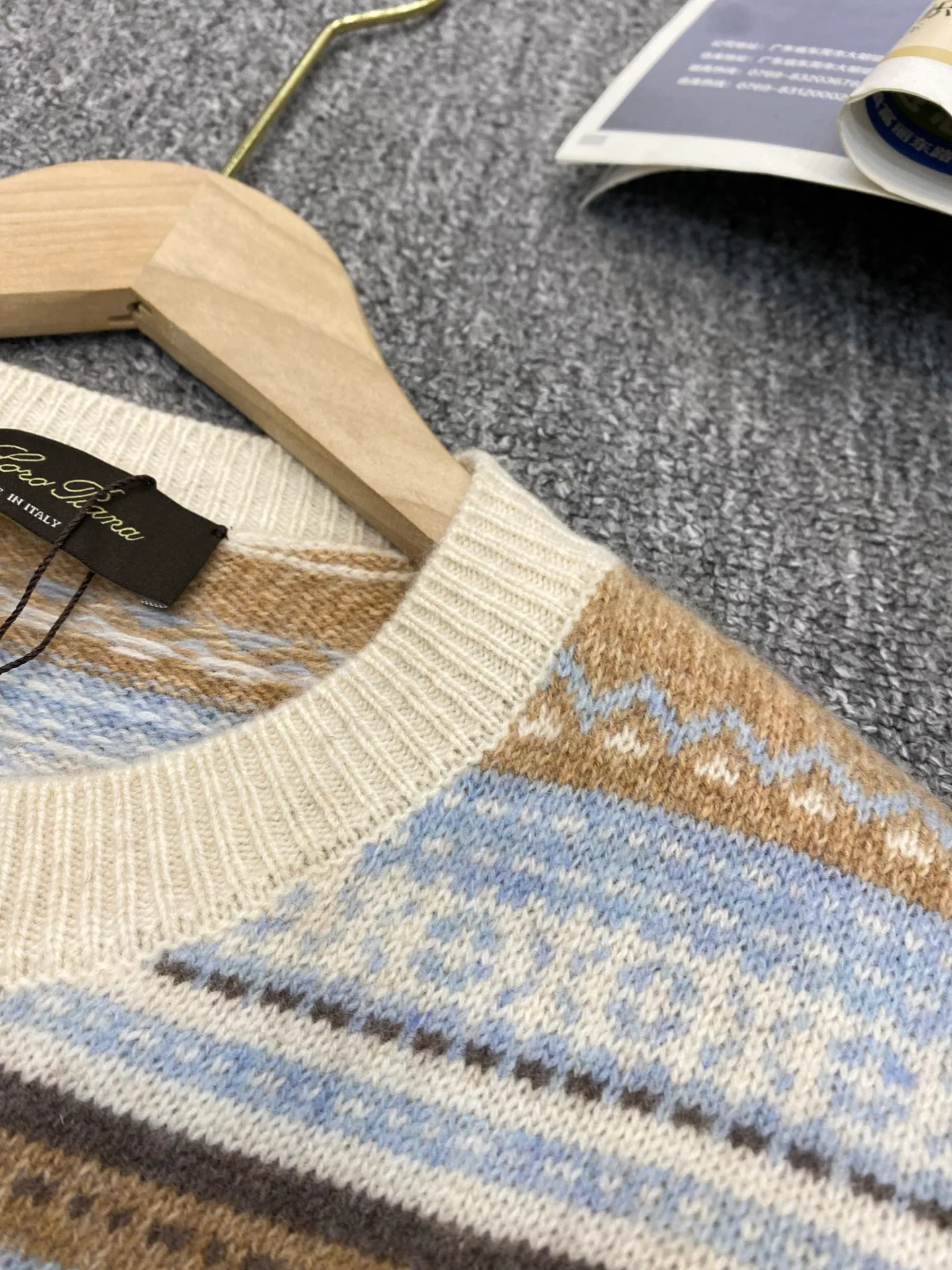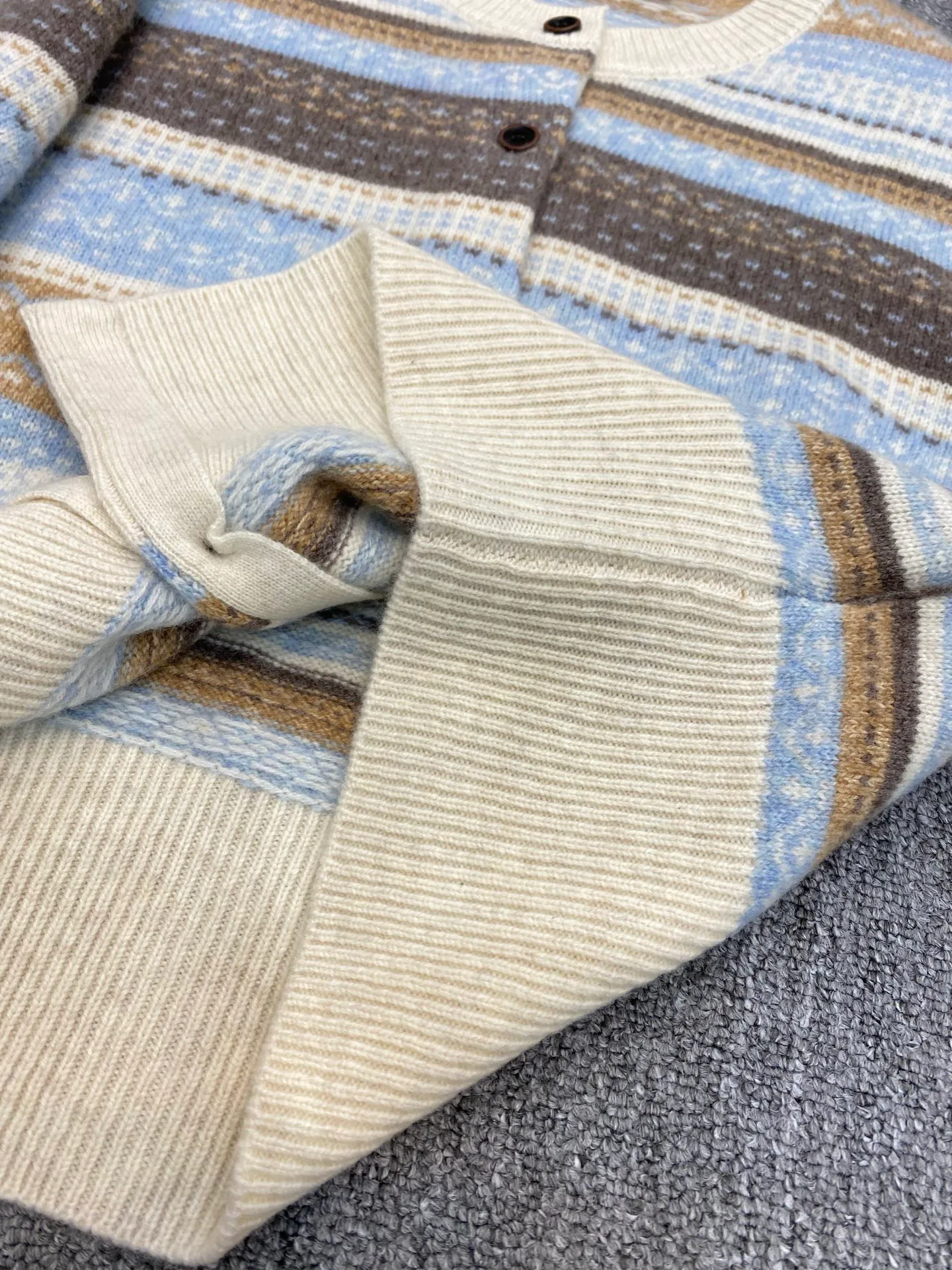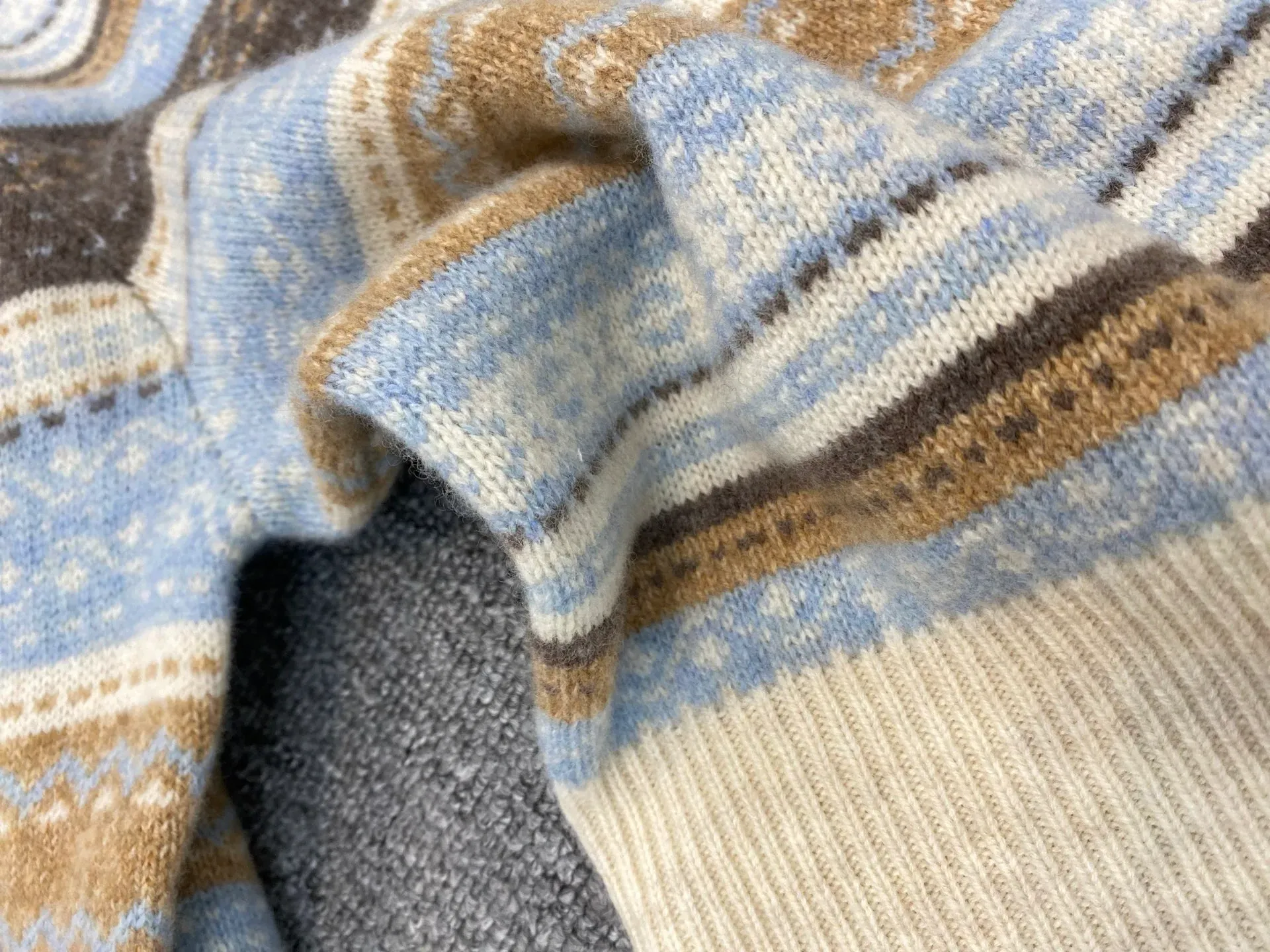 Джемпер выполнен из 100% шерсти и жаккардовой машинной вязки. Теплый и мягкий, сохраняет форму и приятен на ощупь. Жаккардовый рисунок придает образу фактурность. Подходит для повседневного гардероба и прохладной погоды.