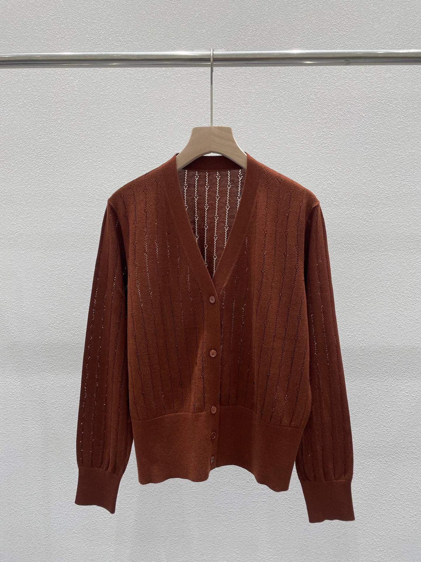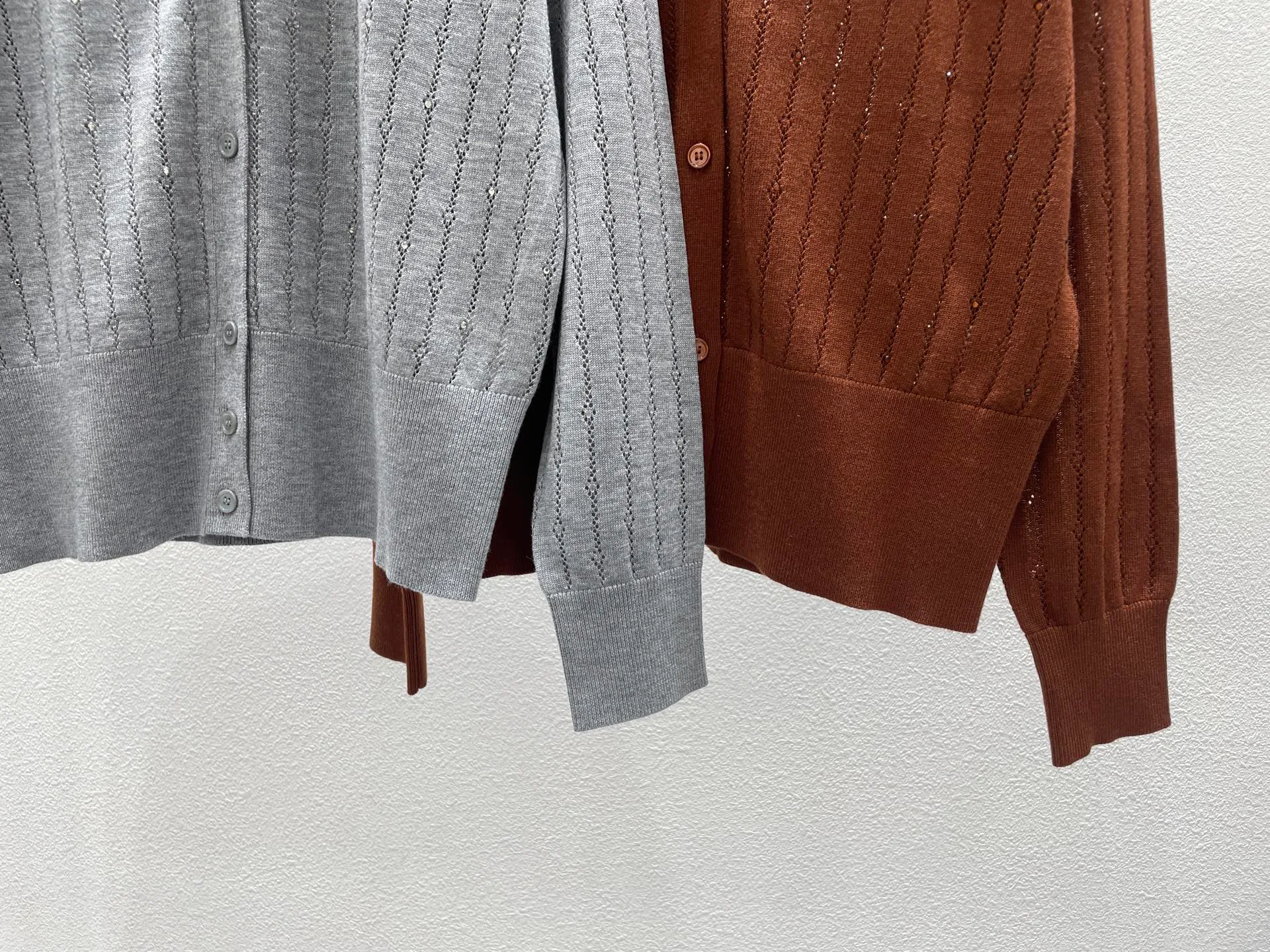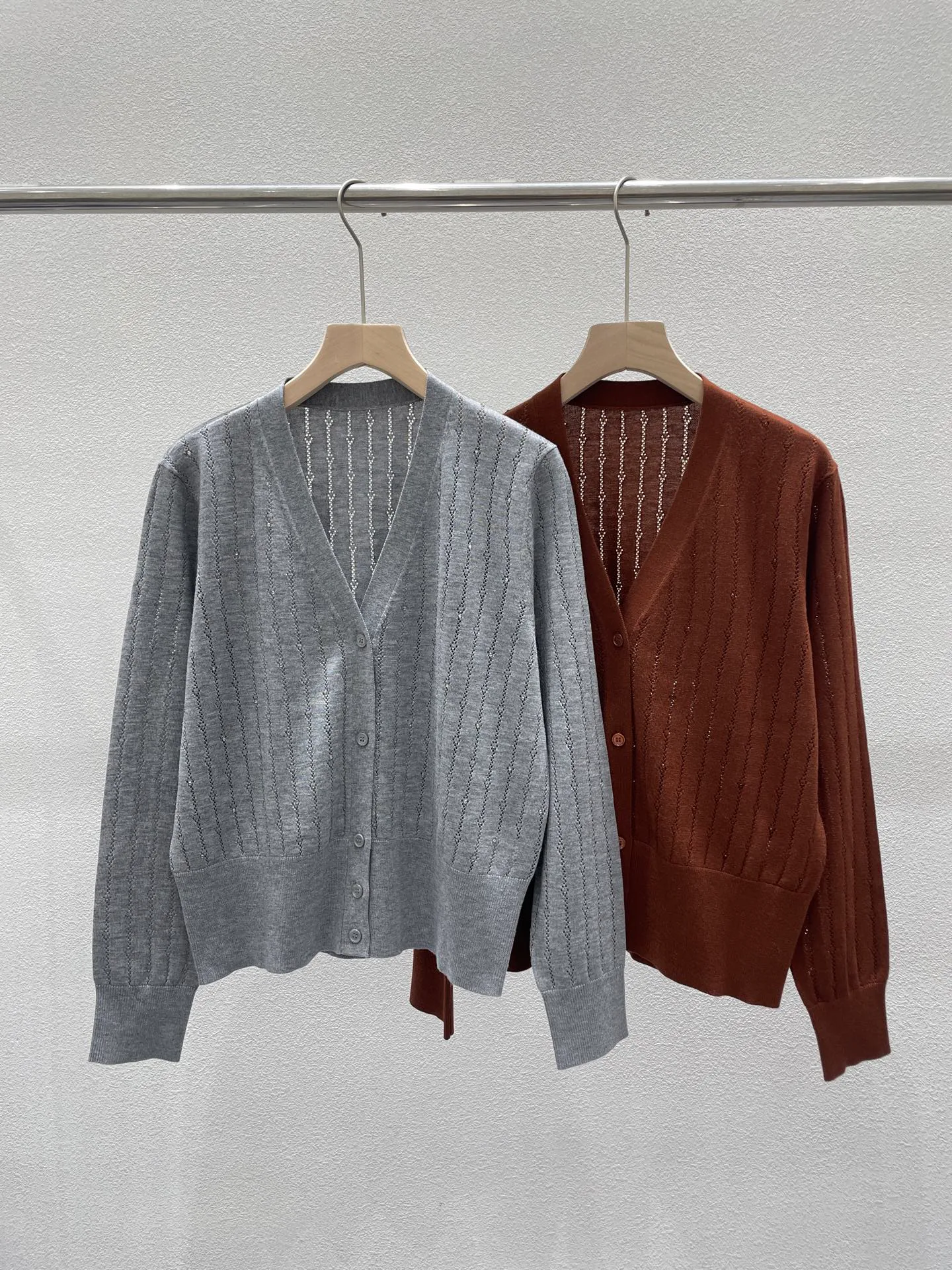 Кардиган открытого типа, который легко комбинируется с блузами и топами. Он доступен в сером и кофейном цветах, что позволяет создавать различные наряды. Размеры представлены S, M и L.
