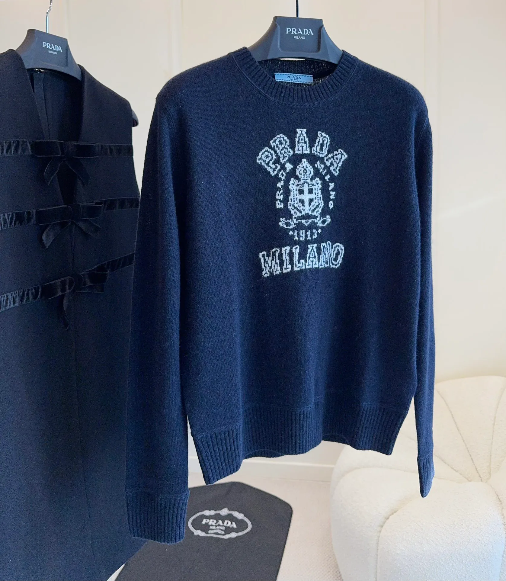 Свитер окрашен в глубокий морской синий цвет, что добавляет элегантности и утонченности. Декор в виде буквы "P" на груди подчеркивает уникальный стиль и премиальность изделия, делая его отличным выбором для ценителей брендов.