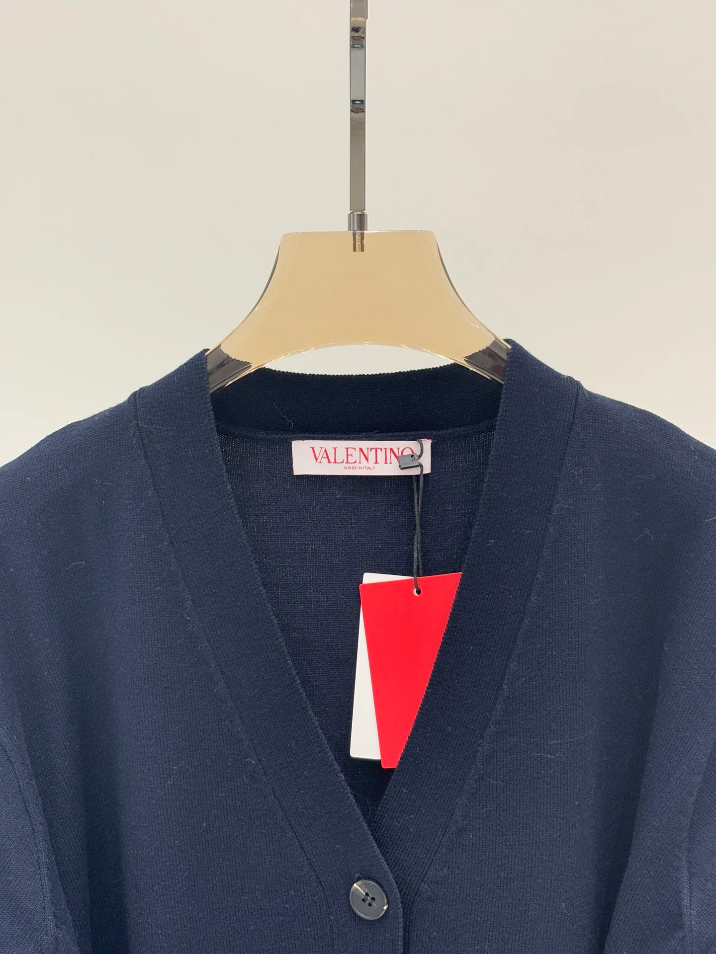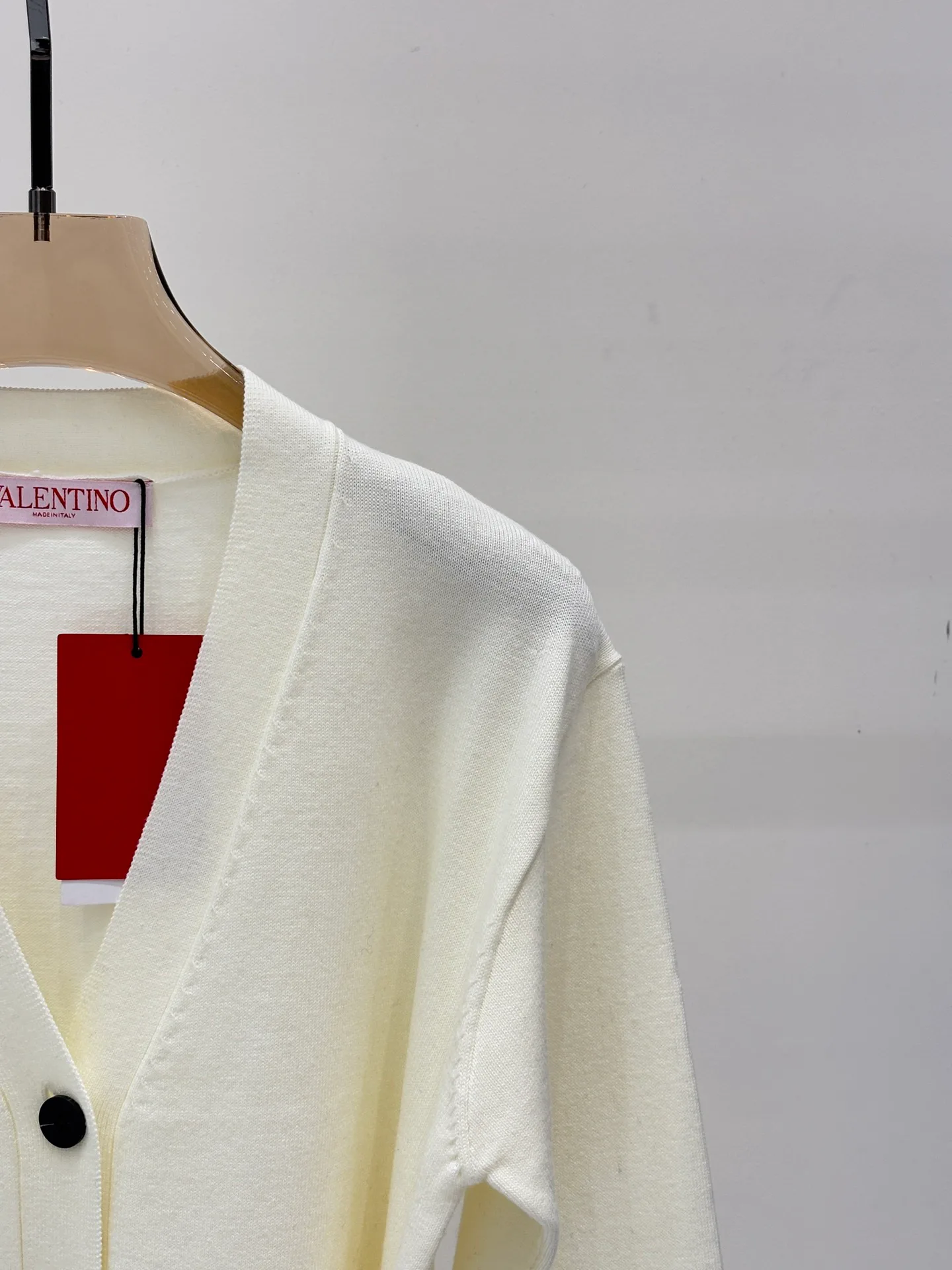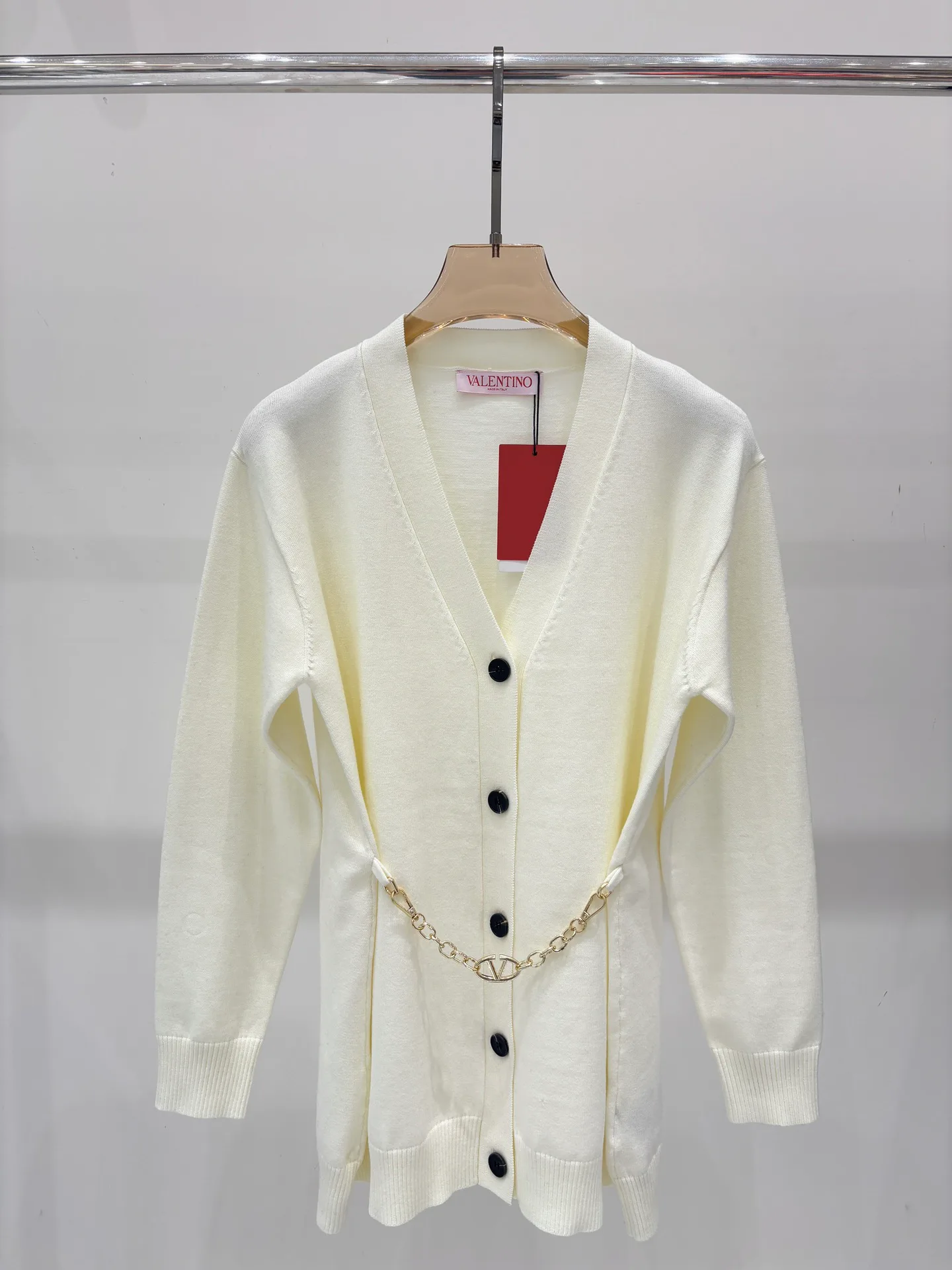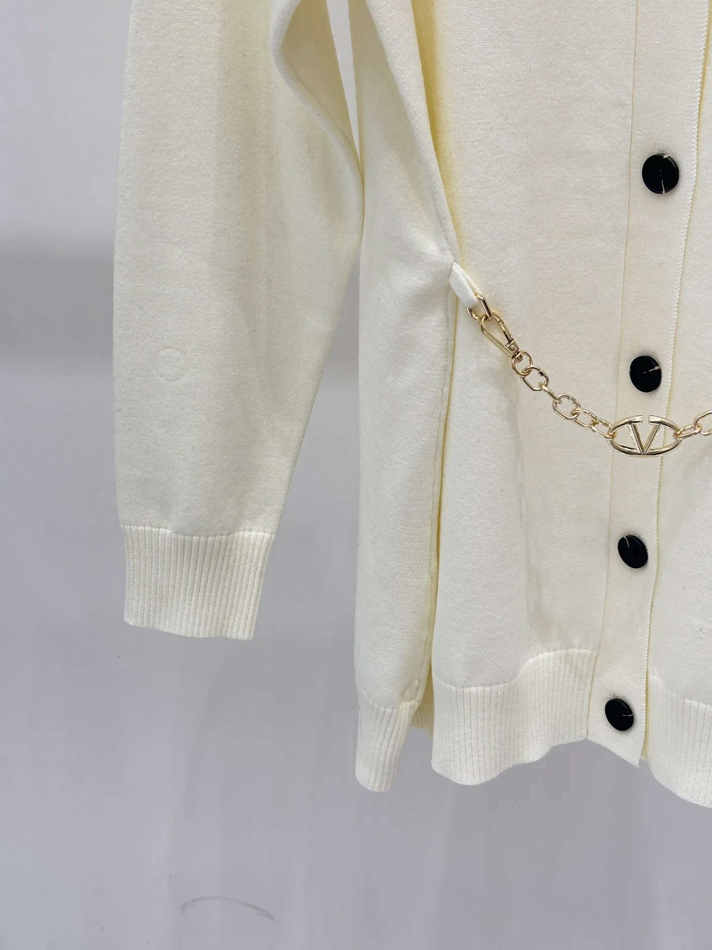 Кардиган представлен в белом и темно-синем цветах, которые легко сочетаются с различными предметами гардероба. Размерная сетка включает S, M и L, что позволяет выбрать подходящий размер. Уход за изделием требует бережной стирки или чистки, сушки в расправленном виде и осторожного обращения с металлическими элементами.