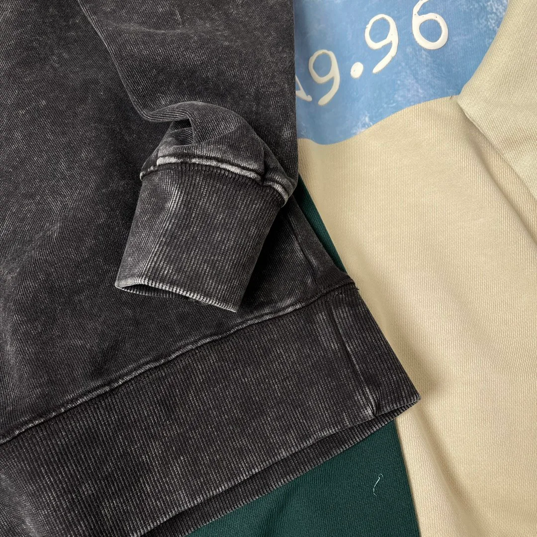 Материал 100% хлопковый терри, устойчивый к износу и приятный на ощупь. Декор включает печать белыми чернилами и технологию 3D-объемной вспененной печати, создающую фактурность и контраст. Размеры варьируются от S до XXL. Уход соответствует рекомендациям для хлопковых тканей.