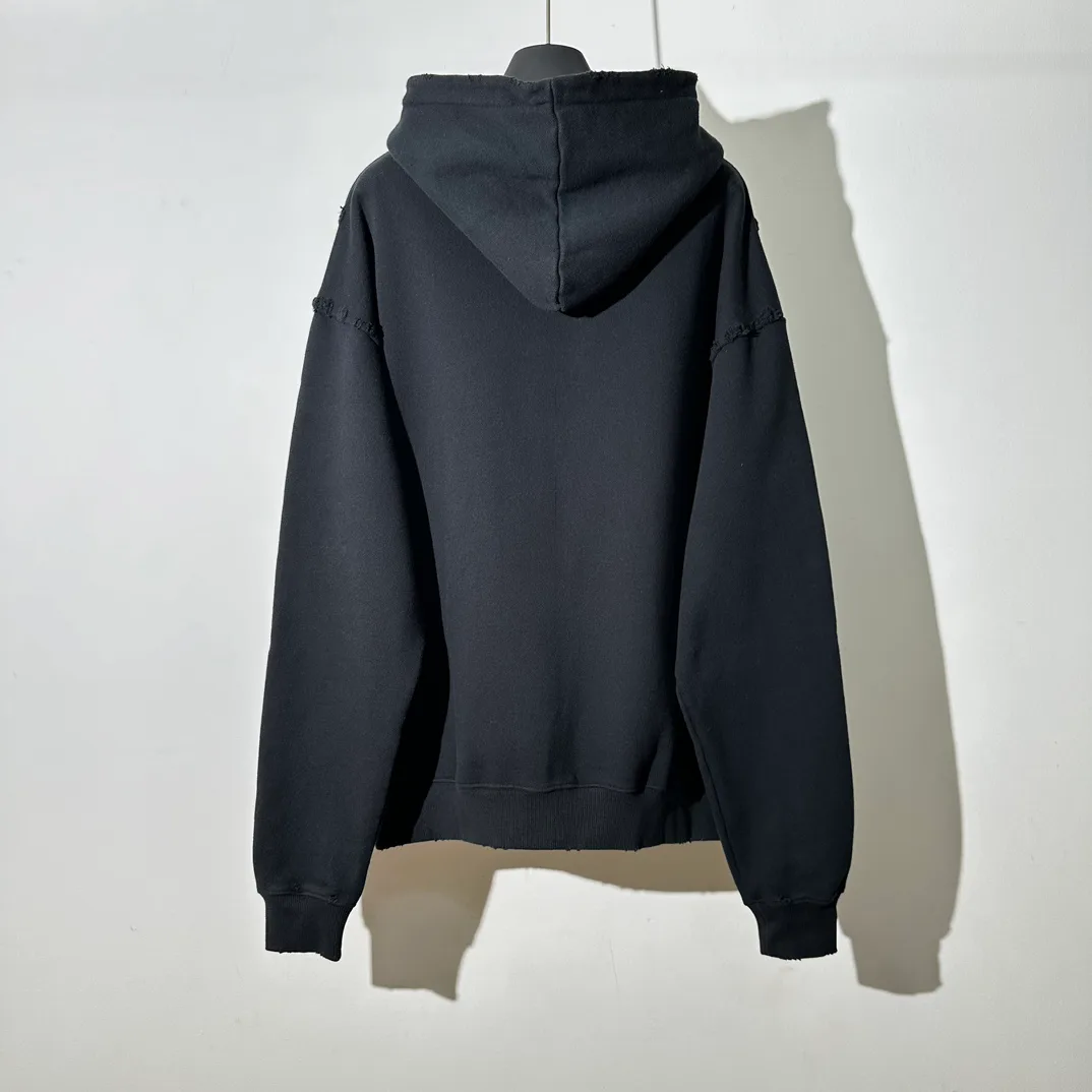 Модель черного цвета имеет унисекс-дизайн, подходящий как для мужчин, так и для женщин. Ручная обработка создает эффект потертостей, подчеркивающий уникальность изделия. Прямой крой и комфортная посадка обеспечивают удобство в носке и универсальность в сочетаниях.