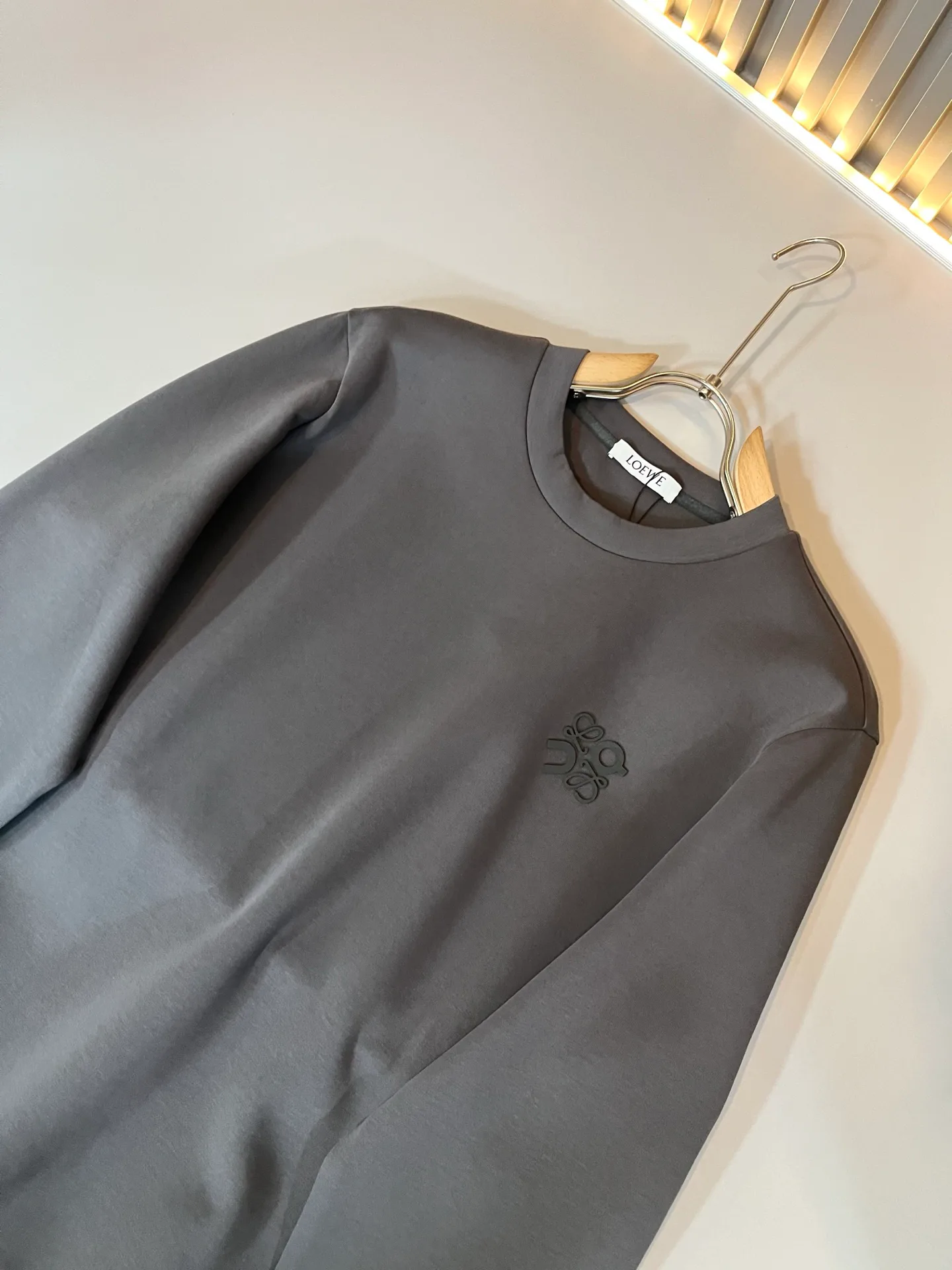 Унисекс крой: свободная посадка. На груди фирменный логотип LOEWE, нанесённый прессованием/термопереносом, добавляет характер. Силуэт минималистичен; благородная эстетика легко сочетается с джинсами, брюками, пальто и обувью любого стиля.