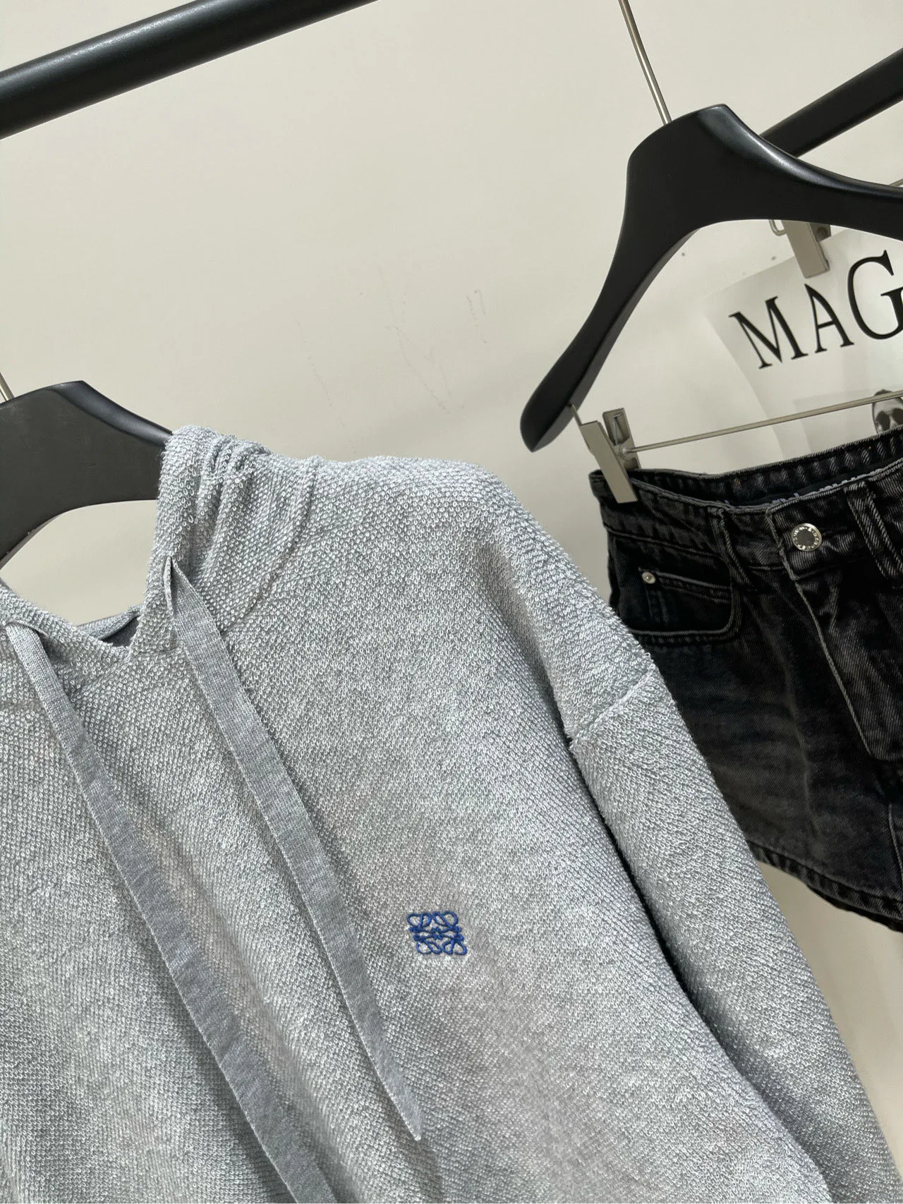 LOEWE женский и мужской худи с капюшоном из boucle-шерсти, светло-серого цвета.