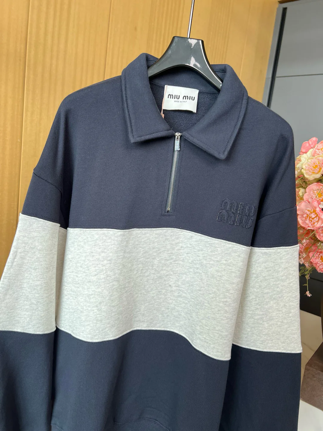 Свитшот выполнен в стиле ретро с яркими контрастными цветами, создающими эффект спортивного образа. Полузамковая молния позволяет регулировать уровень тепла. Свободный крой подходит как для мужской, так и для женской фигуры, что делает его универсальным предметом гардероба.