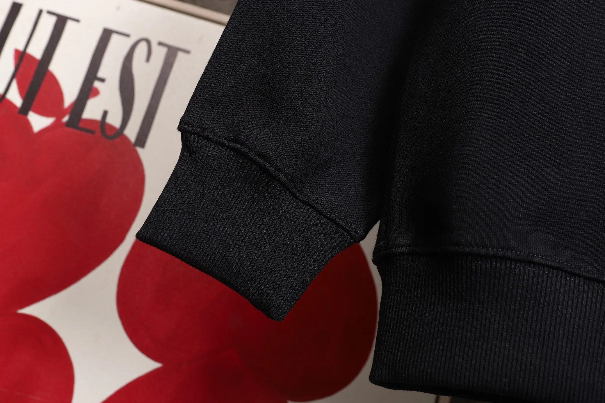 Особенности дизайна включают круглый воротник и классический крой, а также манжеты и низ изделия, обработанные махровыми петлями для добавления тепла и устойчивости формы. Внутренняя сторона также выполнена из махрового материала, что способствует хорошей теплоизоляции.