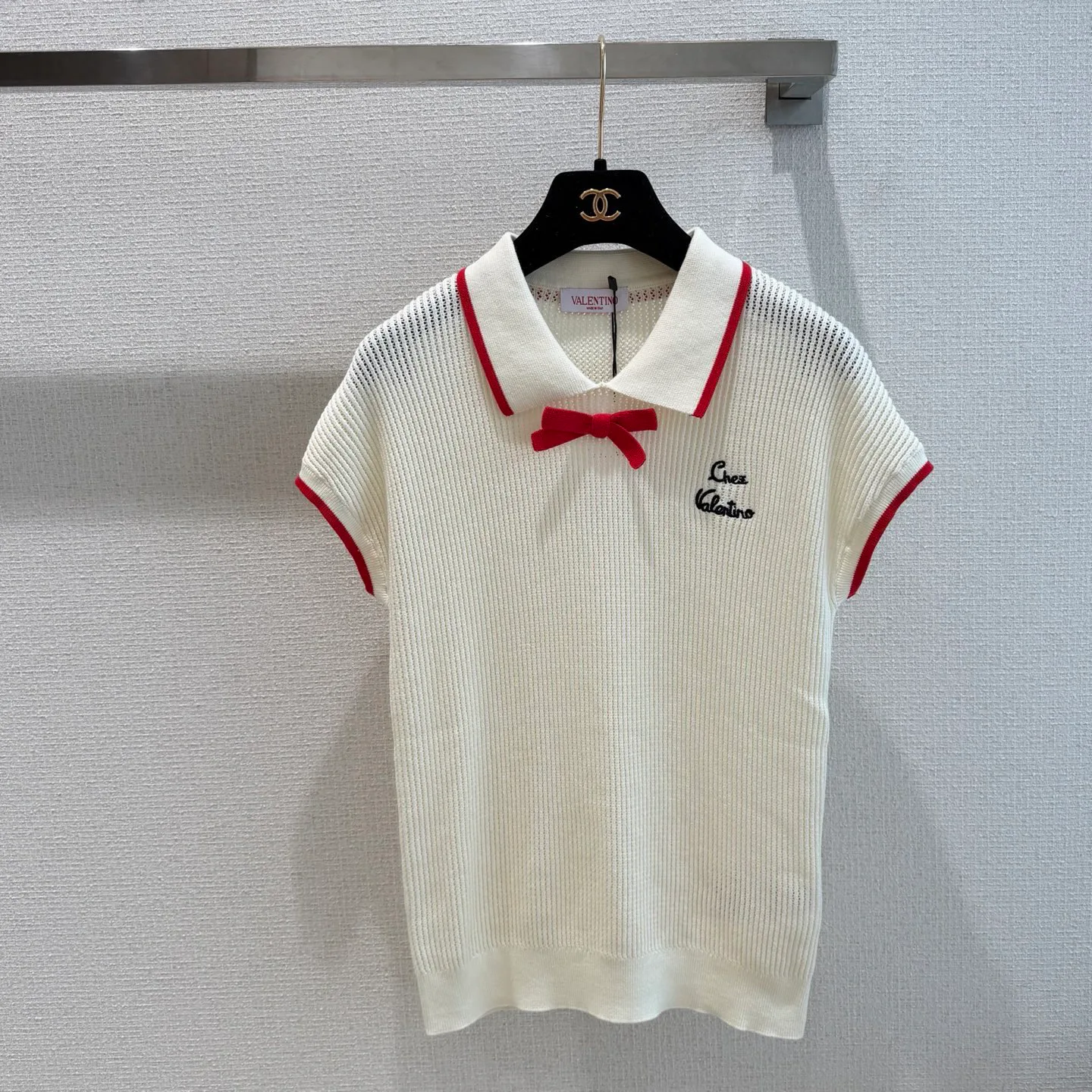 Топы женские VALENTINO — модель из новой коллекции в стиле преппи, выполненная из фактурной ткани «вафля» молочного оттенка. Материал обеспечивает хорошую воздухопроницаемость и комфорт при носке. Дизайн с поло-воротником и контрастным бантом создаёт элегантный, женственный образ. На изделии присутствует фирменная вышивка, а короткие рукава делают его подходящим для тёплого сезона. Модель подходит для повседневной носки и создания образов в академической эстетике.