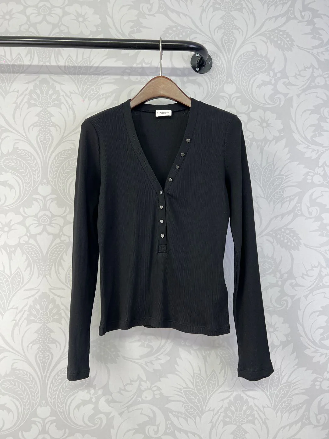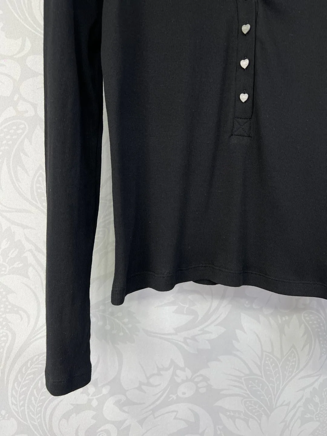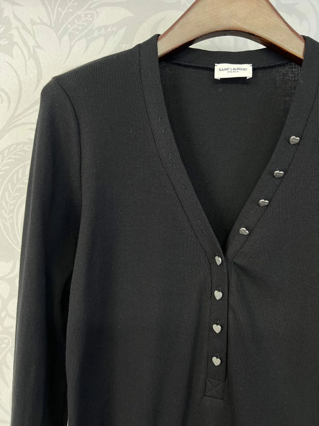 Дизайн включает прямые плечи, напоминающие квадратную конструкцию, что добавляет строгости. Длинные рукава подчеркивают стройность рук. Вырез аккуратно открывает ключицы, не создавая излишней откровенности. Каждая пуговица включает маленький логотип, подчеркивающий стиль изделия. Кофта универсальна: хорошо смотрится в комбинации с джинсами, юбками и кардиганами, подходит для разных мероприятий.