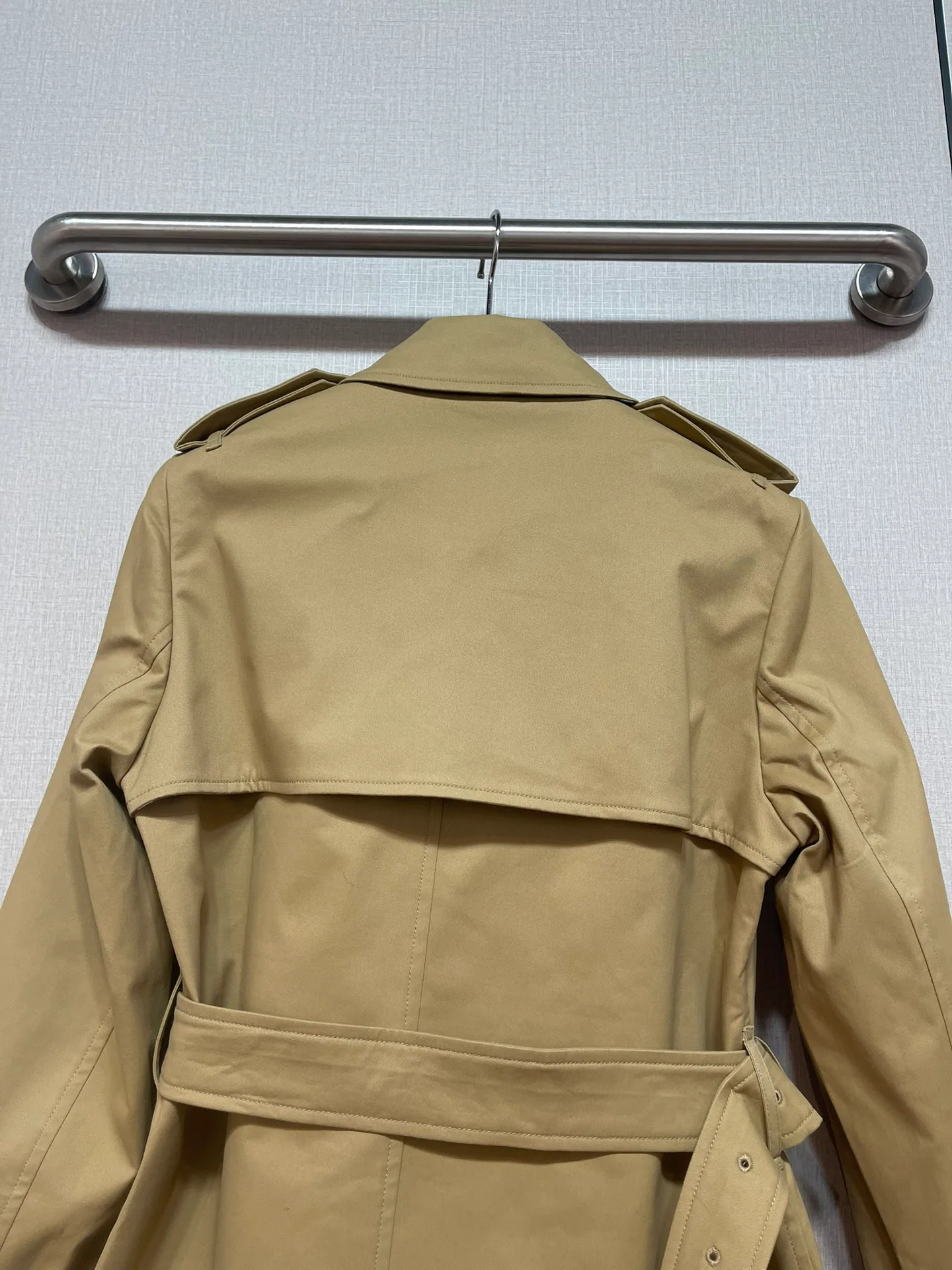 Дизайн тренча отражает британскую эстетику, что делает его подходящим для умного гардероба. Пояс можно завязать для длинного силуэта или оставить расправленным для более спокойного вида.