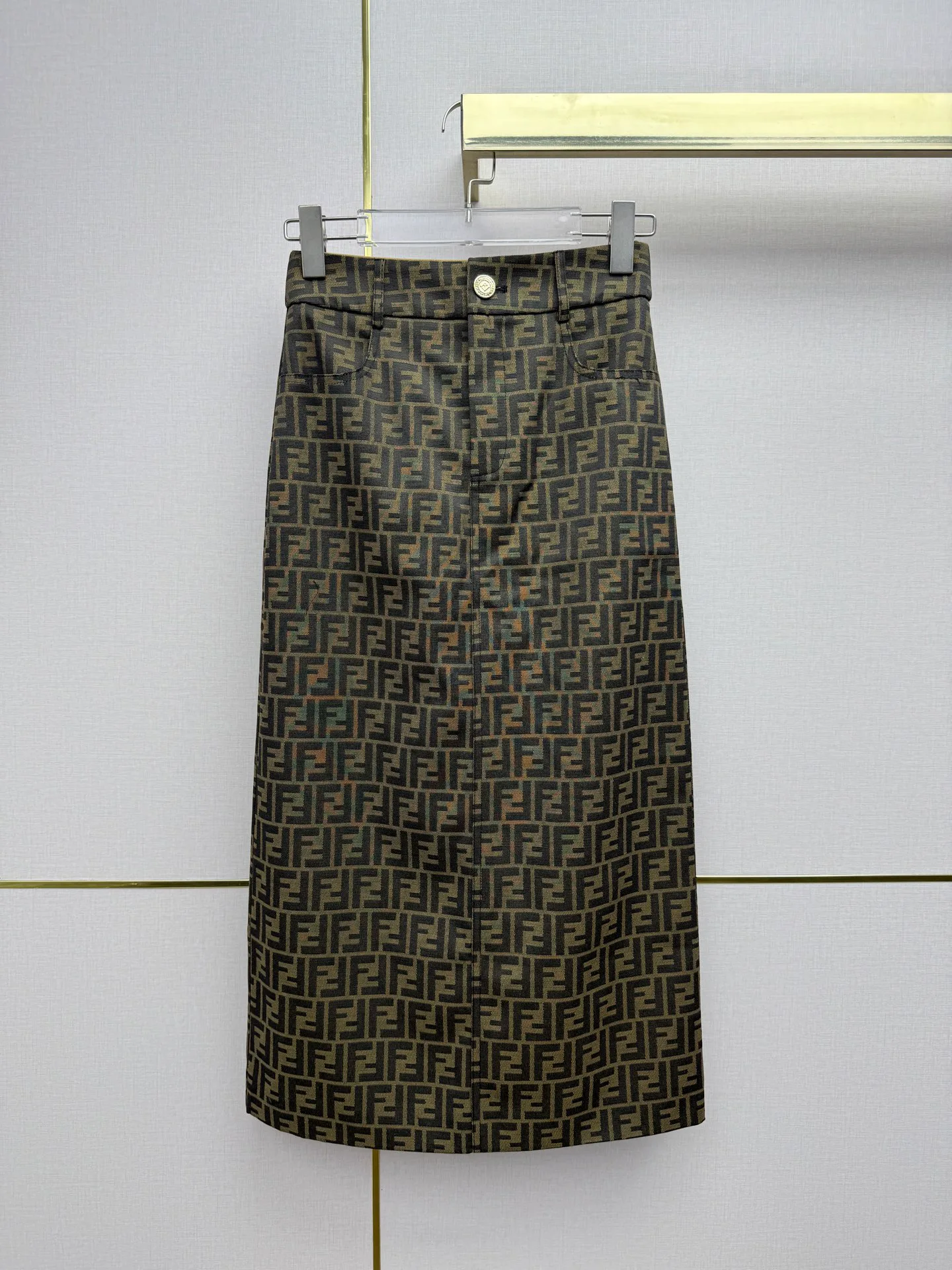 Юбка женская FENDI — модель из коллекции 26SS выполнена из фирменного двойного жаккарда с логотипом. Задняя часть пояса украшена декоративной резинкой с буквенным принтом. Дизайн отличается лаконичностью и универсальностью, представлен в однотонной цветовой гамме. Доступна в трёх размерах: S, M и L.
