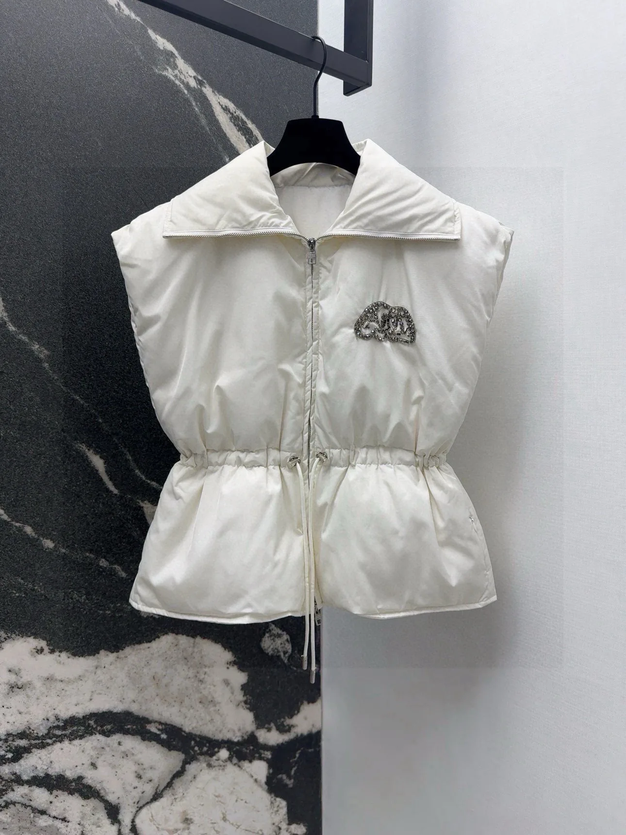 Жилет женский ALEXANDER MCQUEEN — пуховый жилет с декоративной стразной отделкой и классическим силуэтом H, с регулируемой талией за счёт шнура. Это осенне-зимняя новинка, изделие выполнено из импортированной переработанной нейлоновой ткани, наполнитель — белый утиного пуха по госстандарту 90. Декоративный рисунок из страз и заклепок подчёркивает выразительность дизайна. Фурнитура прочная, детали выполнены качественно. Размеры S, M, L в наличии, изделие подходит для повседневной носки и осенне-зимнего гардероба.