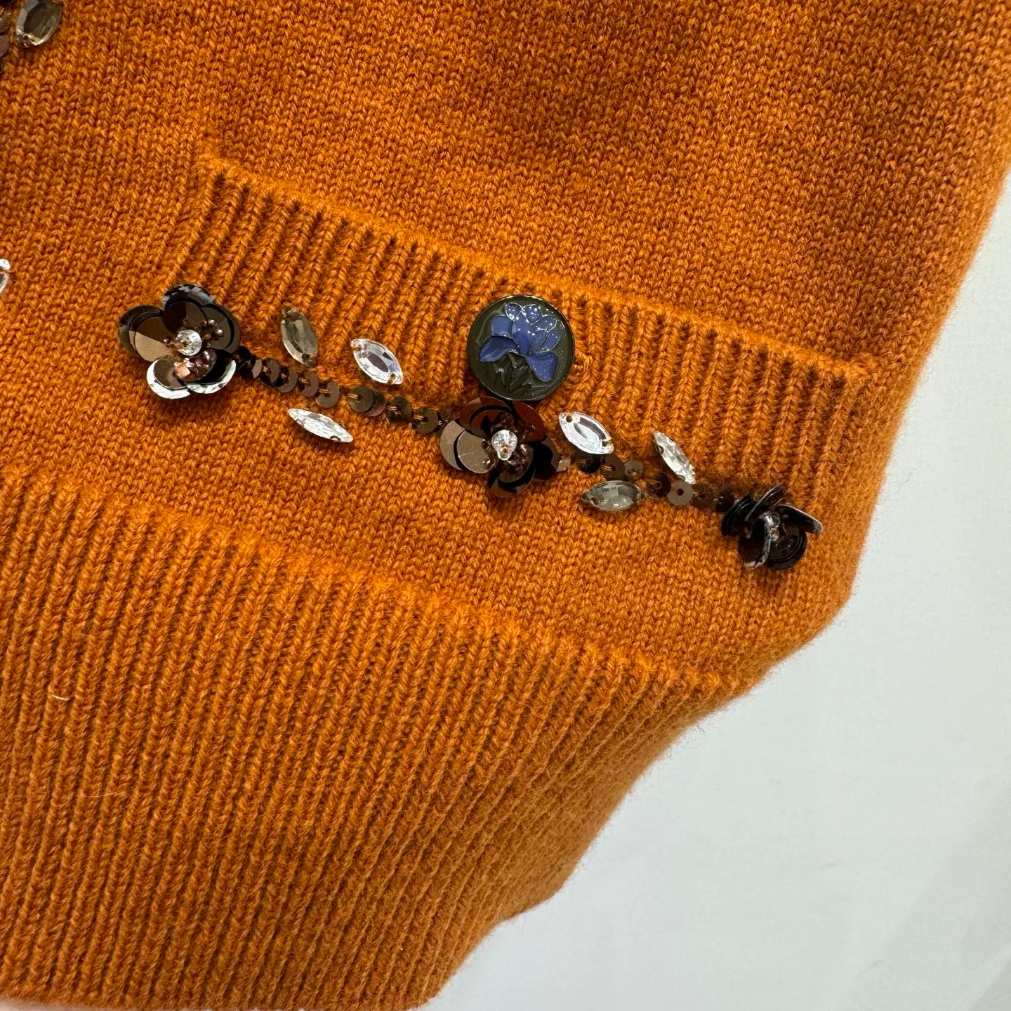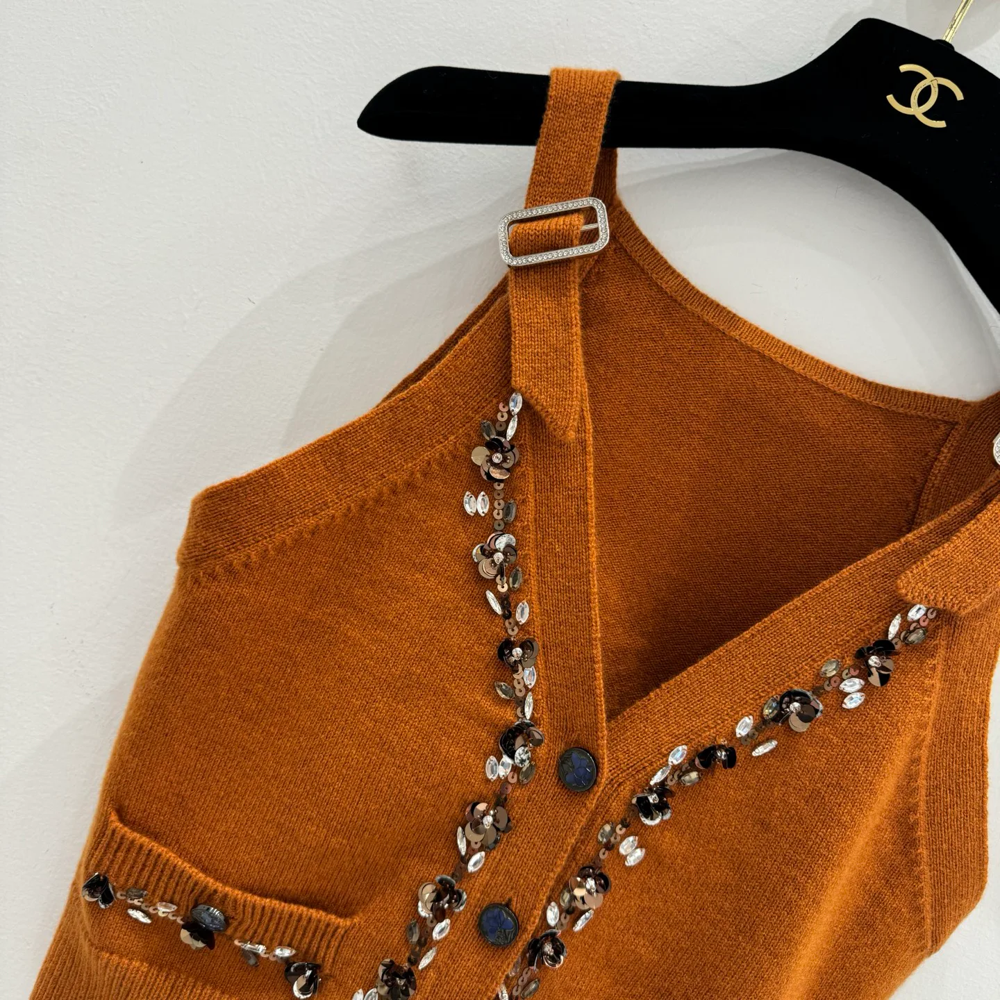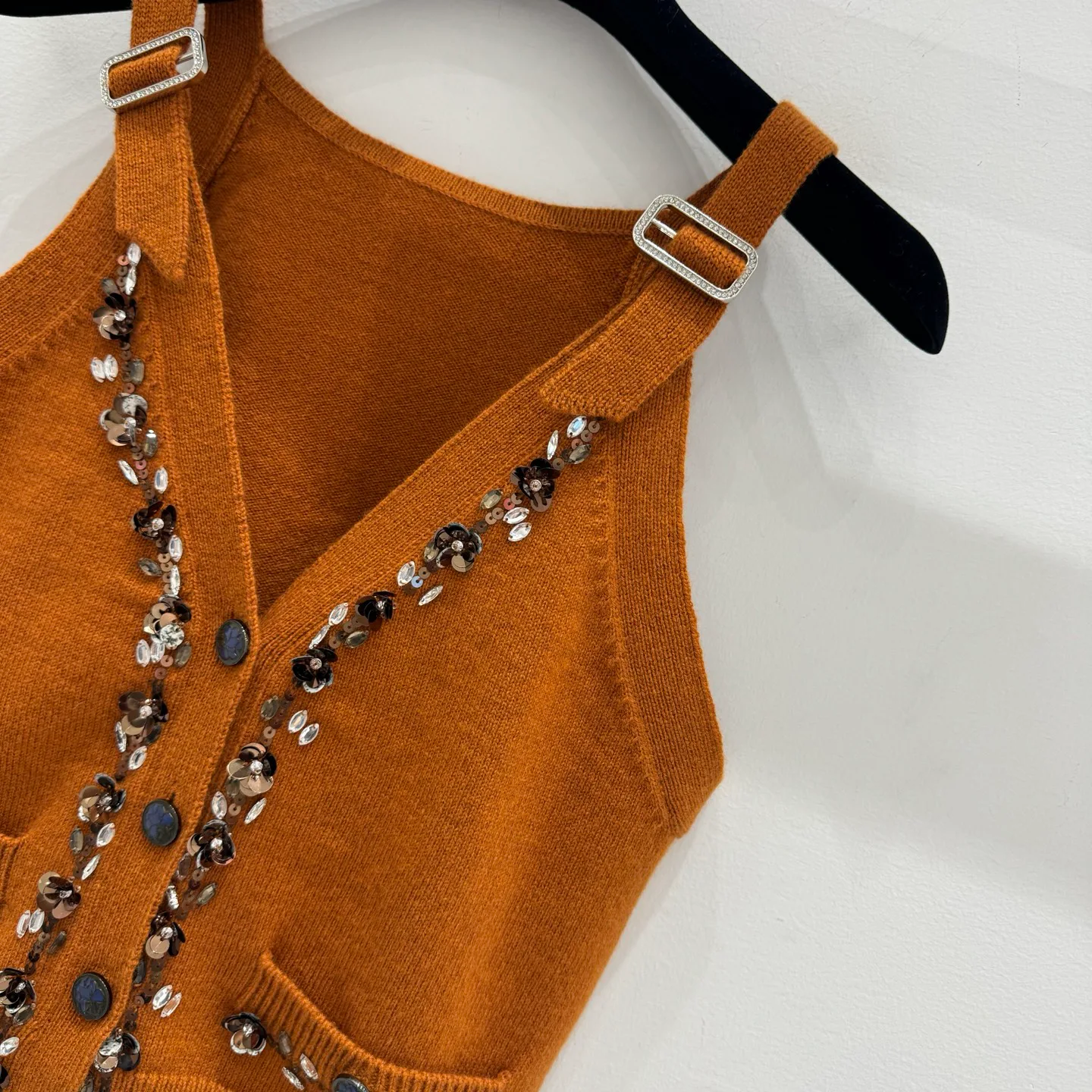 Жилетка представлена в размерах 36, 38 и 40. У нее нет подкладки, а застёжка дополнена качественной фурнитурой. Уход за изделием требует бережного обращения, чтобы сохранить аккуратный вид бисерной отделки.