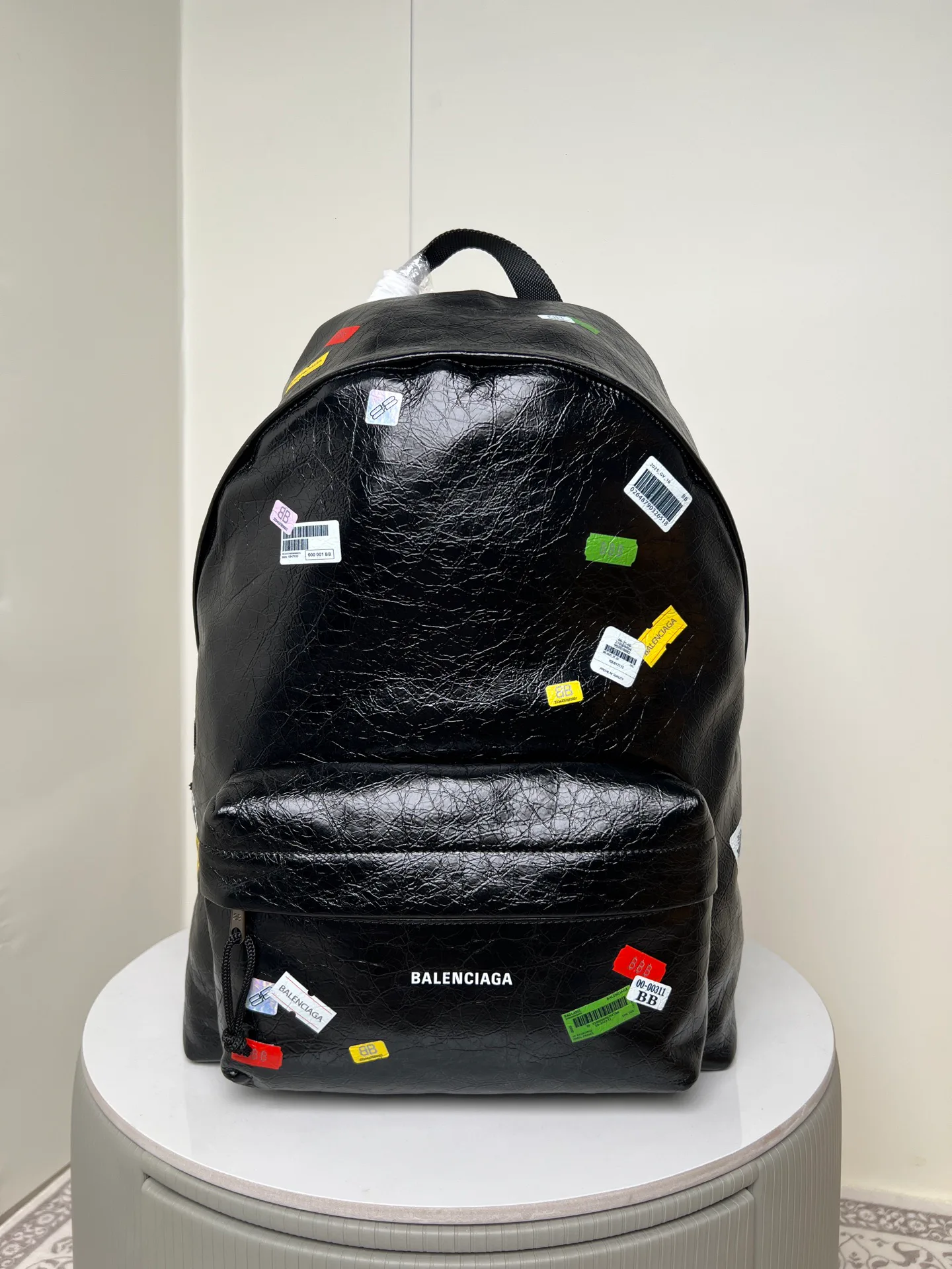 Рюкзаки женские BALENCIAGA — Explorer Arena, полностью покрыты наклейками, чтобы подчеркнуть характер.
