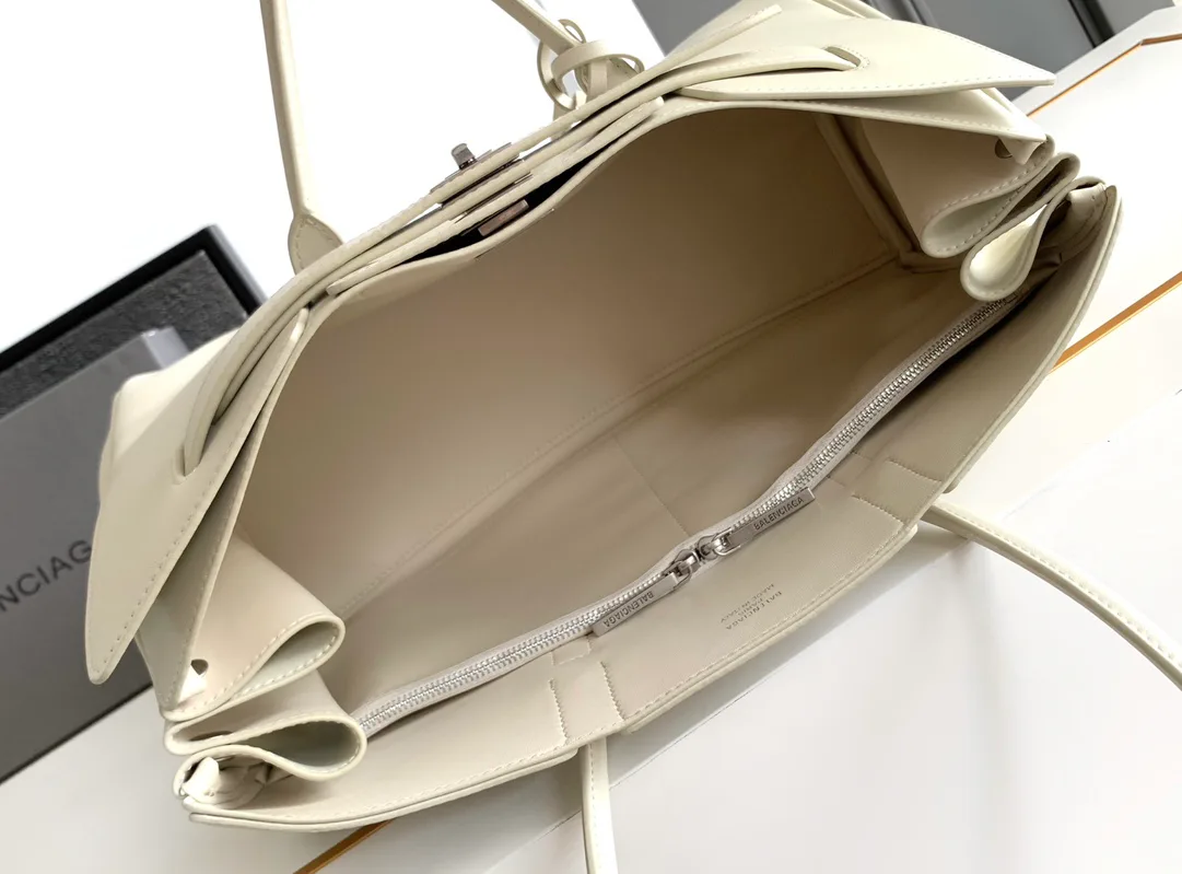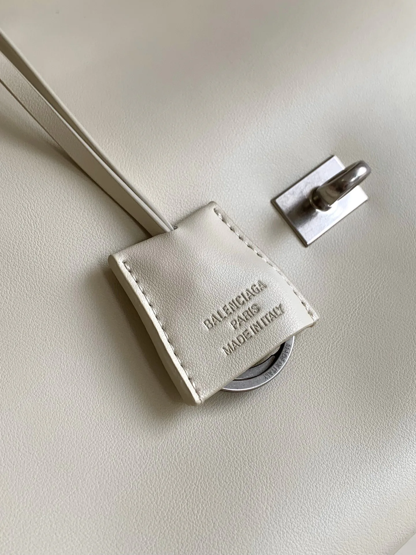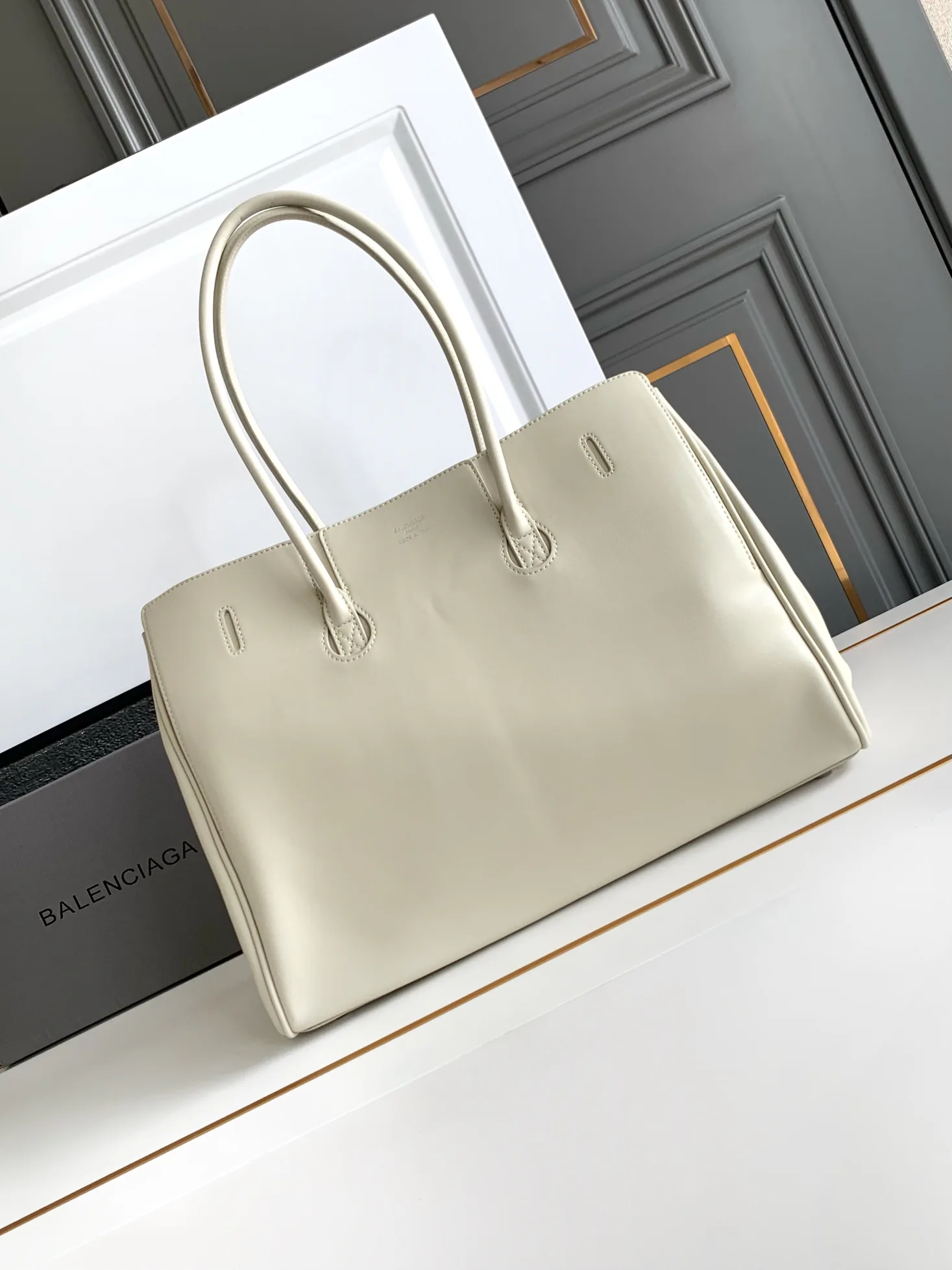 Сумка изготовлена из ультра-гладкой кожи телёнка, которая создает эффект роскоши. Вставки из кожи ягнёнка типа Nappa добавляют мягкость и приятную фактуру. Размеры сумки: длина 37 см, высота 28 см, ширина 16 см. Она отлично подходит для осенней коллекционной новинки, идеально сочетаясь с нейтральными и яркими акцентами.