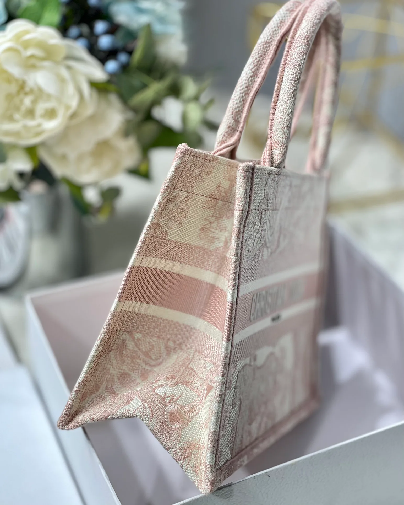 Размеры сумки составляют 26,5 × 21 × 14 см. Малый размер создаёт изящный силуэт, не перегружая образ, при этом сохраняет характерную вместимость для повседневных выездов, шоппинга и прогулок. Сумка оснащена удобными ручками для ношения в руке или на плече.