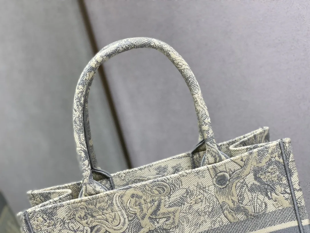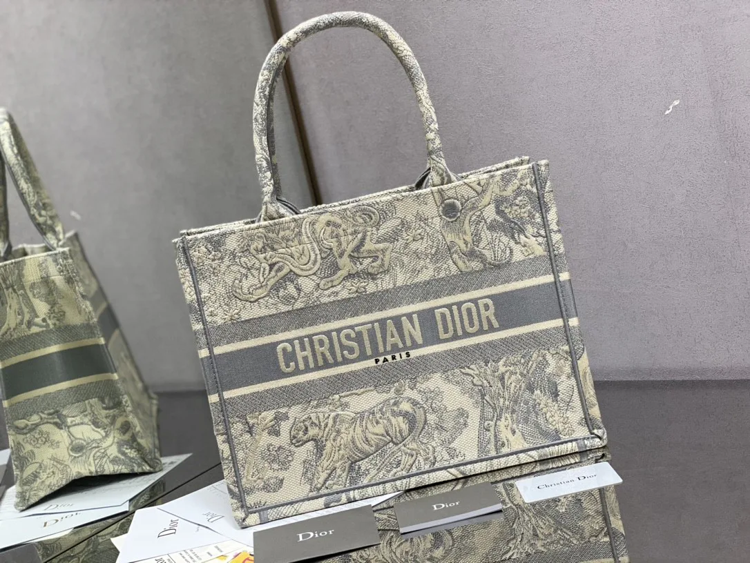 Цвет 9011, оттенок Old Gray Tiger, легко гармонирует с разнообразными нарядами. Особенности дизайна включают вышивку тигра, которая придает сумке узнаваемый шарм. Стильный акцент обеспечивают фирменные монограммы Dior. Компактно-широкий силуэт и средняя вместимость делают сумку практичной для ежедневных поездок и прогулок.