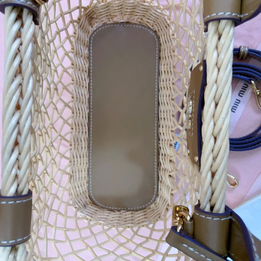 Корзинка имеет оригинальный арочный дизайн, что делает её практичной и привлекательной. Внешняя ручка из кожи украшена вручной сшитым логотипом марки.