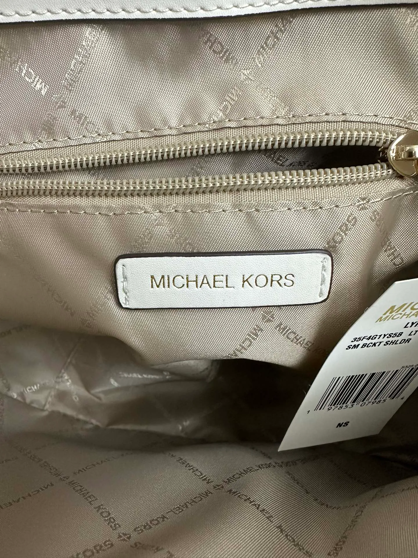 В дополнение к этому сумка украшена ключевым брелоком MK, подчёркивающим качество и внимание к деталям, присущие бренду.