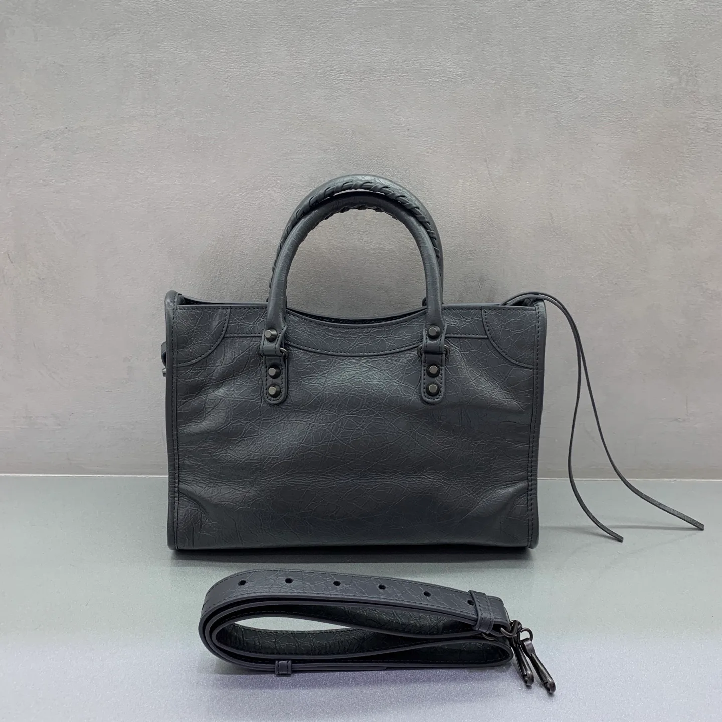 Классическая сумка женская BALENCIAGA — модель Le City в глубоком сером цвете, возвращённая в коллекции 2025 года. Это наиболее узнаваемая версия знаменитой серии, где для более лёгкого образа были убраны зеркало и кардхолдер. Ремешок переработан для удобного ношения через плечо. Общие габариты составляют 30 см в длину, 13 см в ширину и 20 см в высоту.