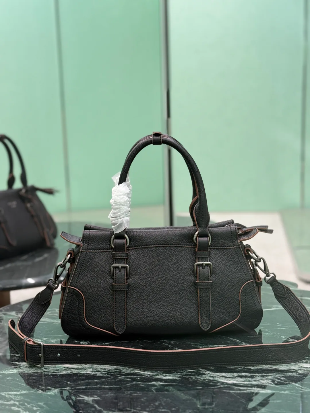 Классические сумки женские PRADA — компактная кожаная сумка с разнообразными способами ношения и рассчитанная на долговечность. Она выполнена из кожи с богатой фактурой и неравномерной текстурой. Съемный плечевой ремень позволяет носить её разными способами. Укреплённые уголки вдохновлены дорожными сумками. Дизайн возвращает дух бренда и подчёркивает тему путешествий. Размеры 35×22×11 см подчёркивают компактность и удобство повседневного использования.